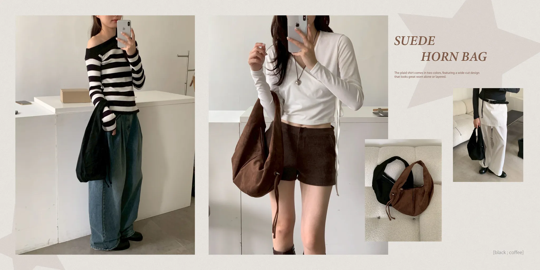 質感在線掛繩打摺麂皮牛角包