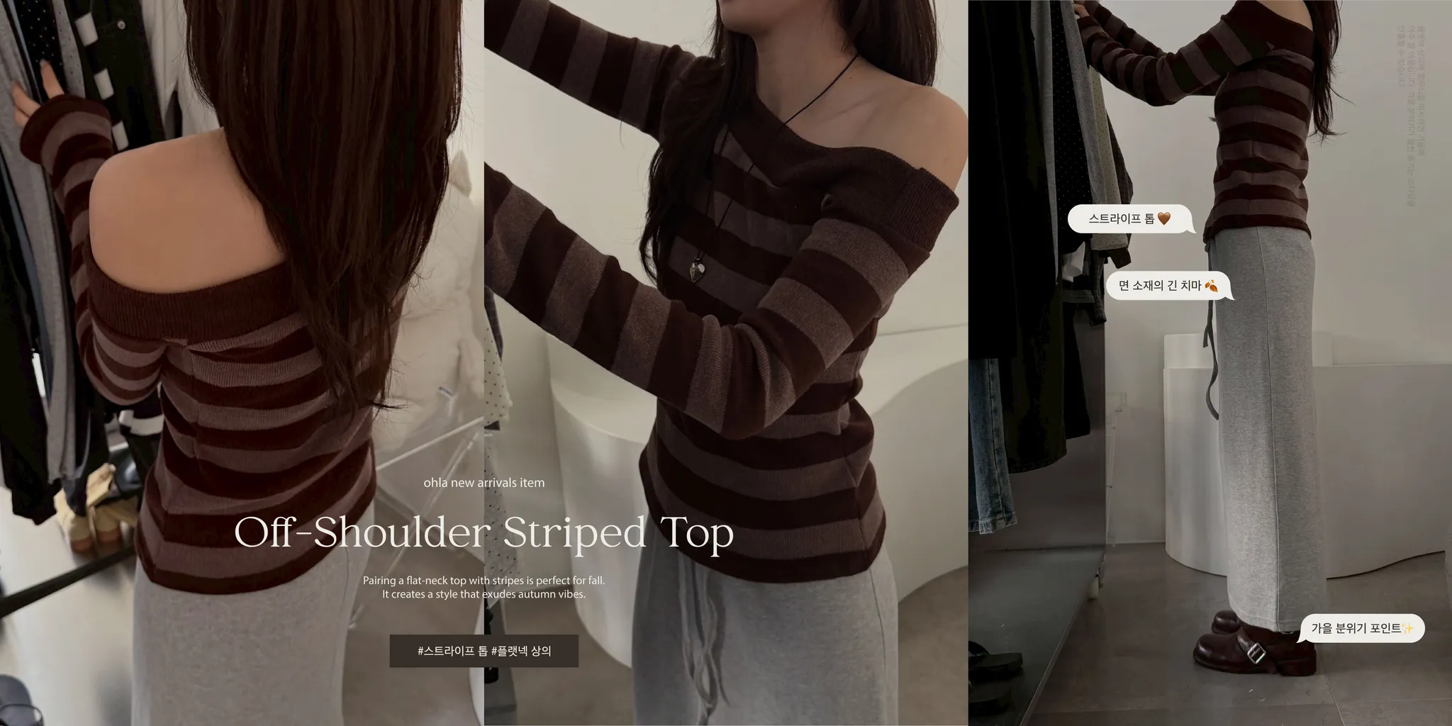 秋日薄霧斜肩橫條內刷毛上衣