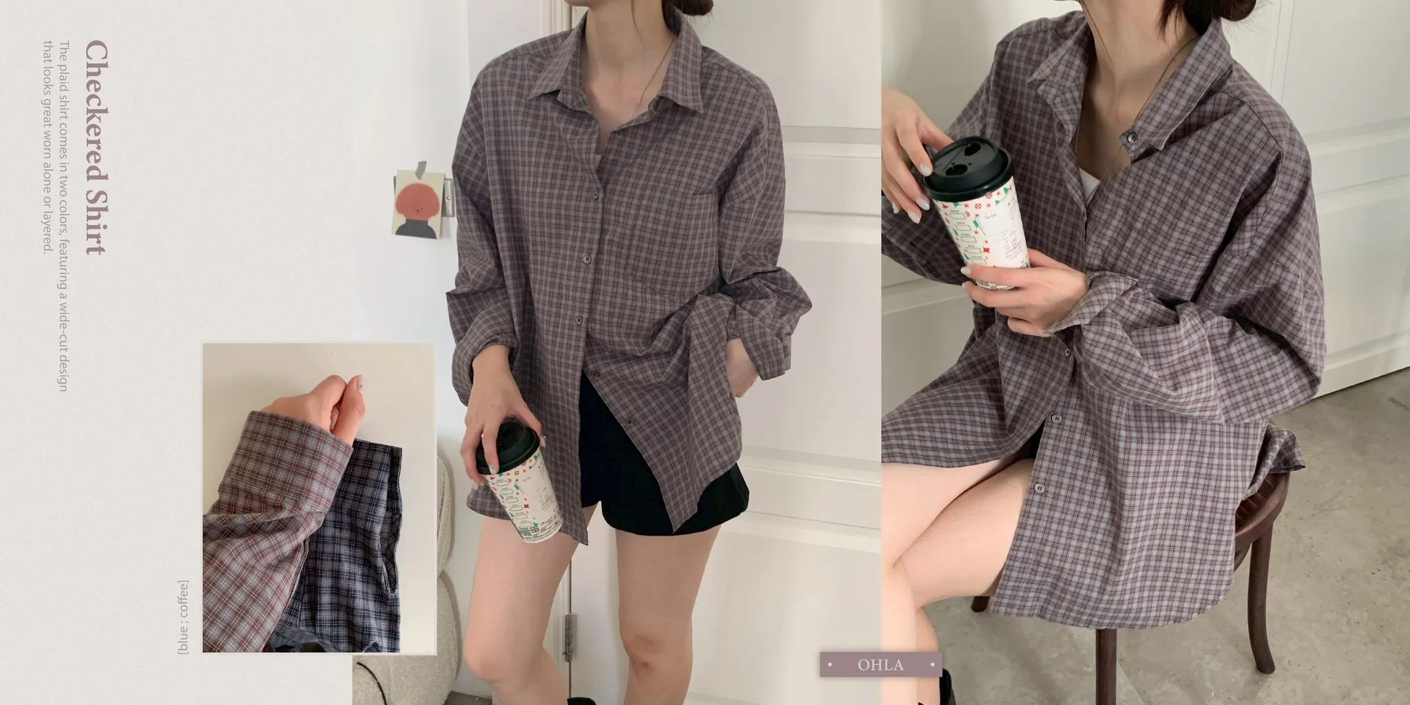 簡單入秋灰藍格紋襯衫