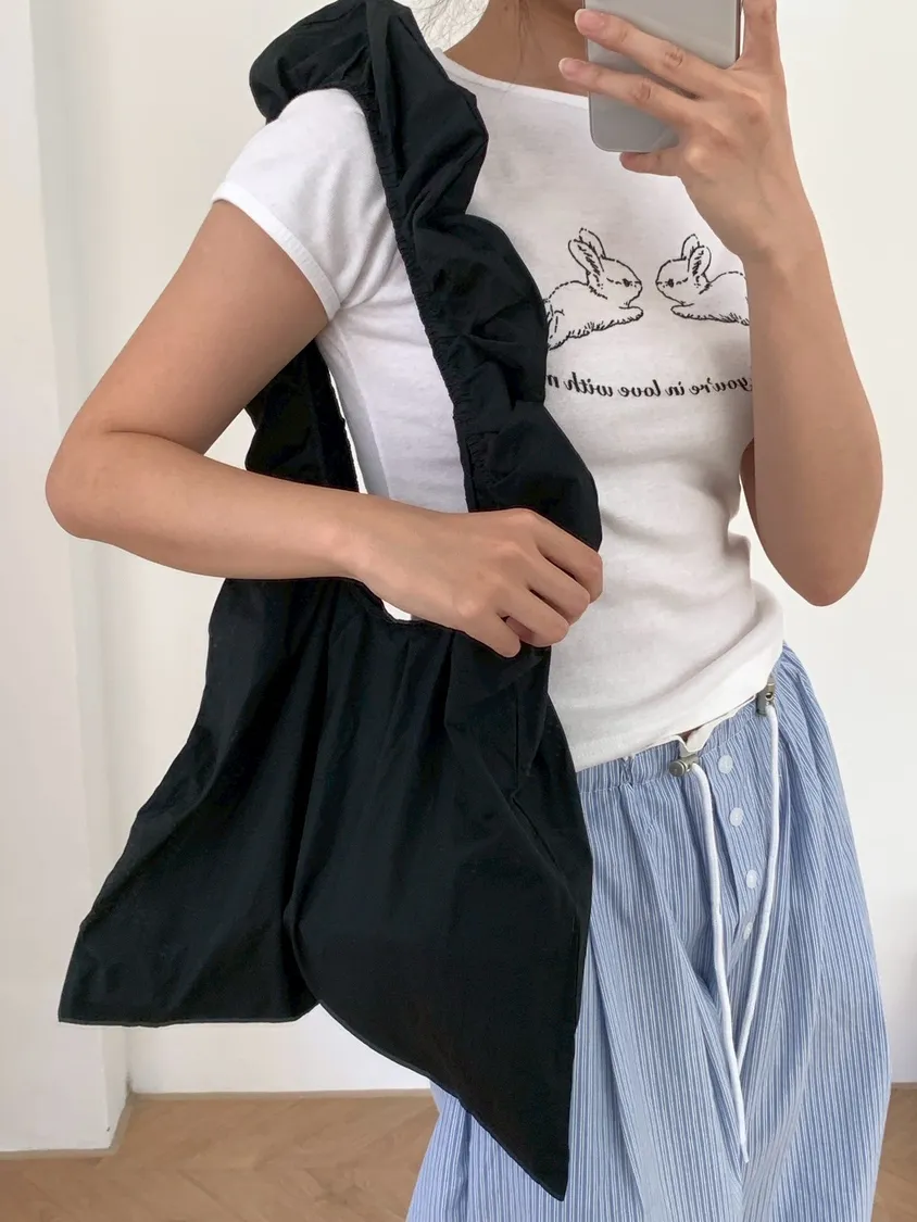 充滿少女感的抓皺肩背布袋
