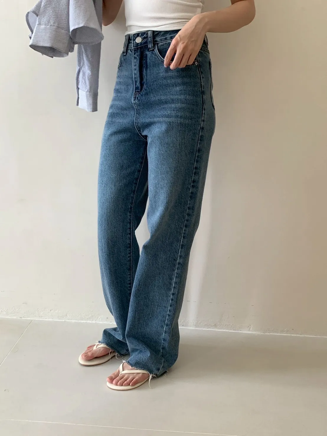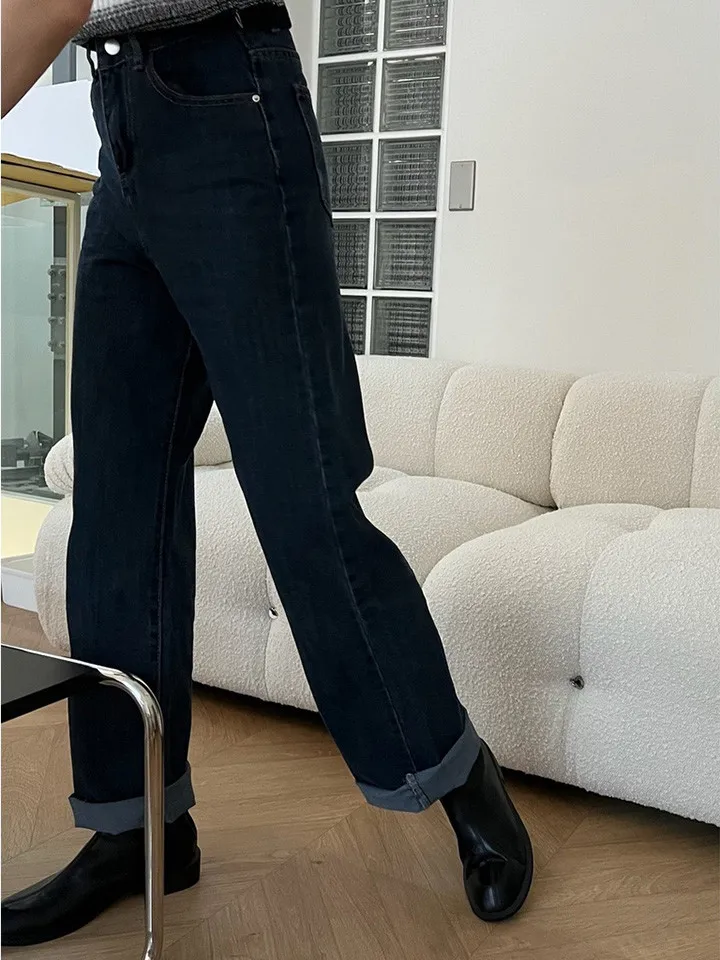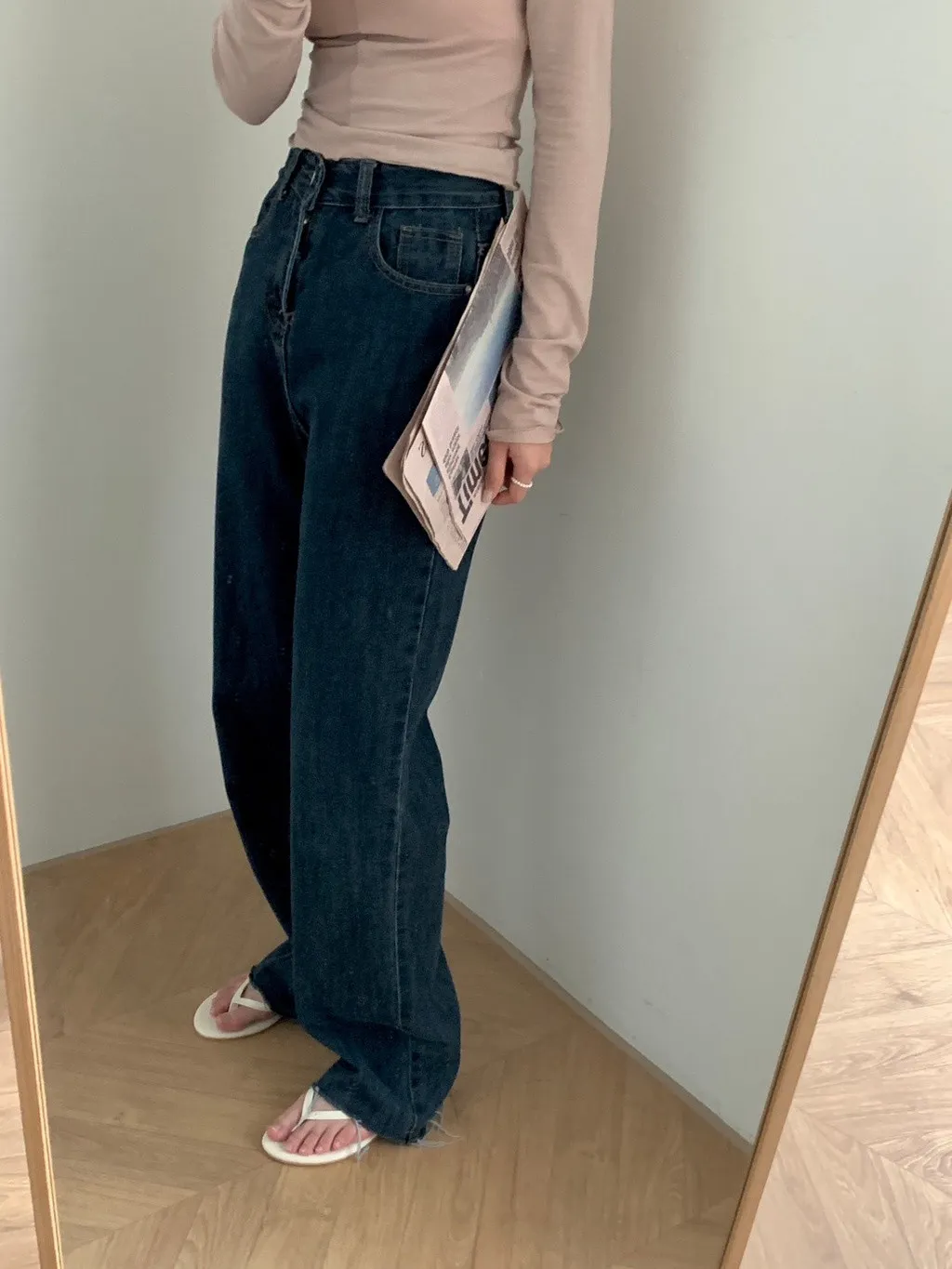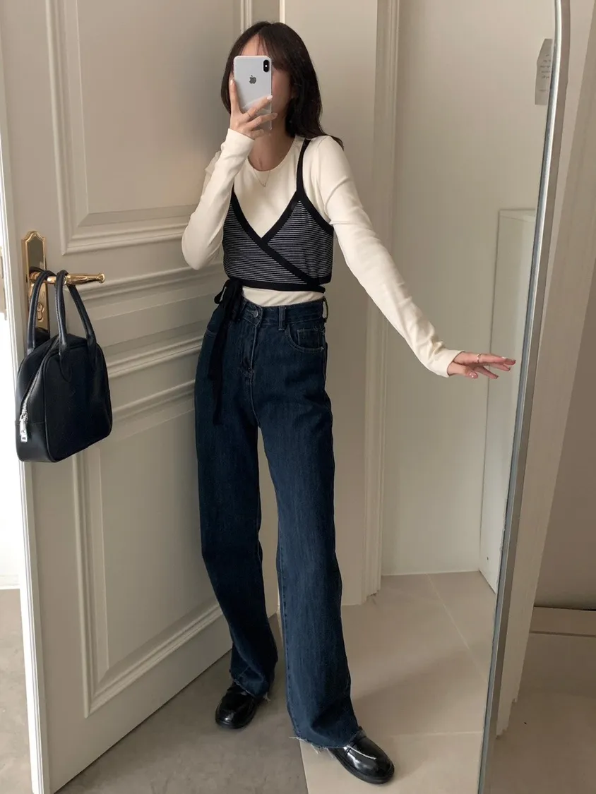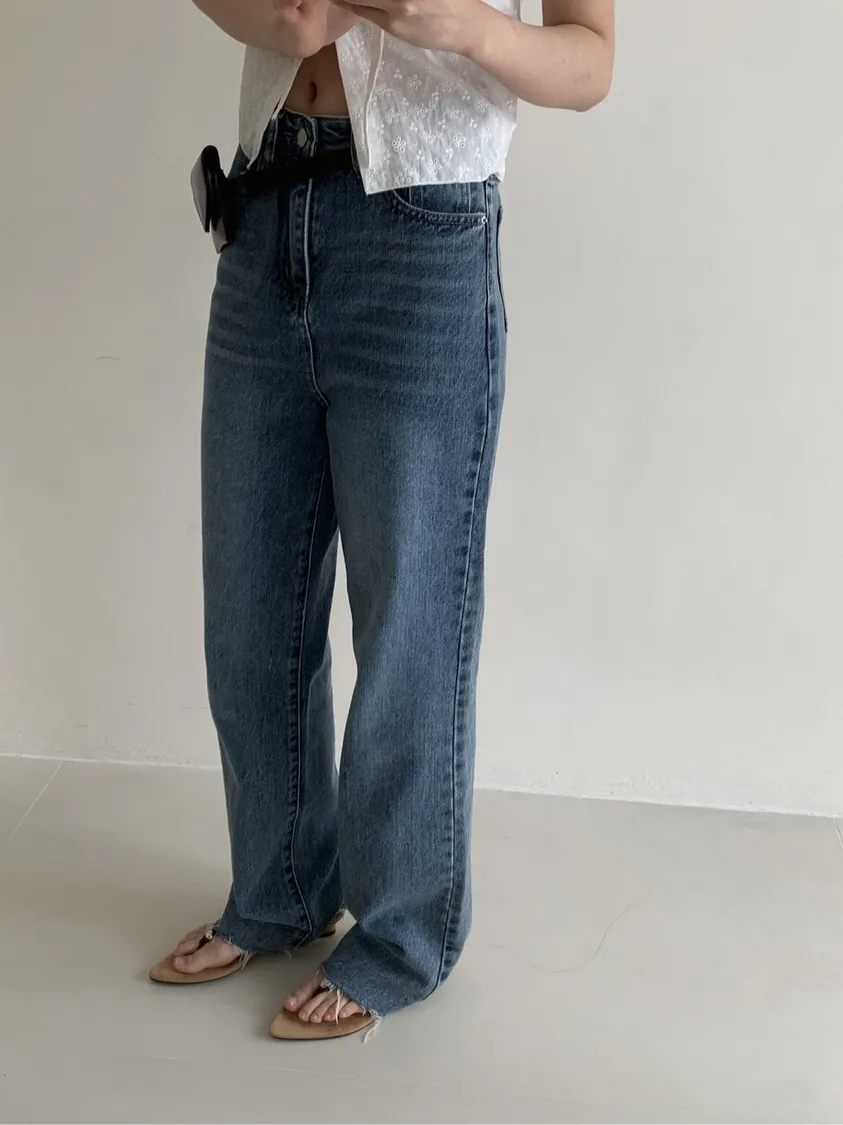 上班日常的直筒牛仔長褲