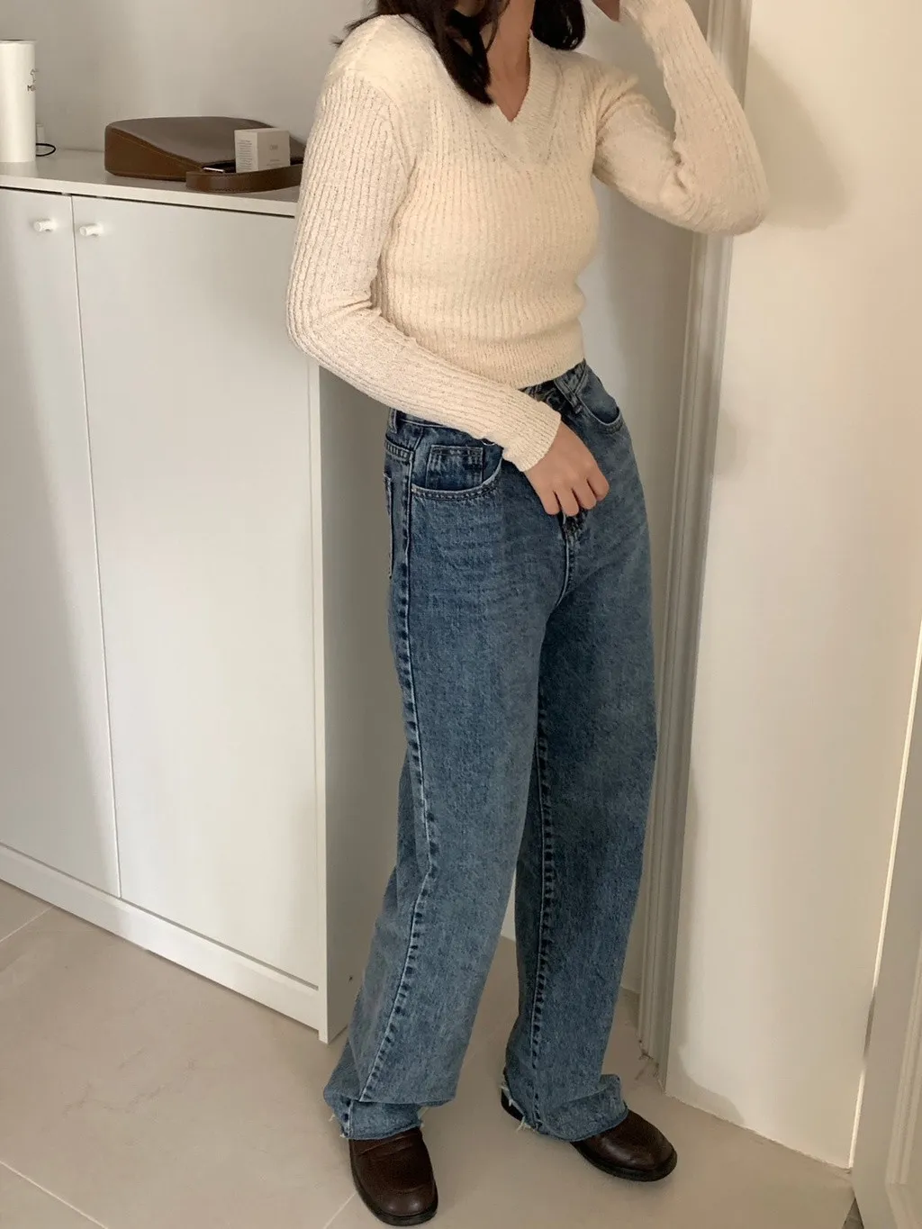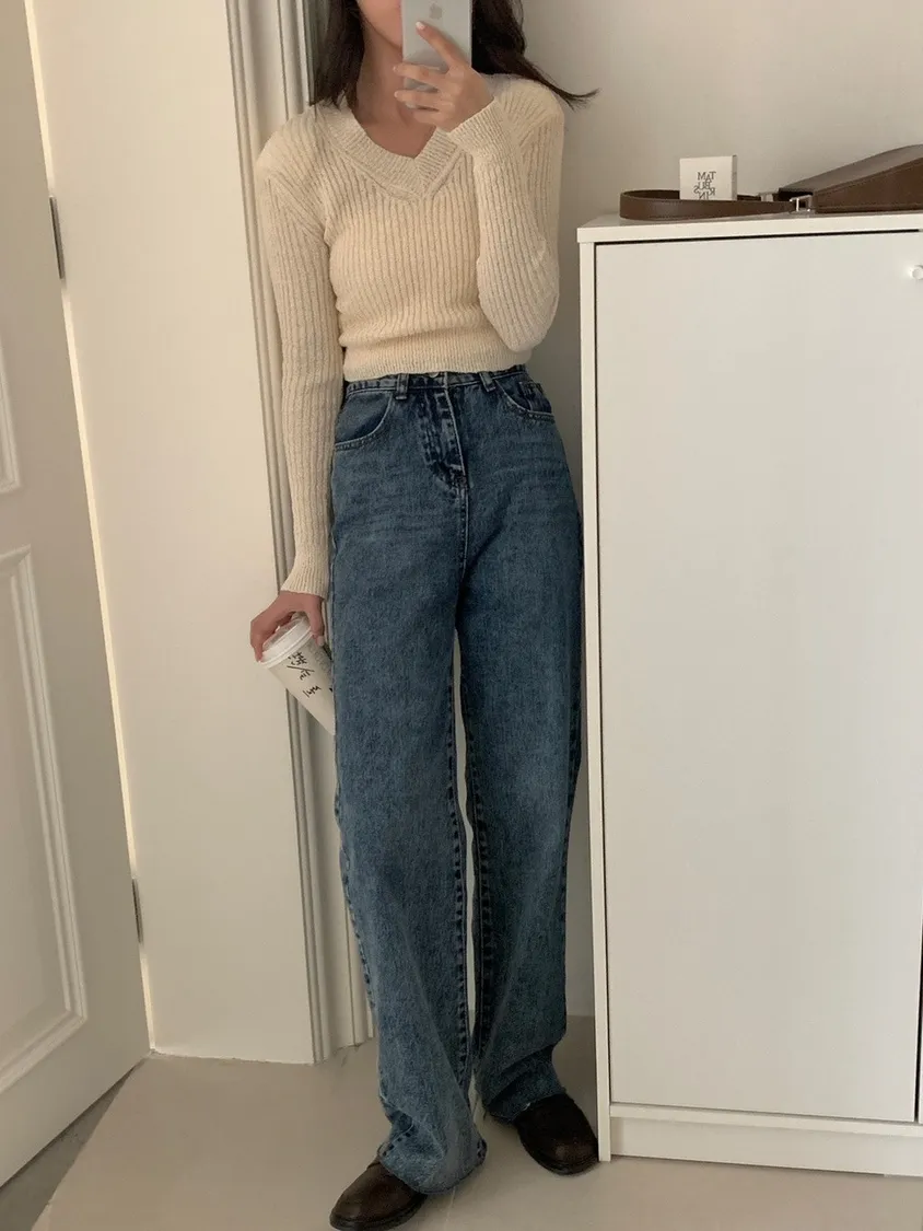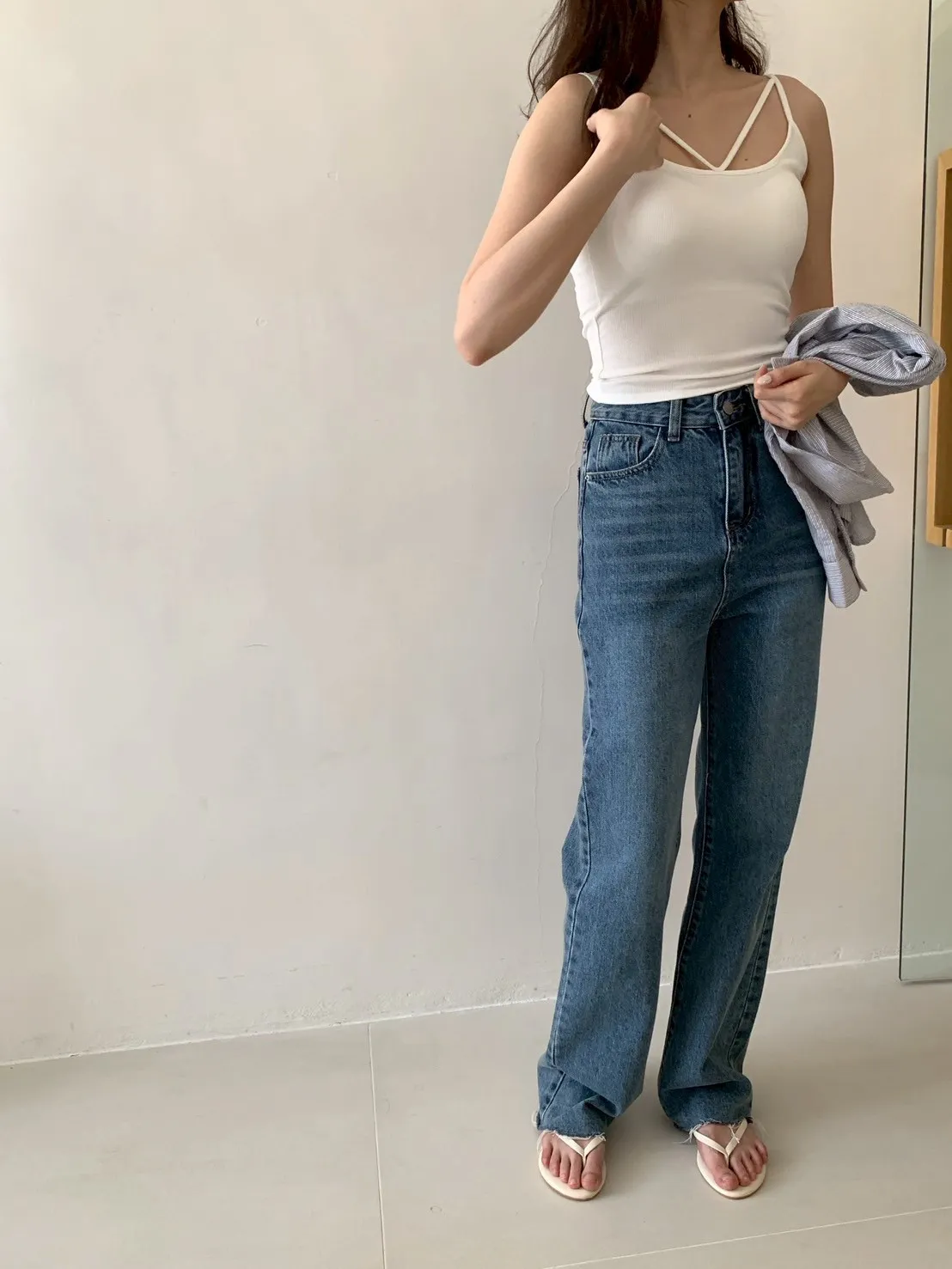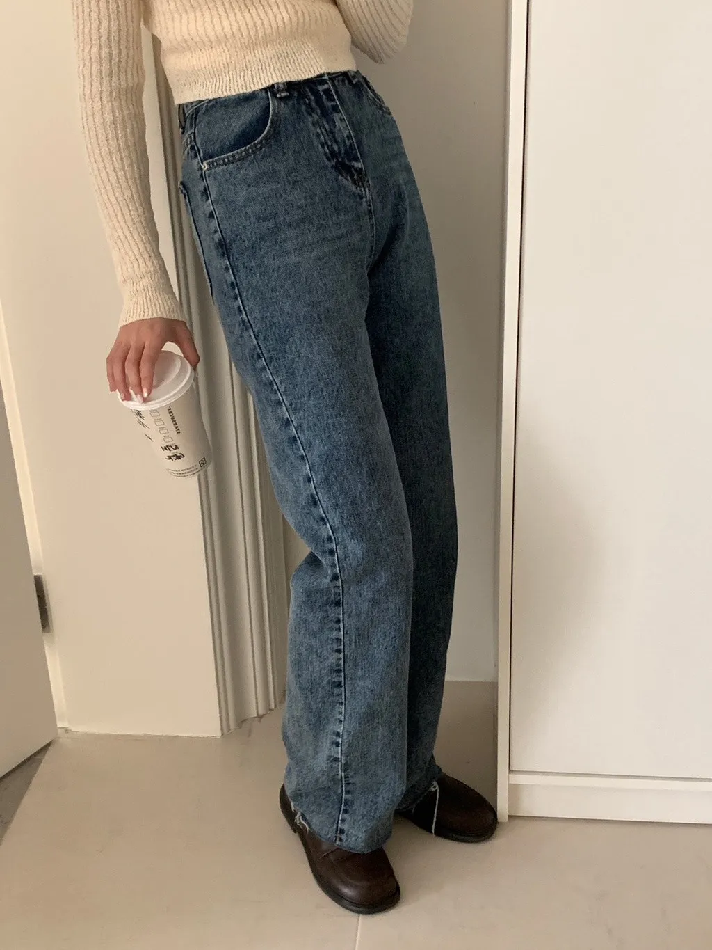 上班日常的直筒牛仔長褲