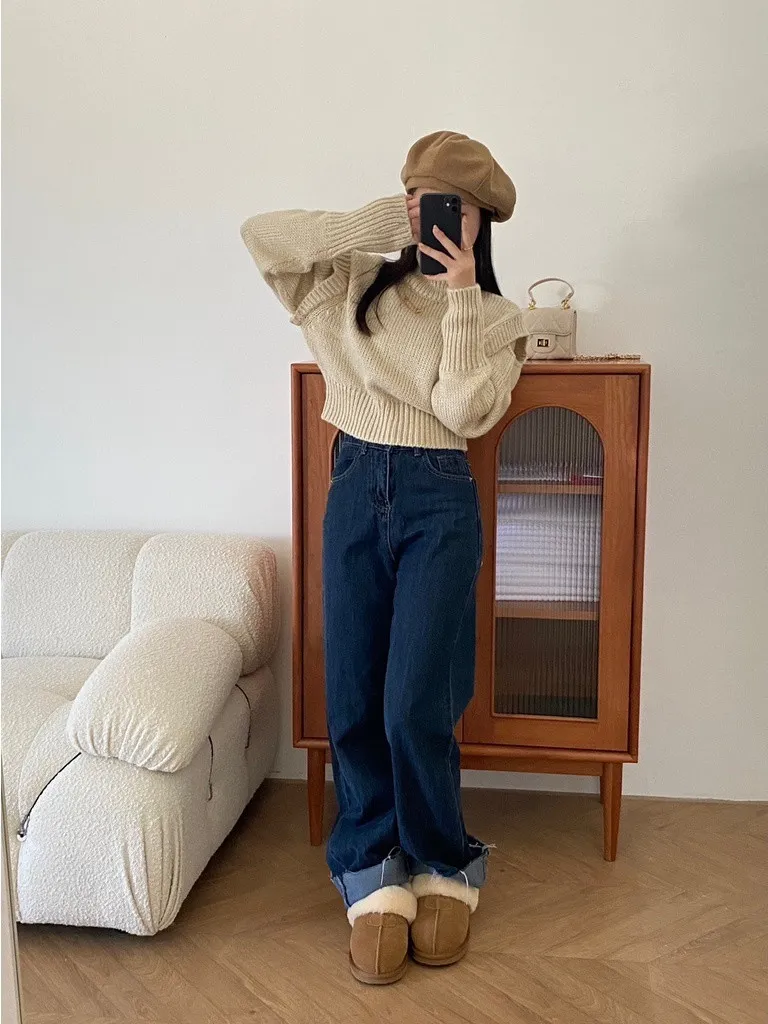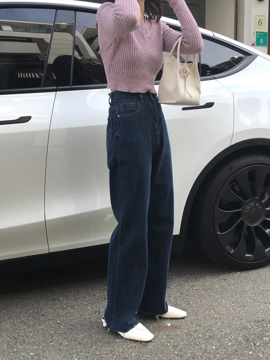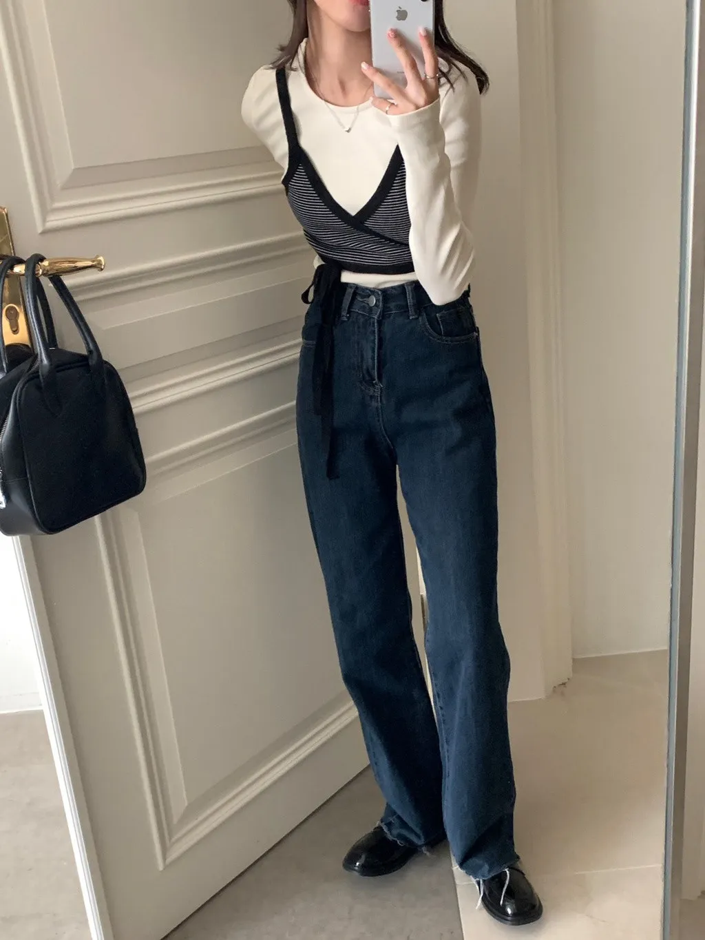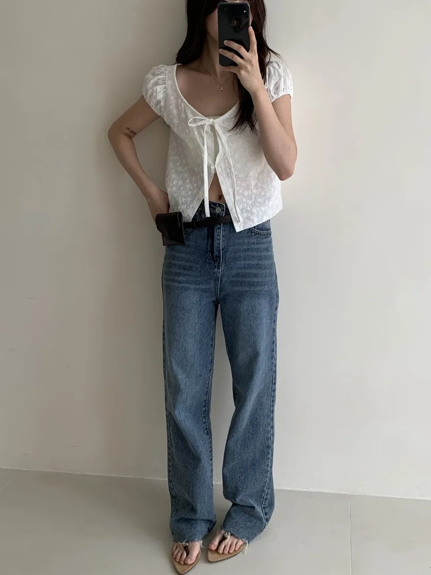 上班日常的直筒牛仔長褲