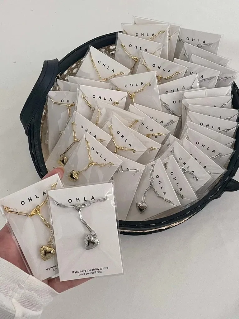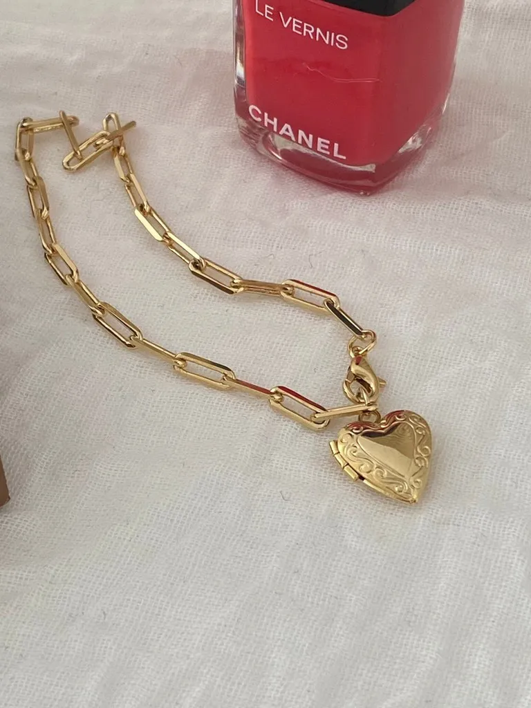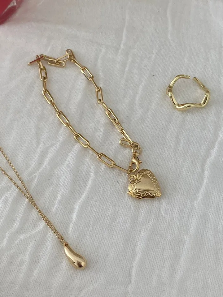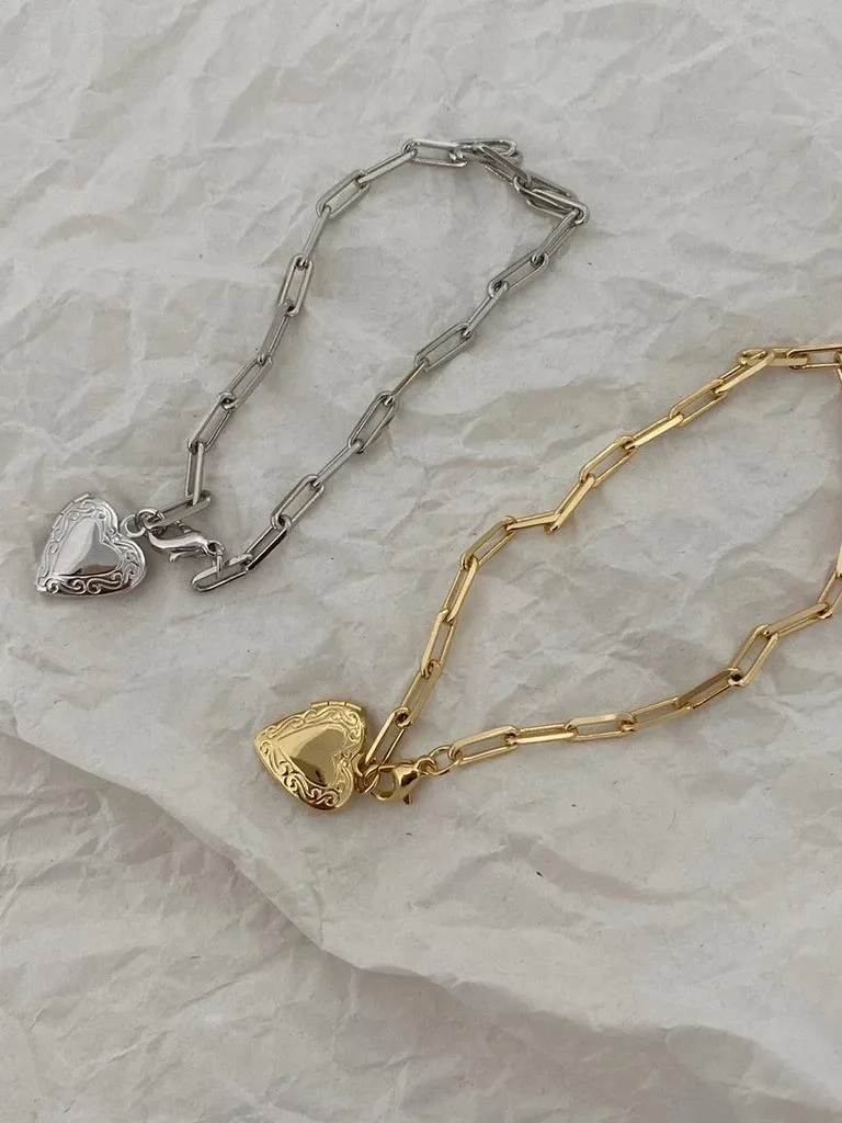 請打開的愛心長方簍空鍊條手鍊