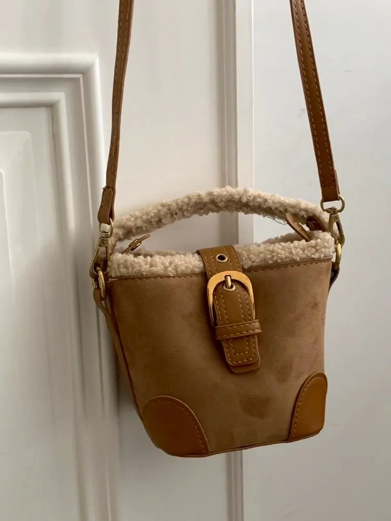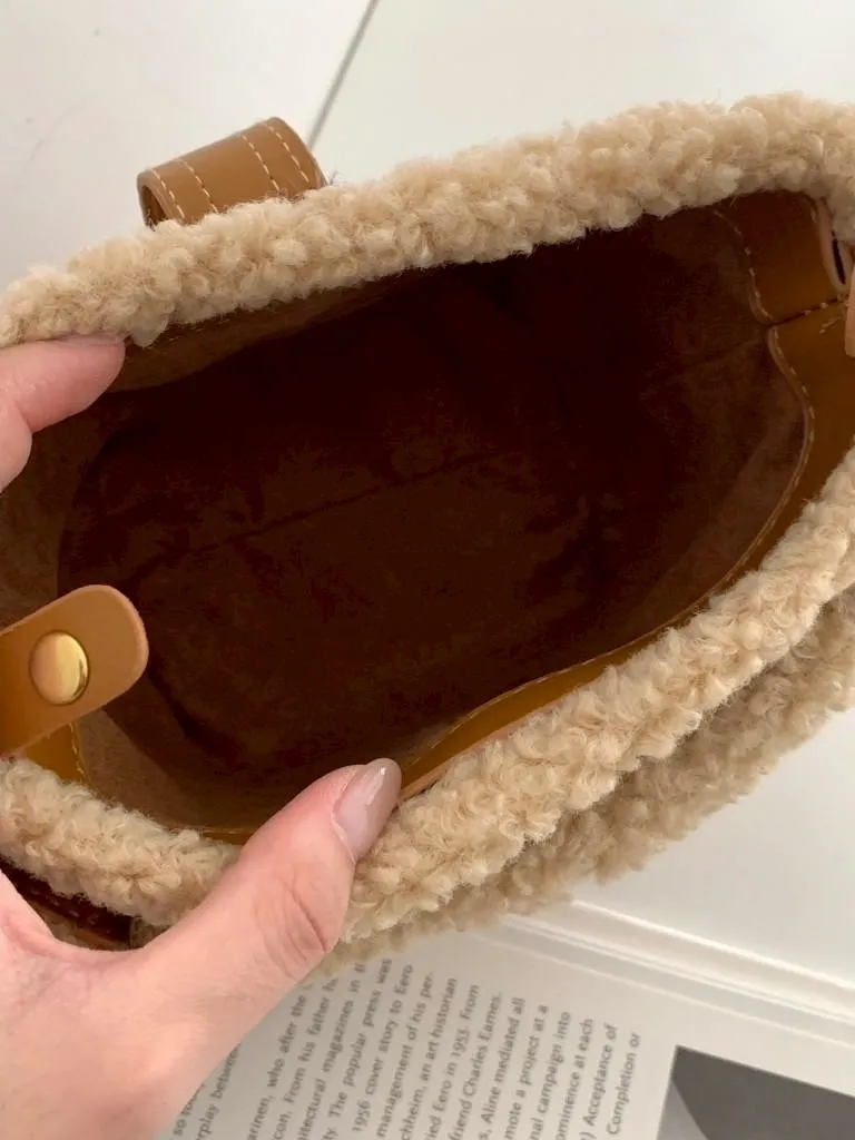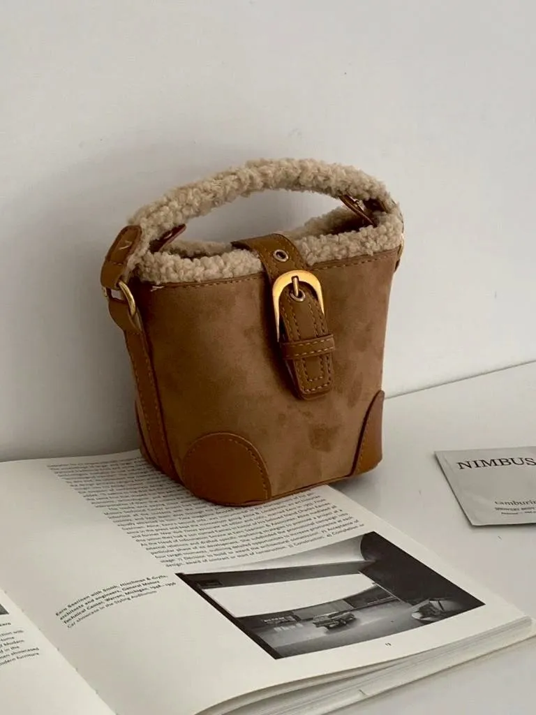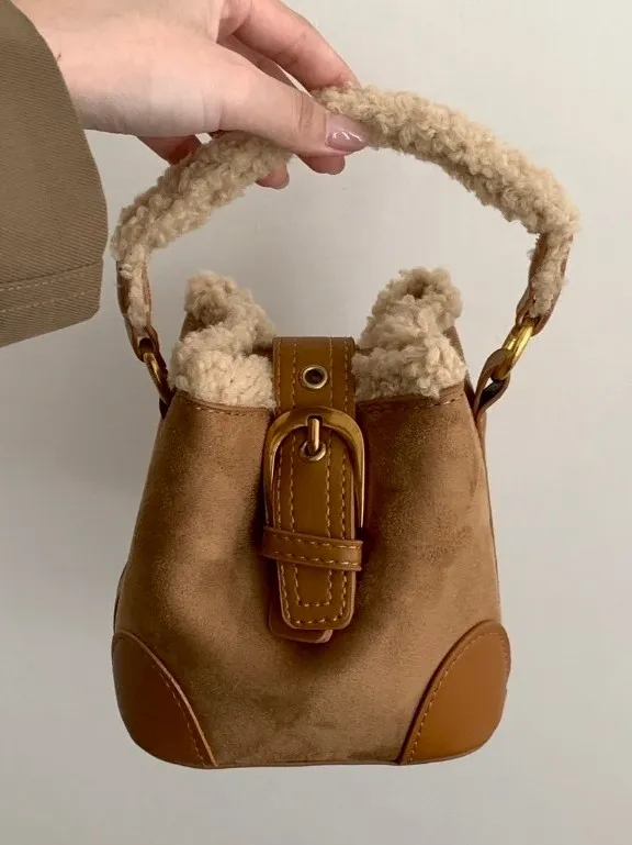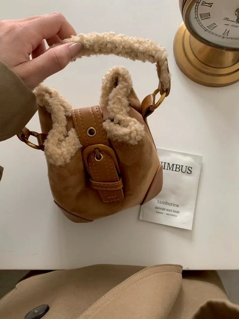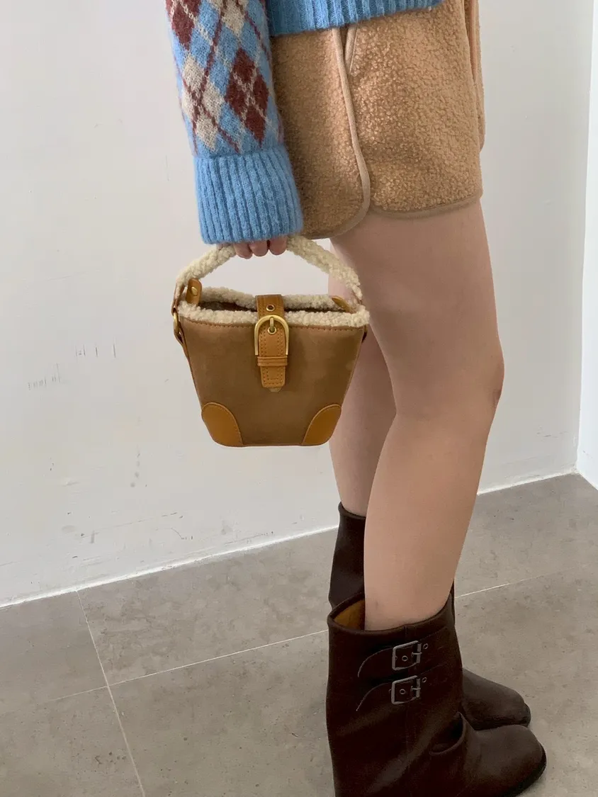 羊羔毛短提把迷你水桶包