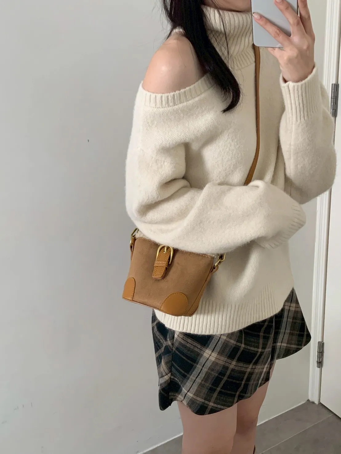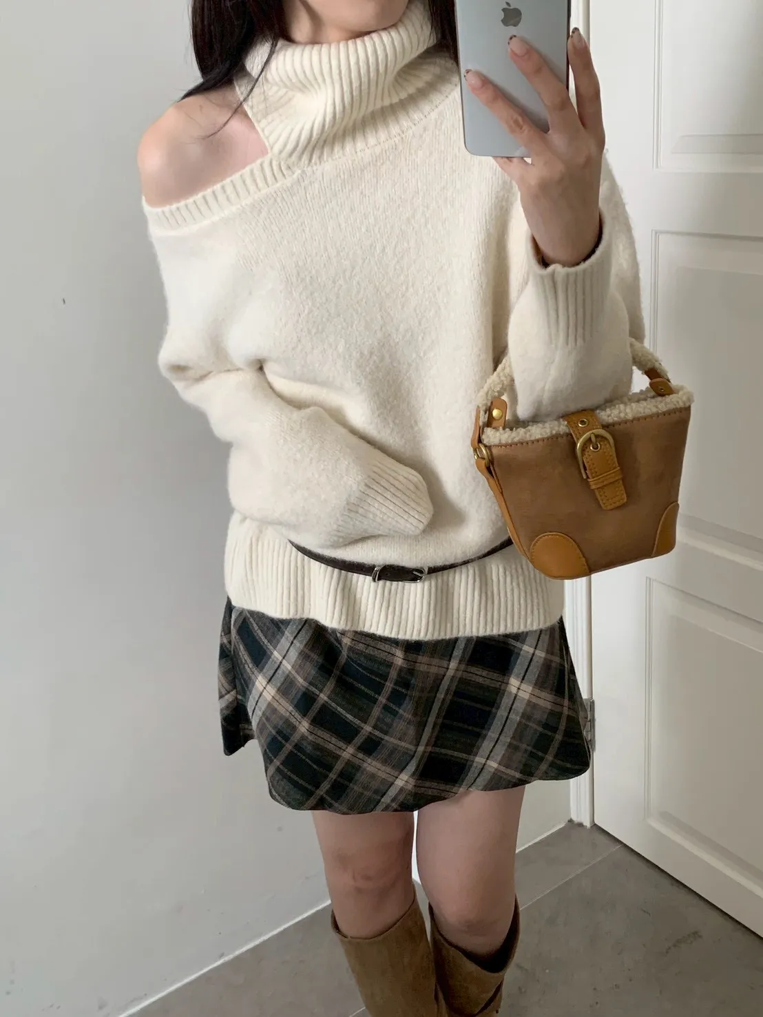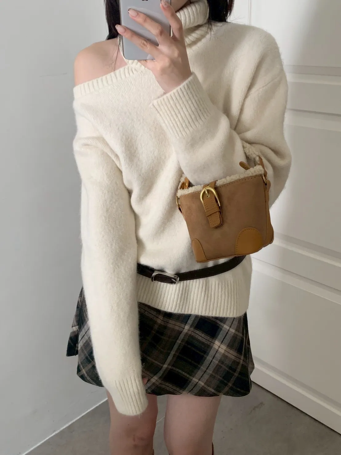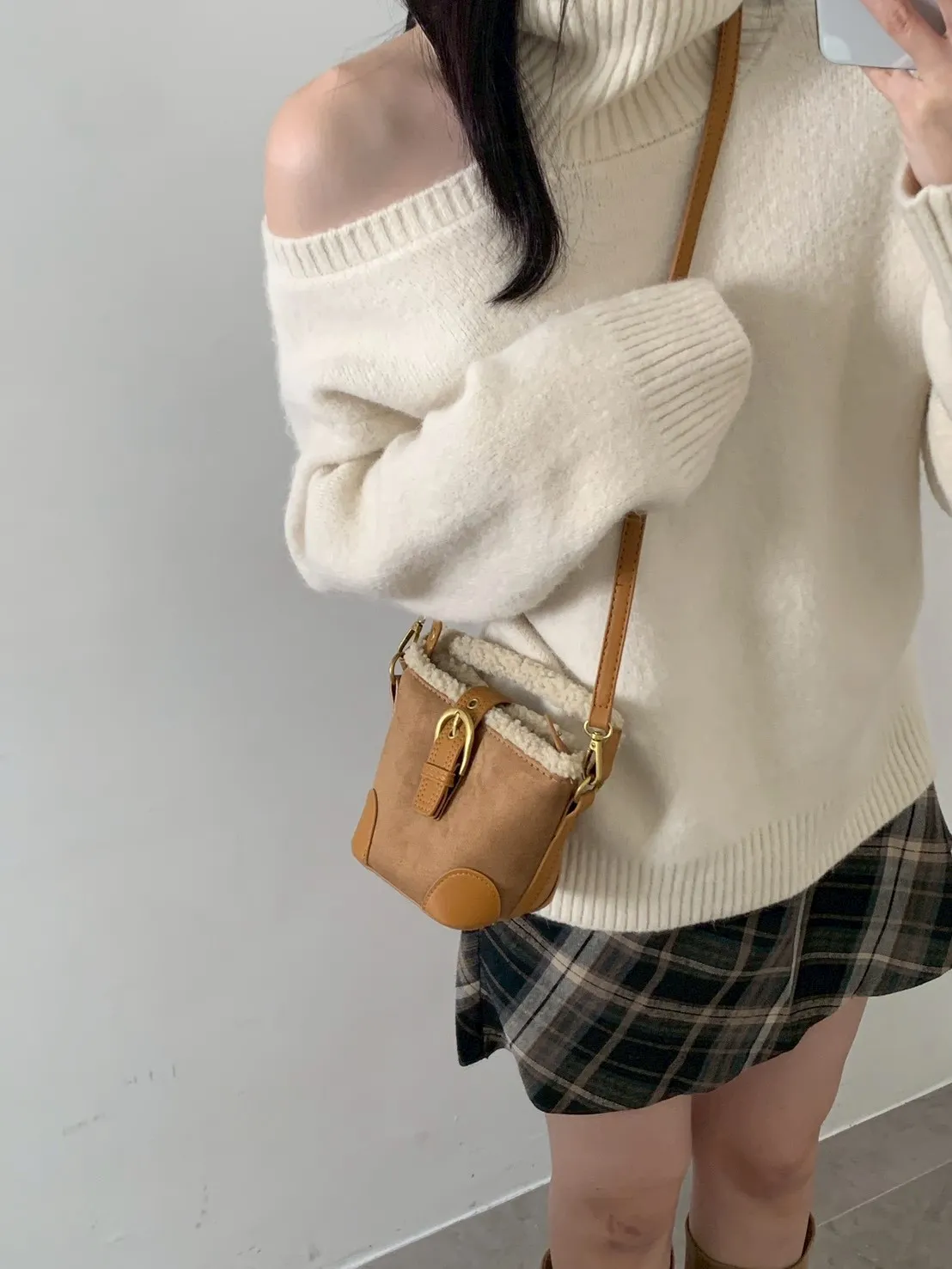 羊羔毛短提把迷你水桶包