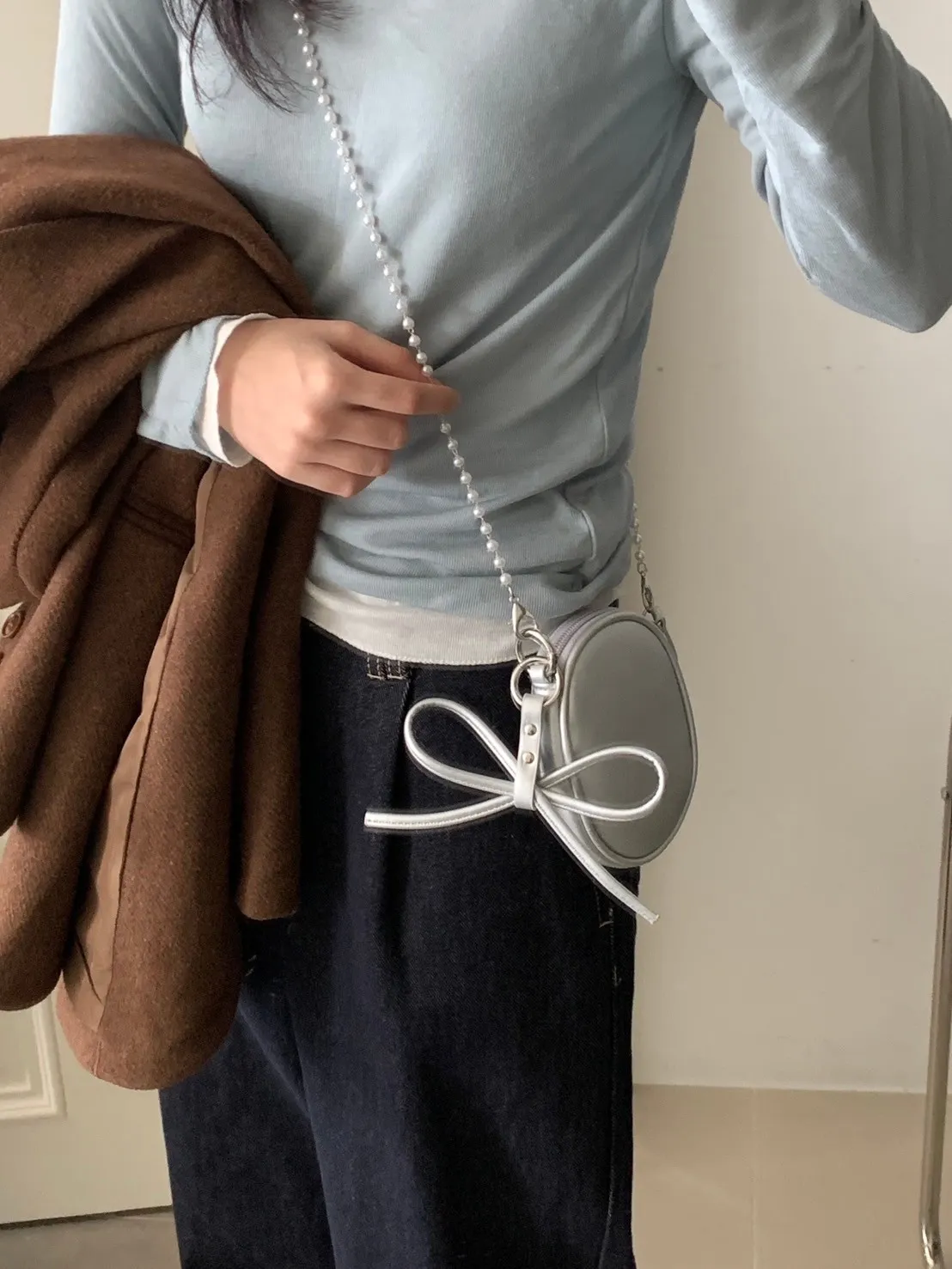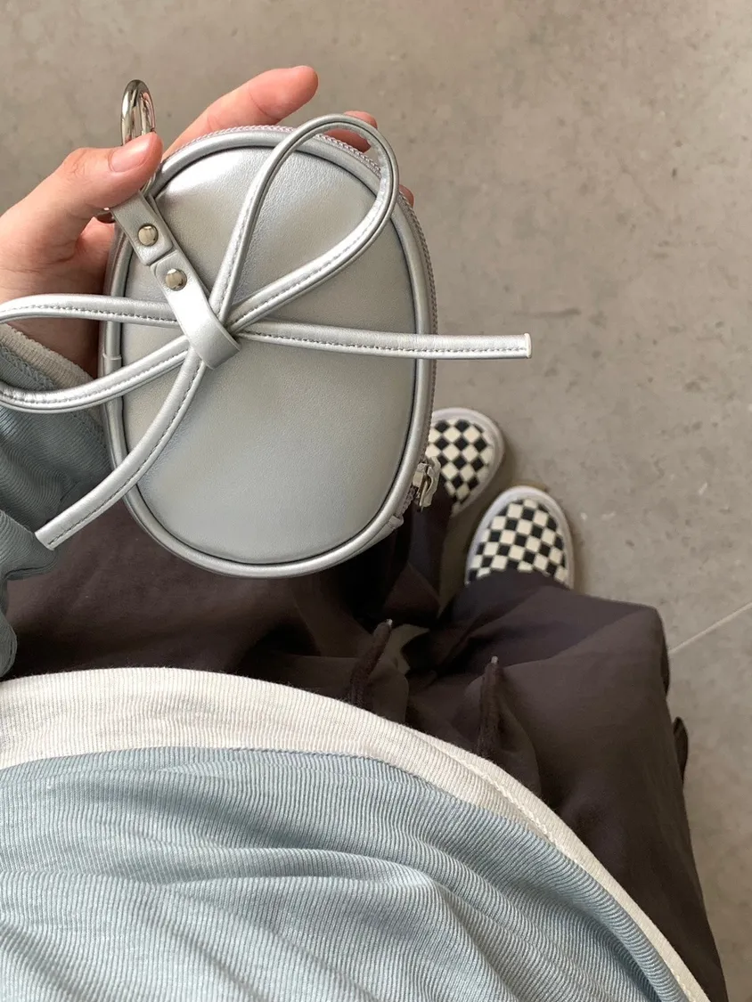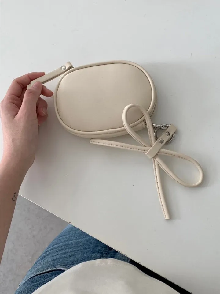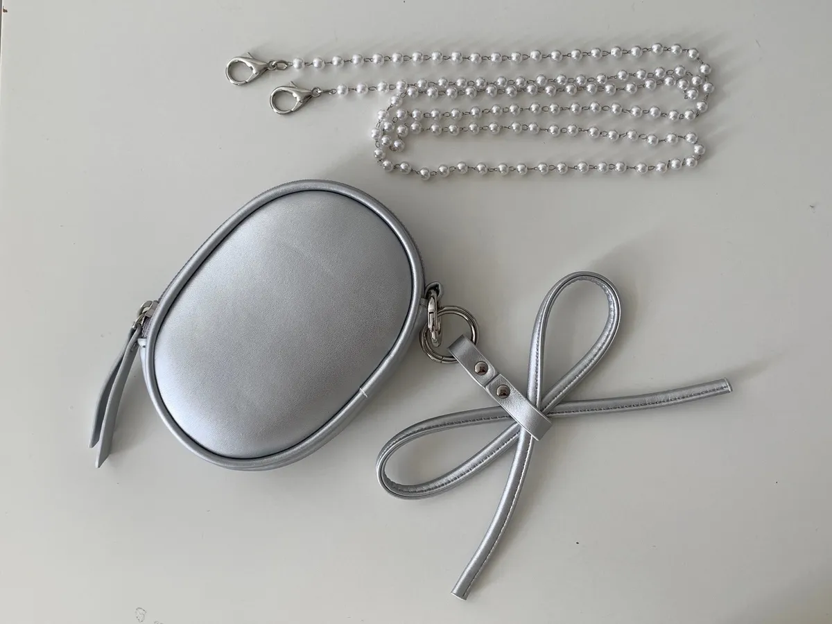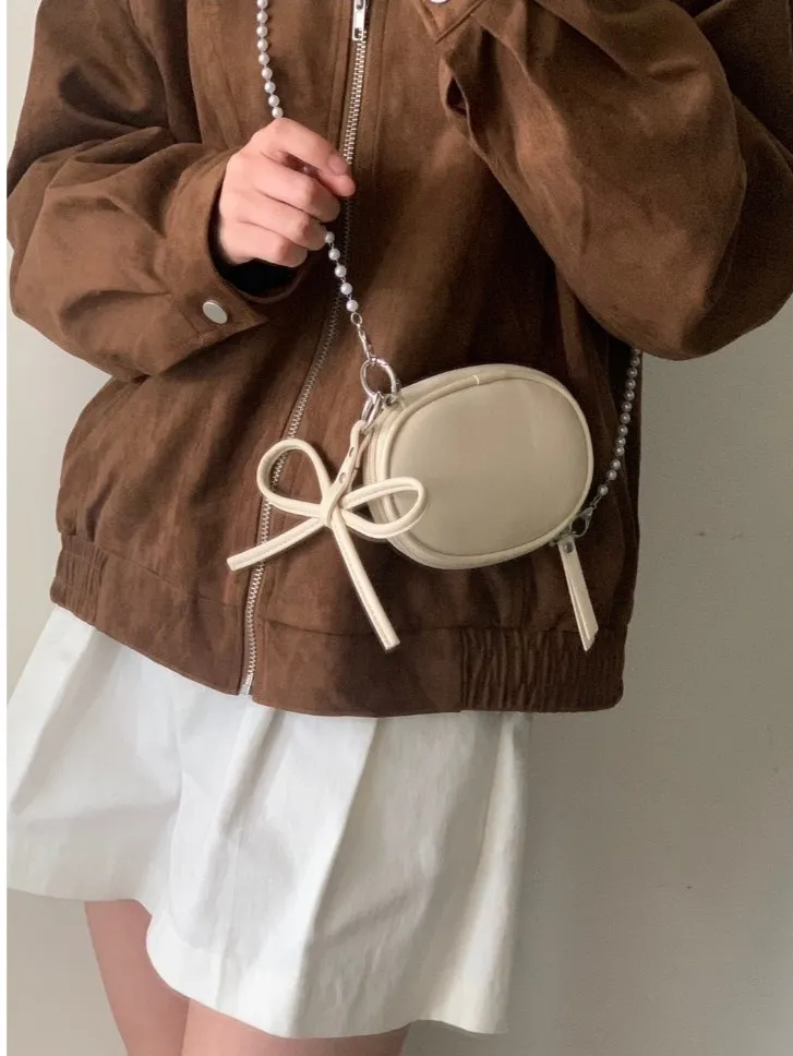 蝴蝶結日記吊飾橢圓小包 附珍珠鍊條