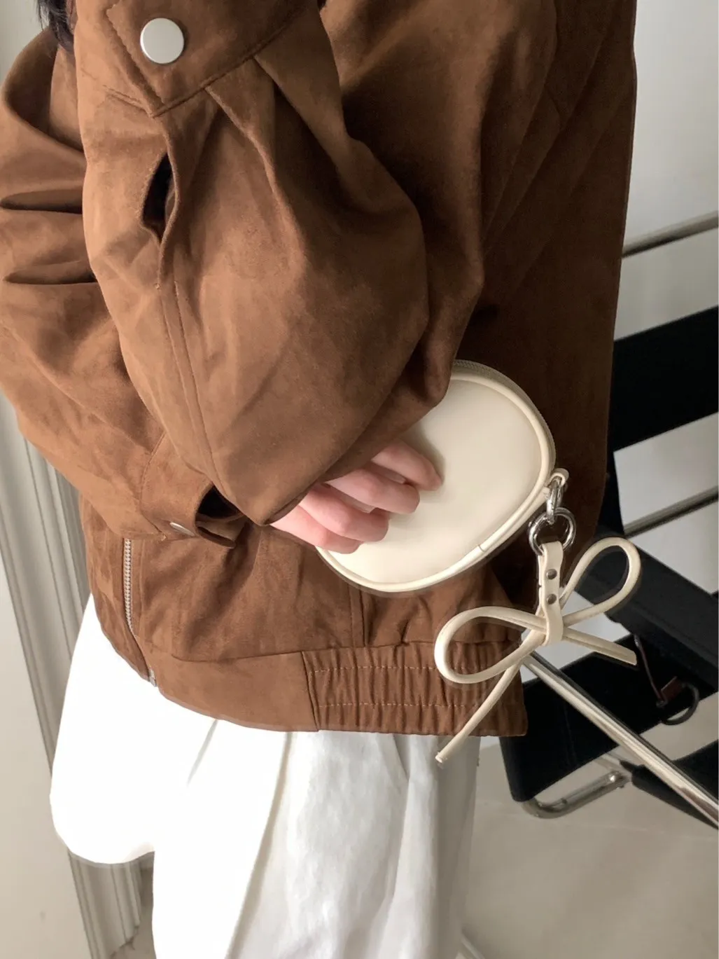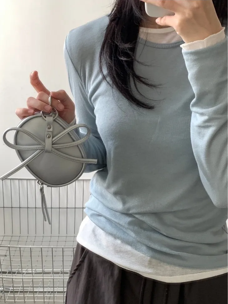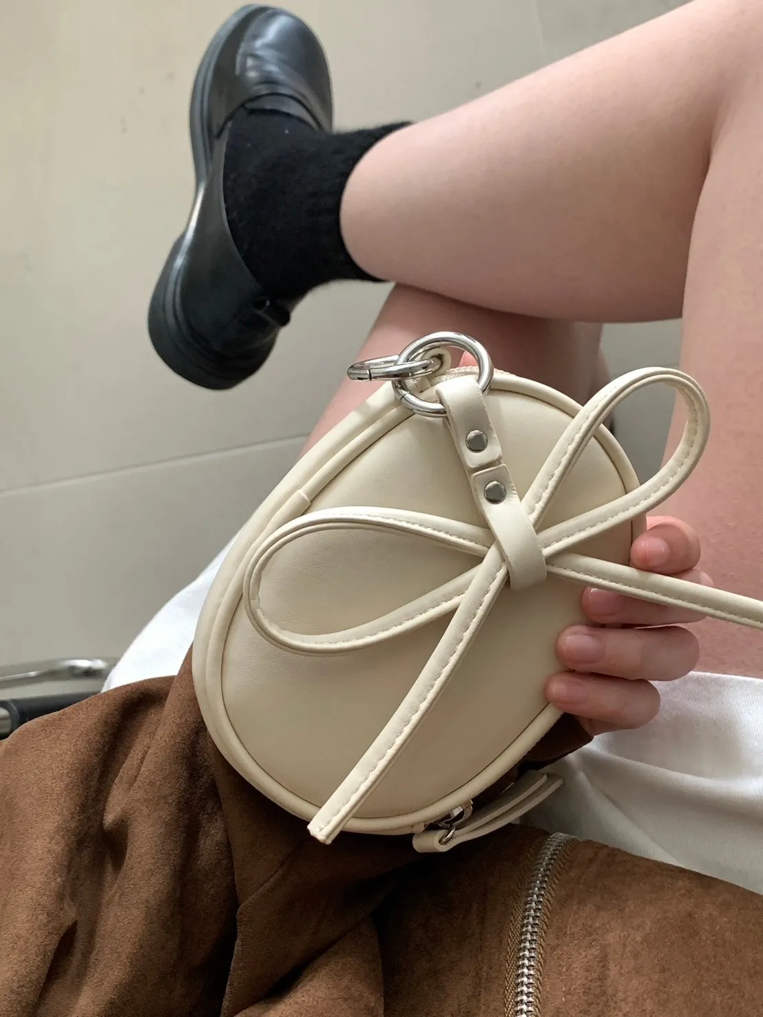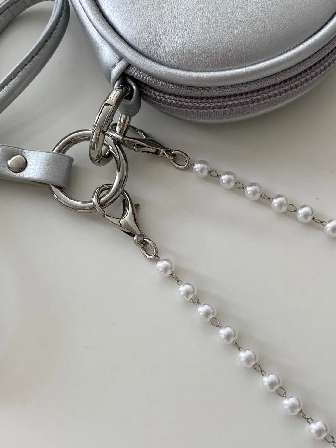 蝴蝶結日記吊飾橢圓小包 附珍珠鍊條