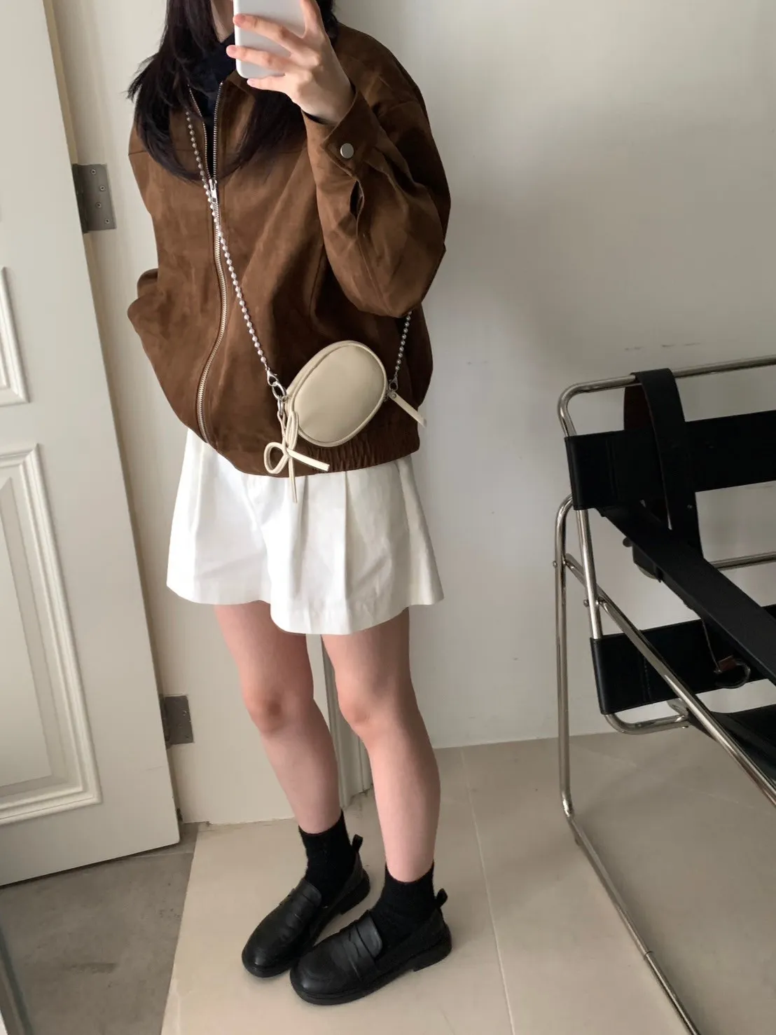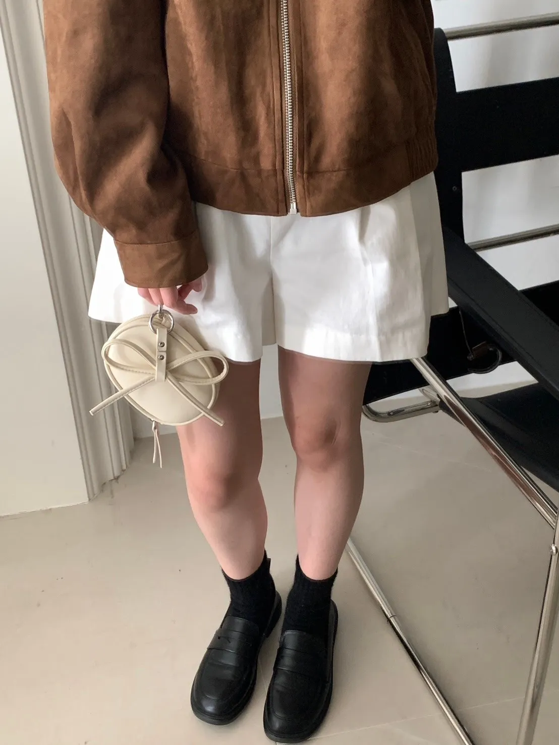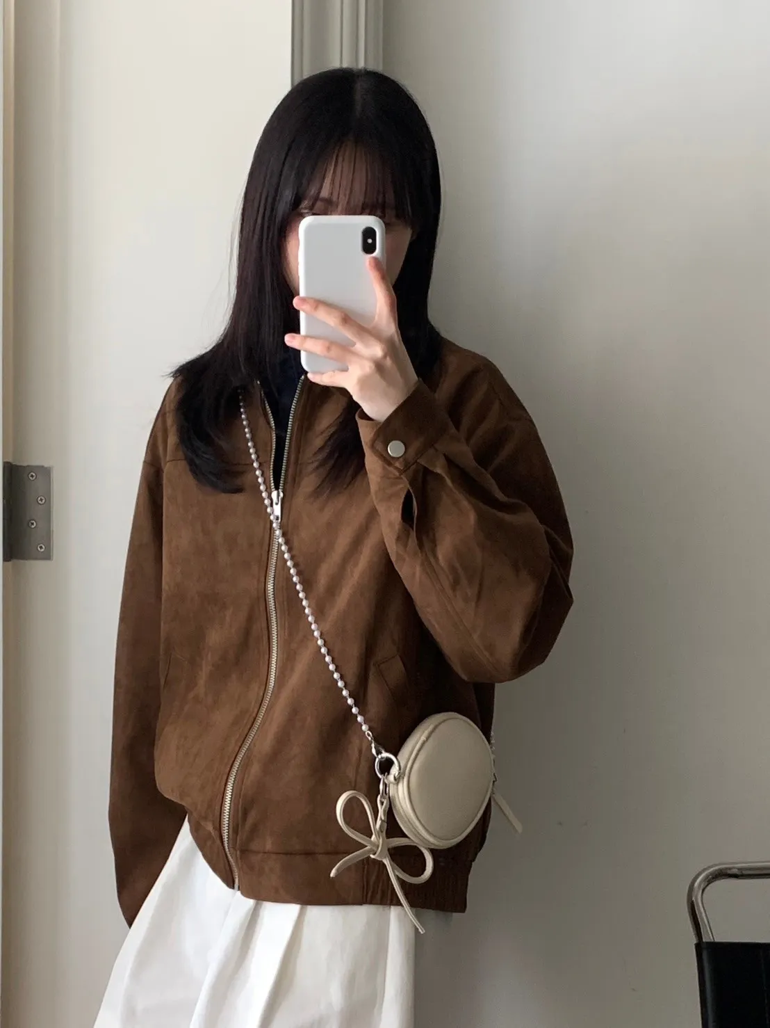 蝴蝶結日記吊飾橢圓小包 附珍珠鍊條