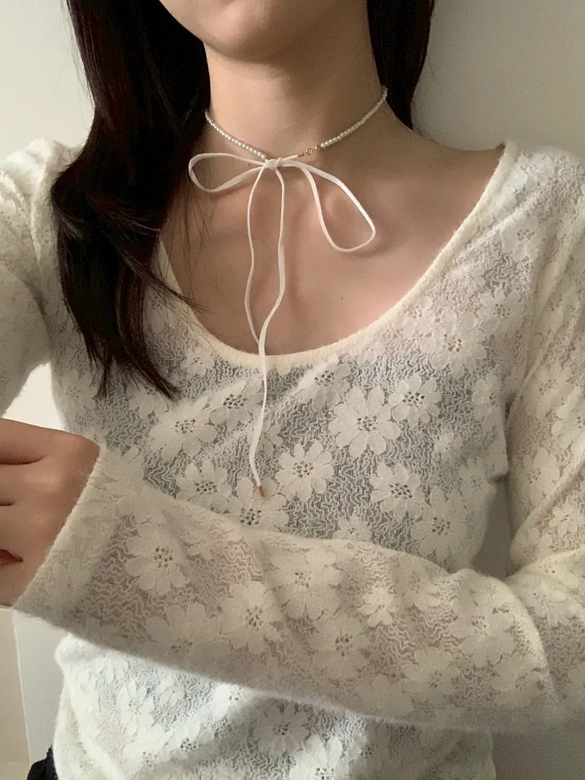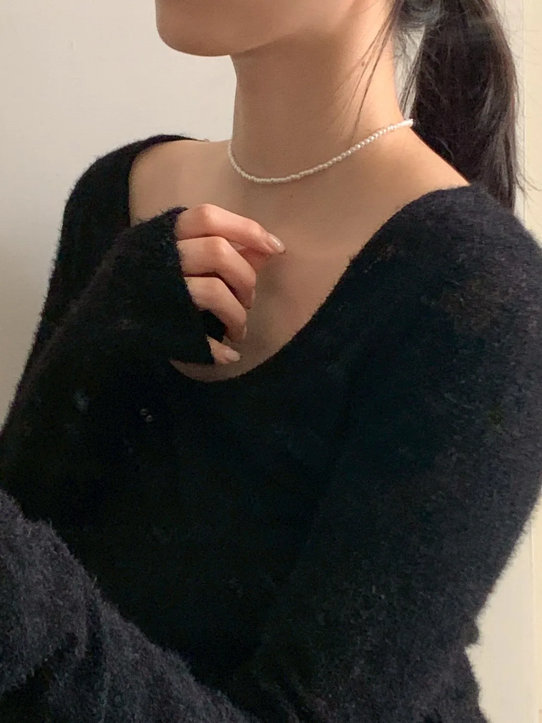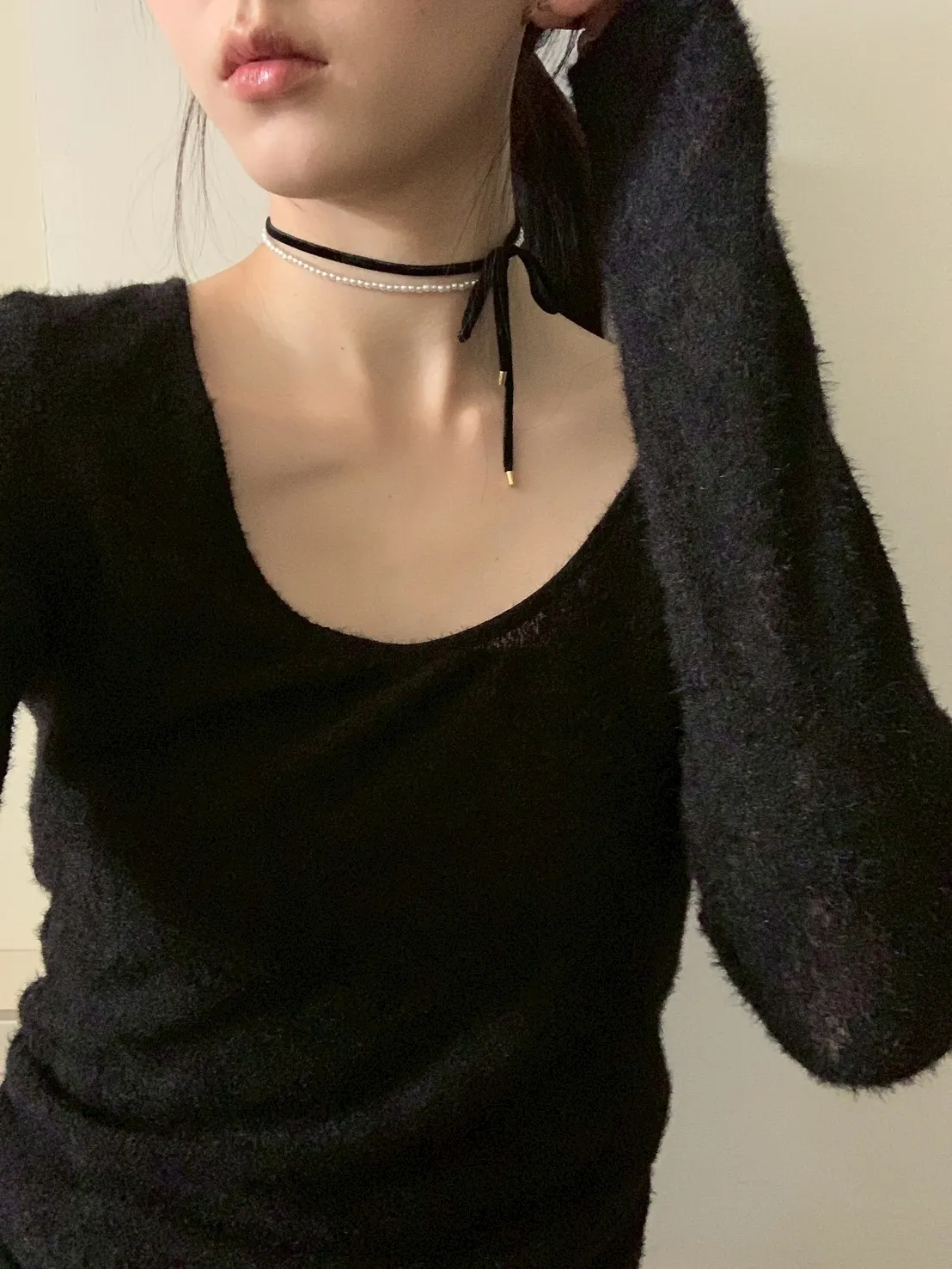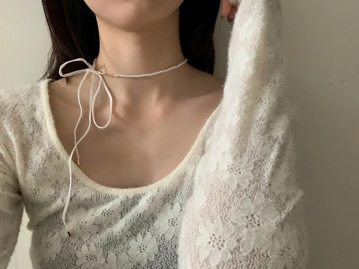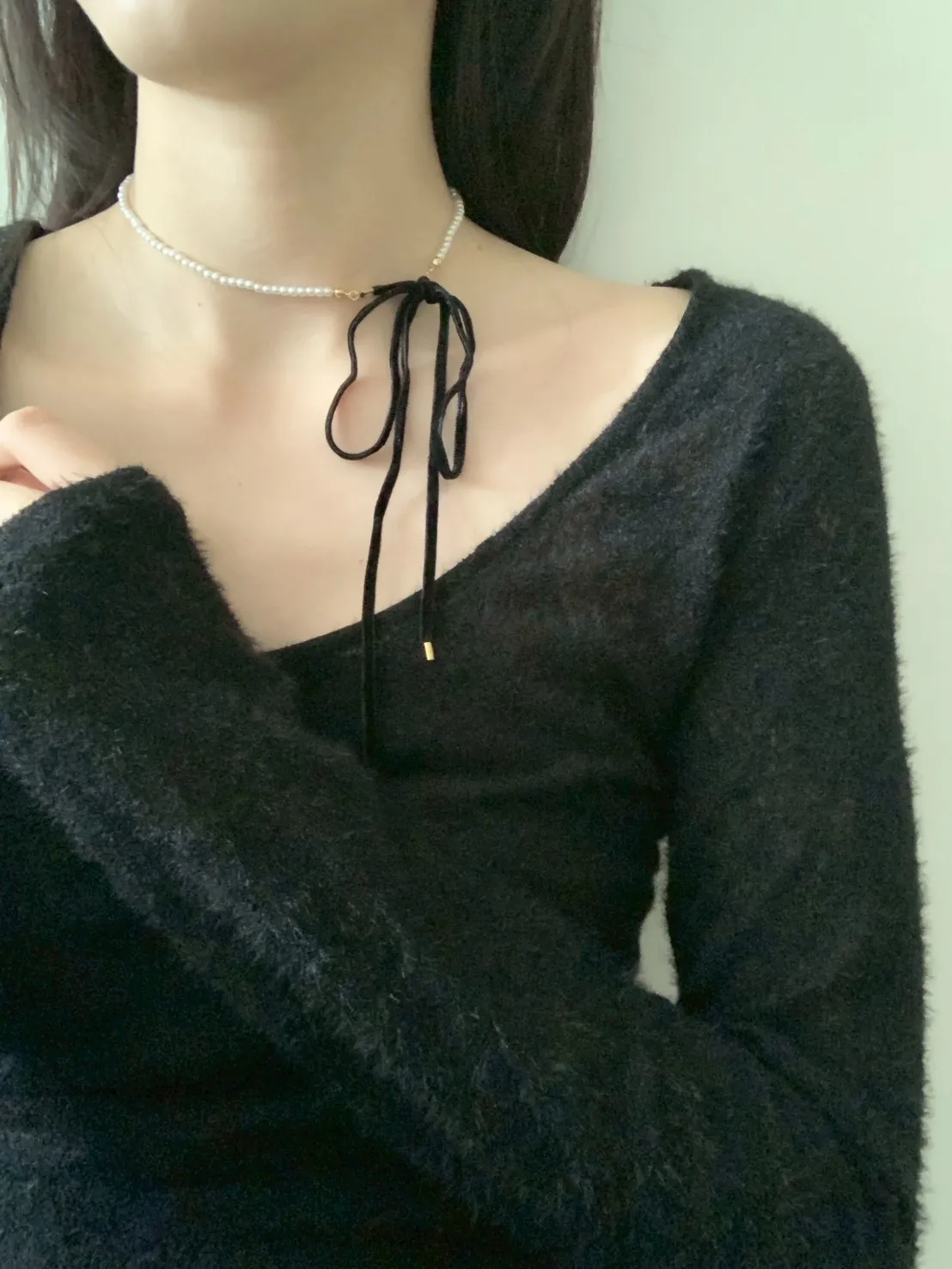 自己綁絨布蝴蝶結珍珠項鍊