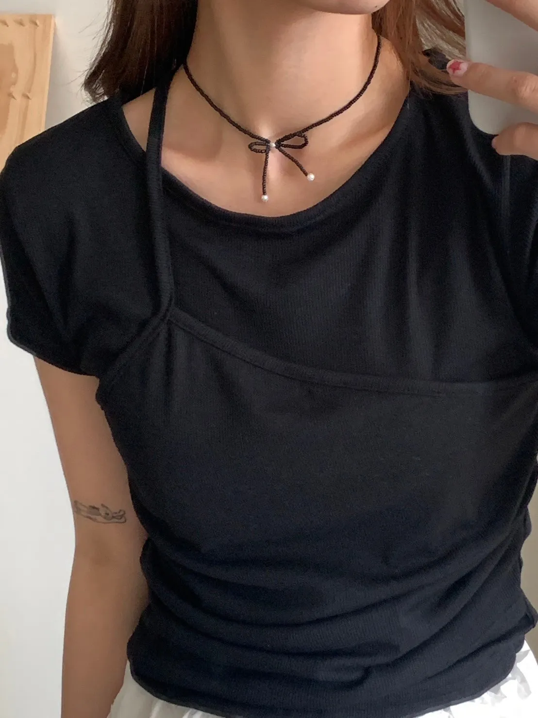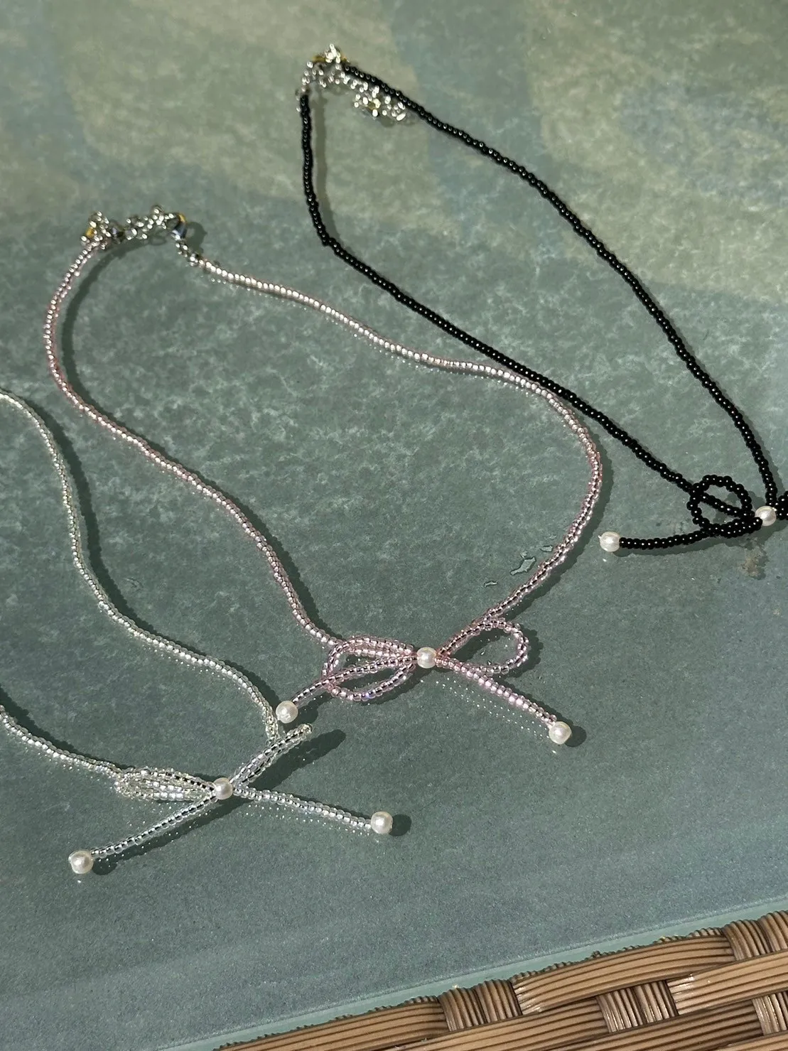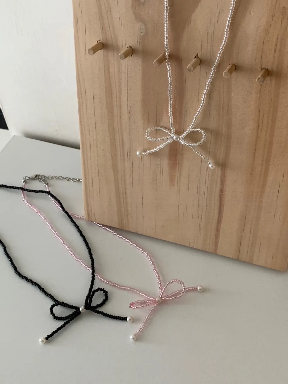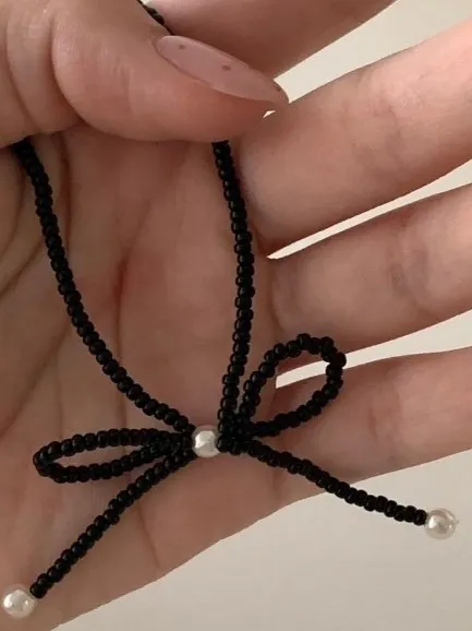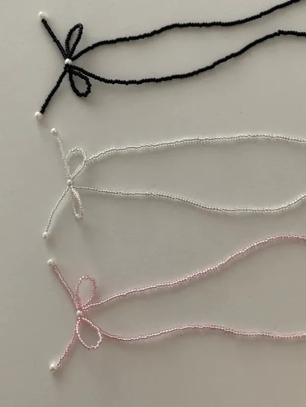 3珍珠蝴蝶結串珠項鍊