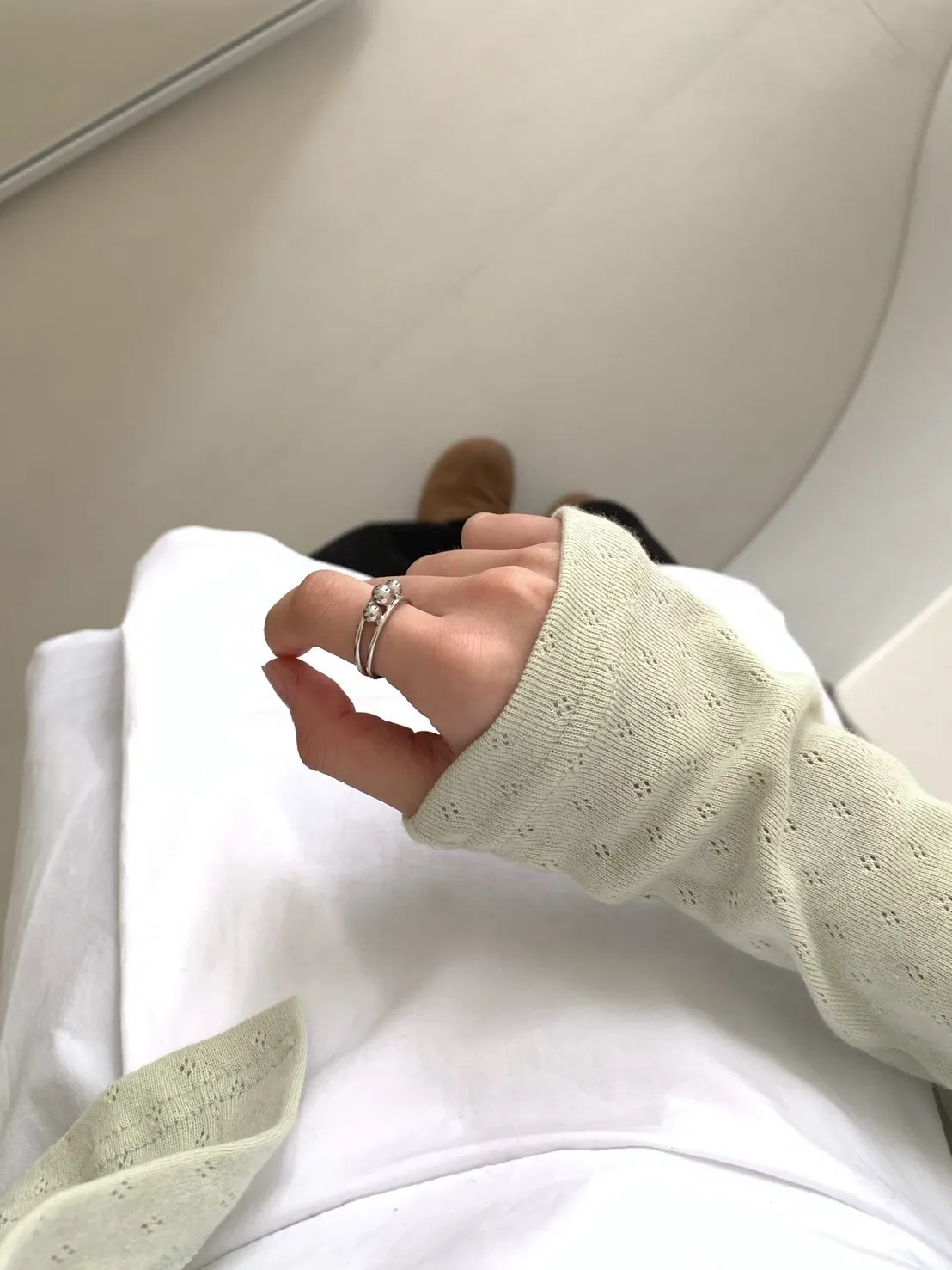 織入了微簍空的小花圖案 透出若隱若現的肌膚線條