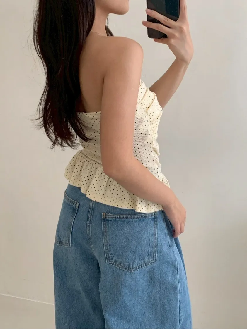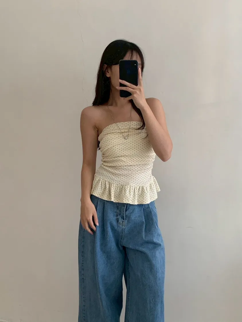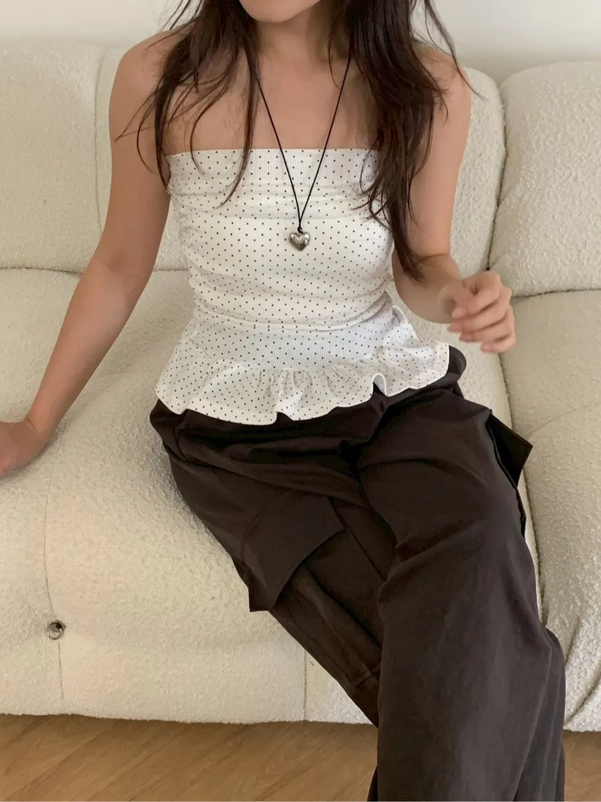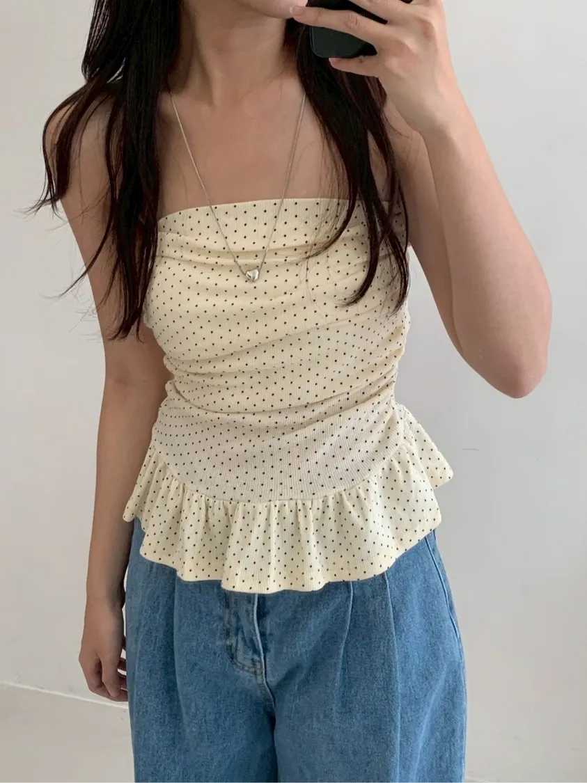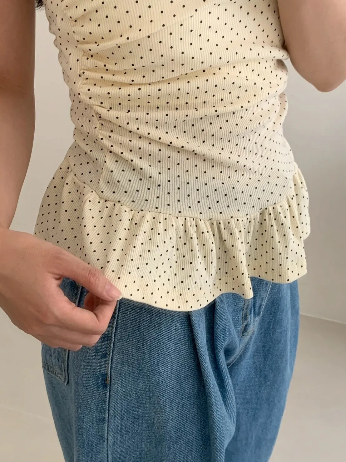 夏日指南點點抓皺平口上衣