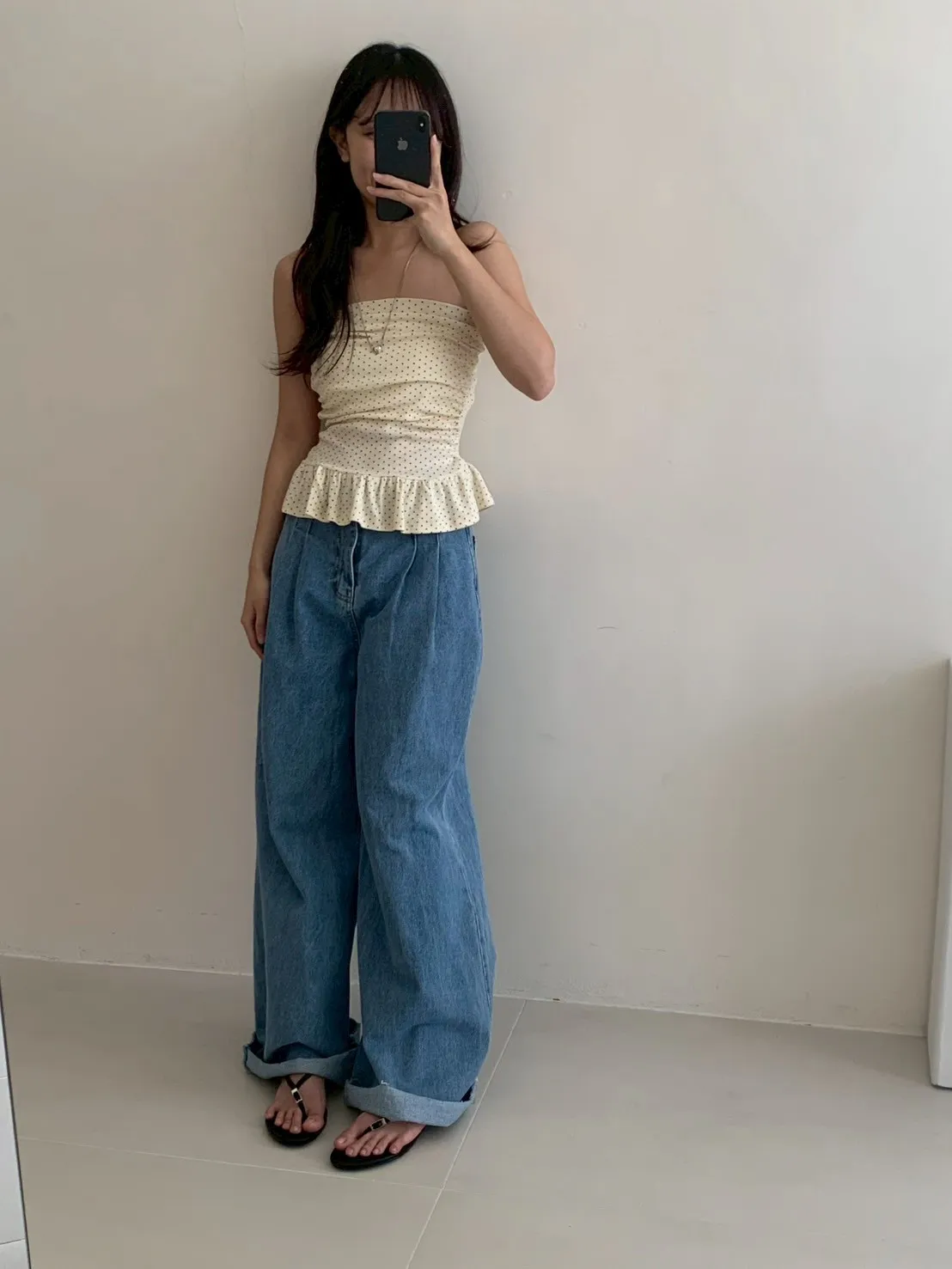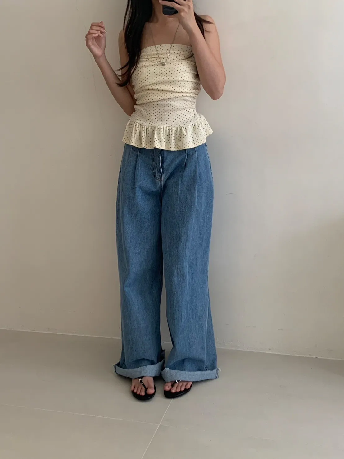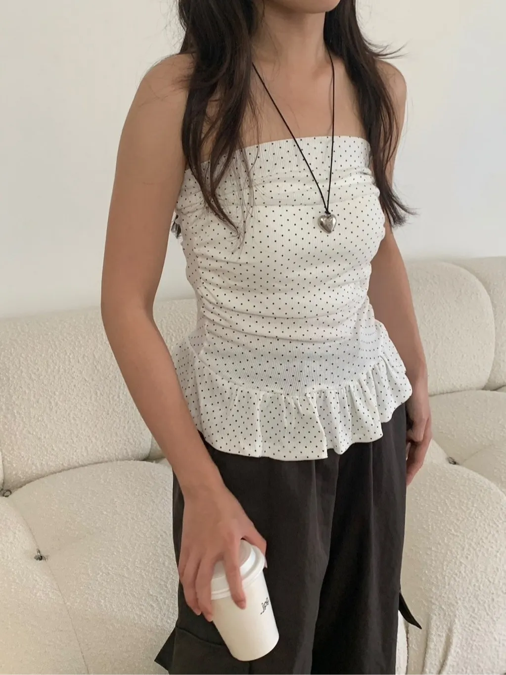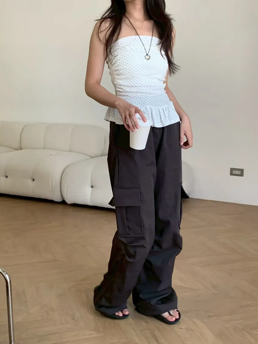 夏日指南點點抓皺平口上衣