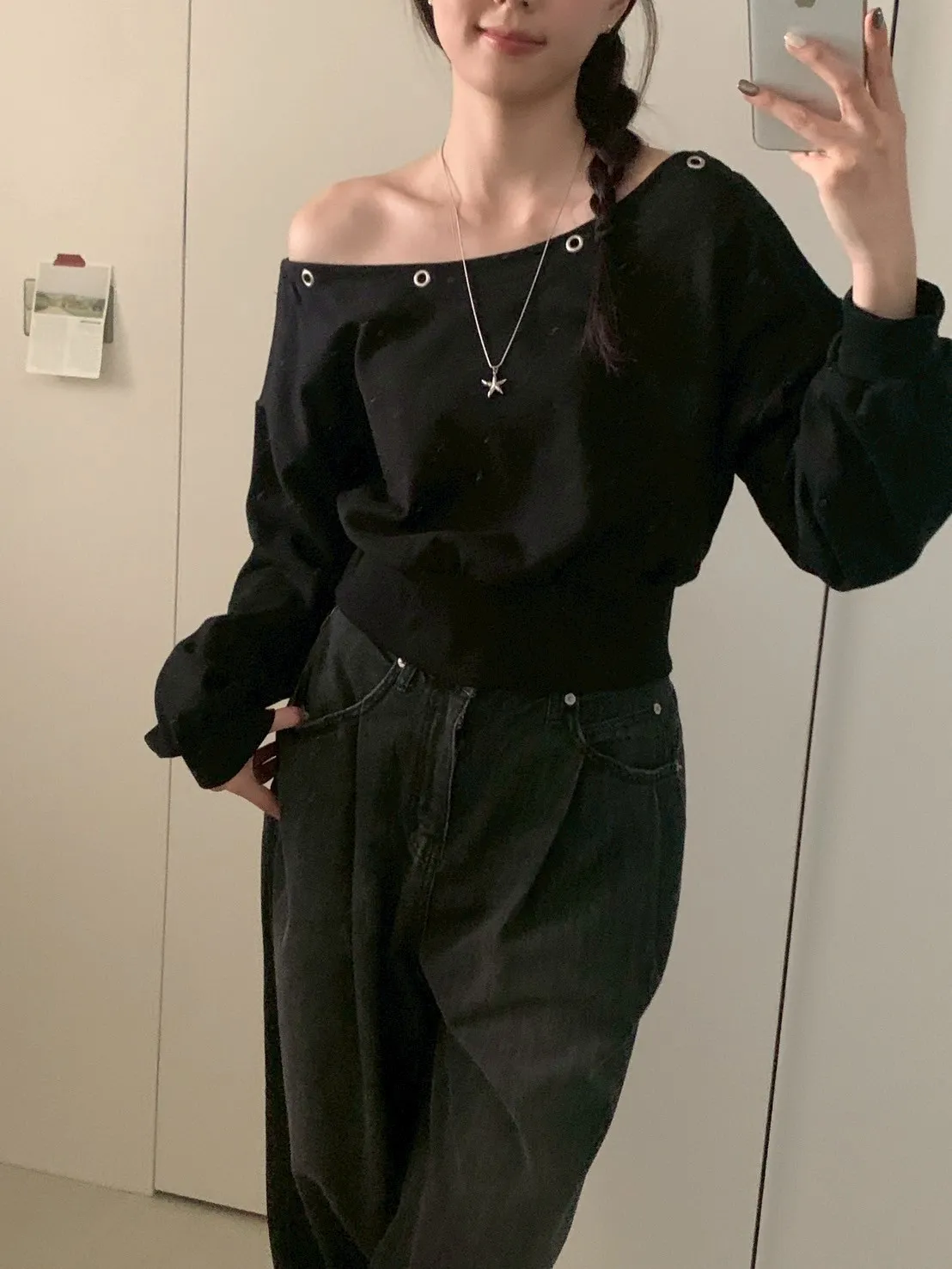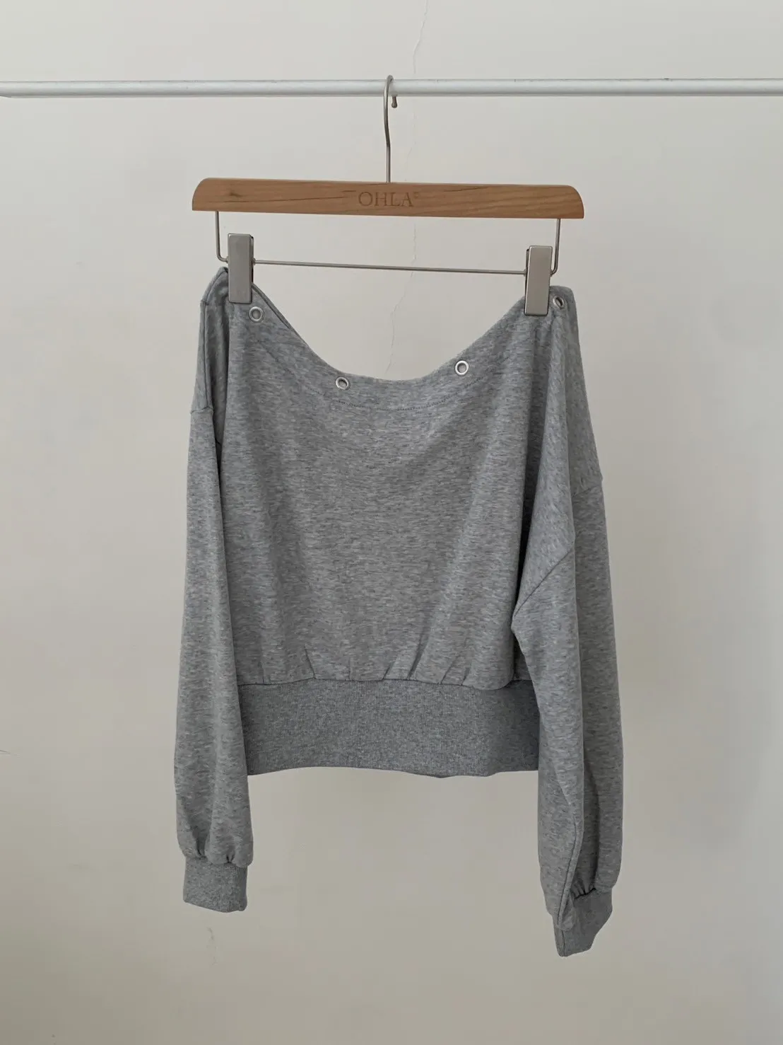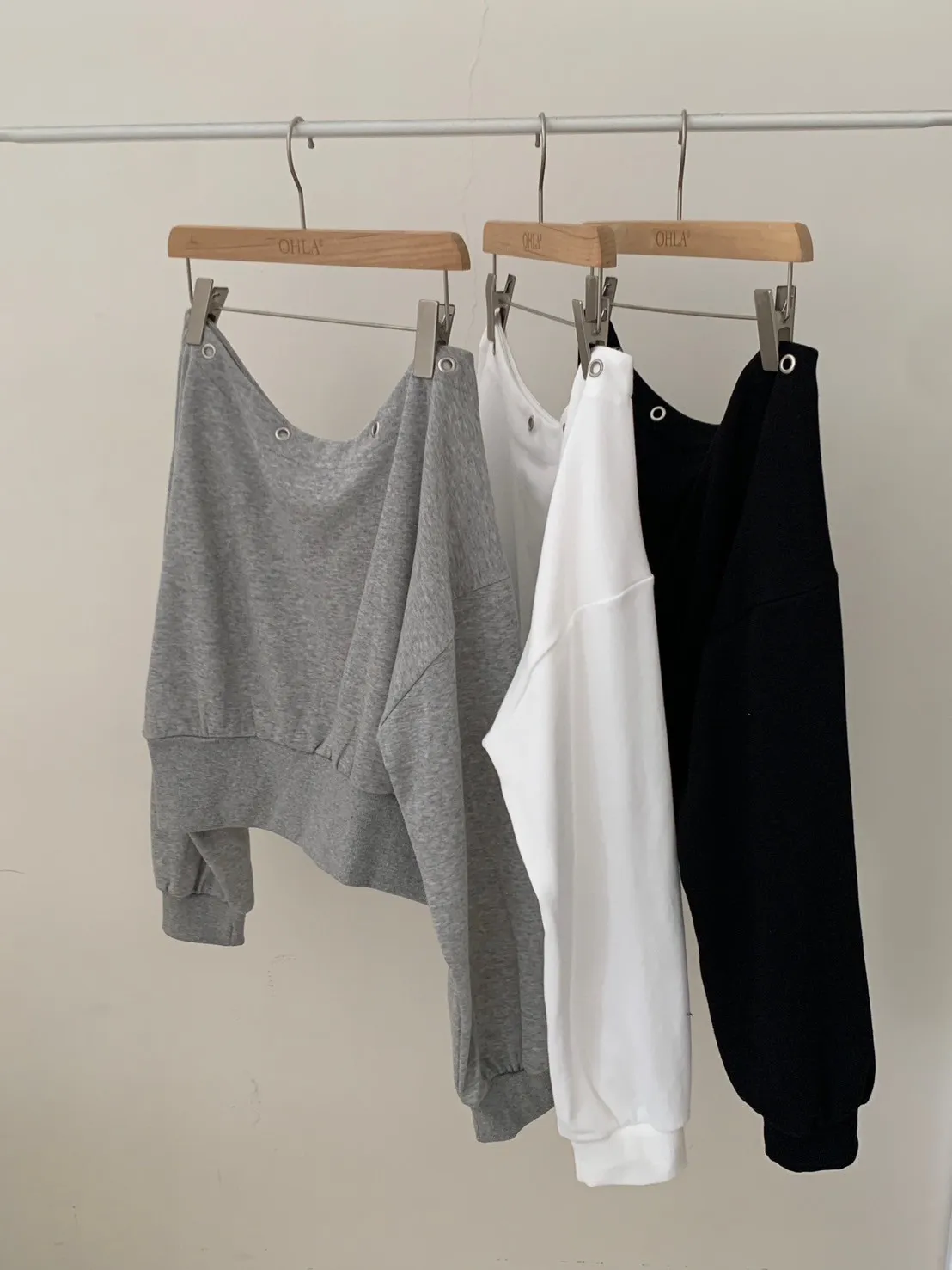 秋日顏值斜肩鉚釘短版棉T