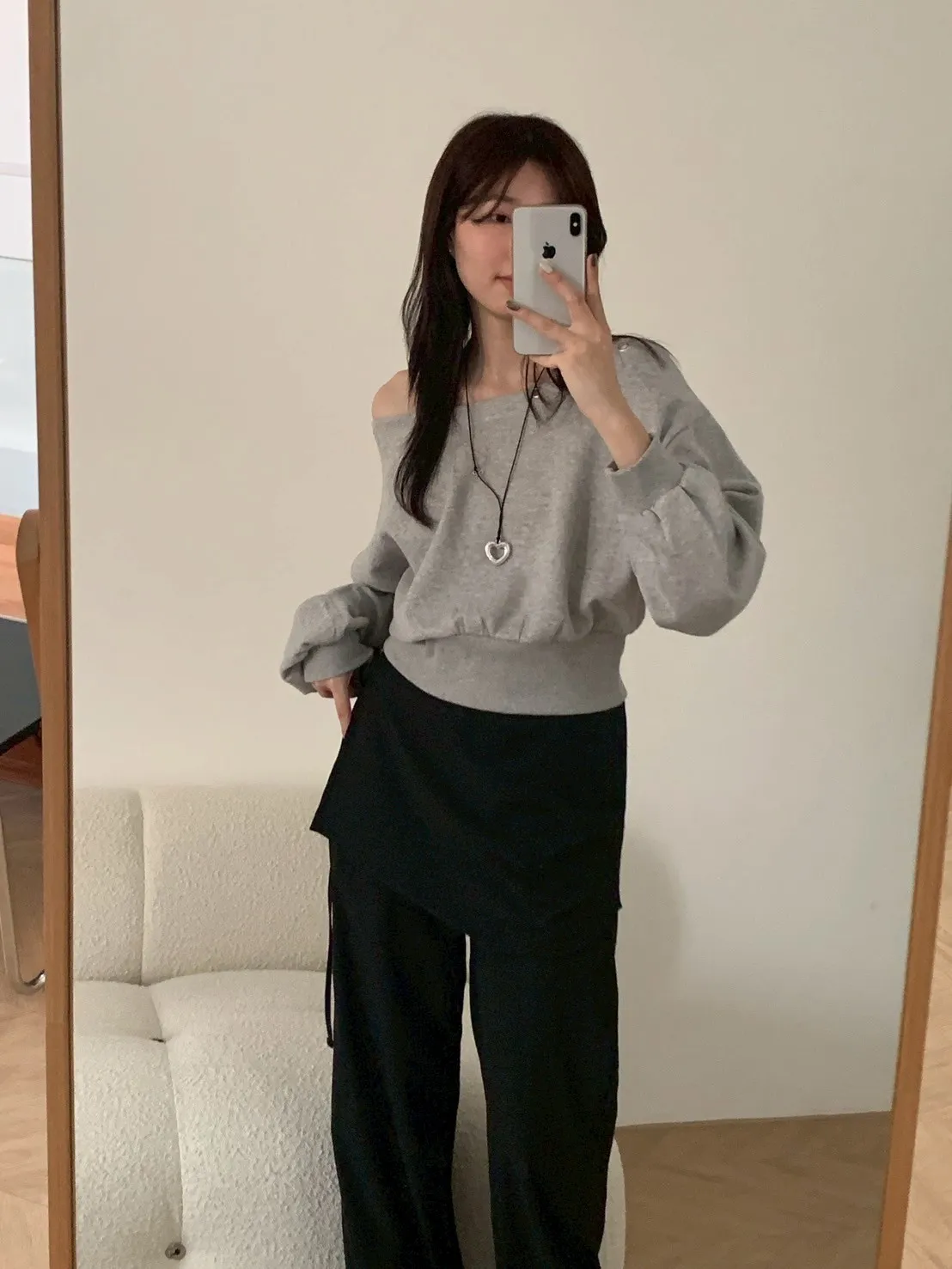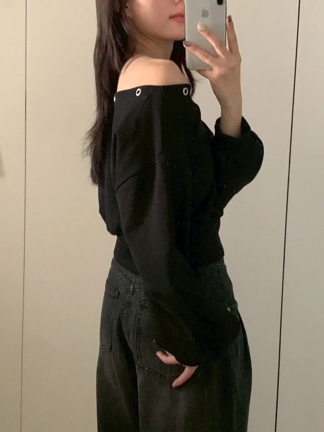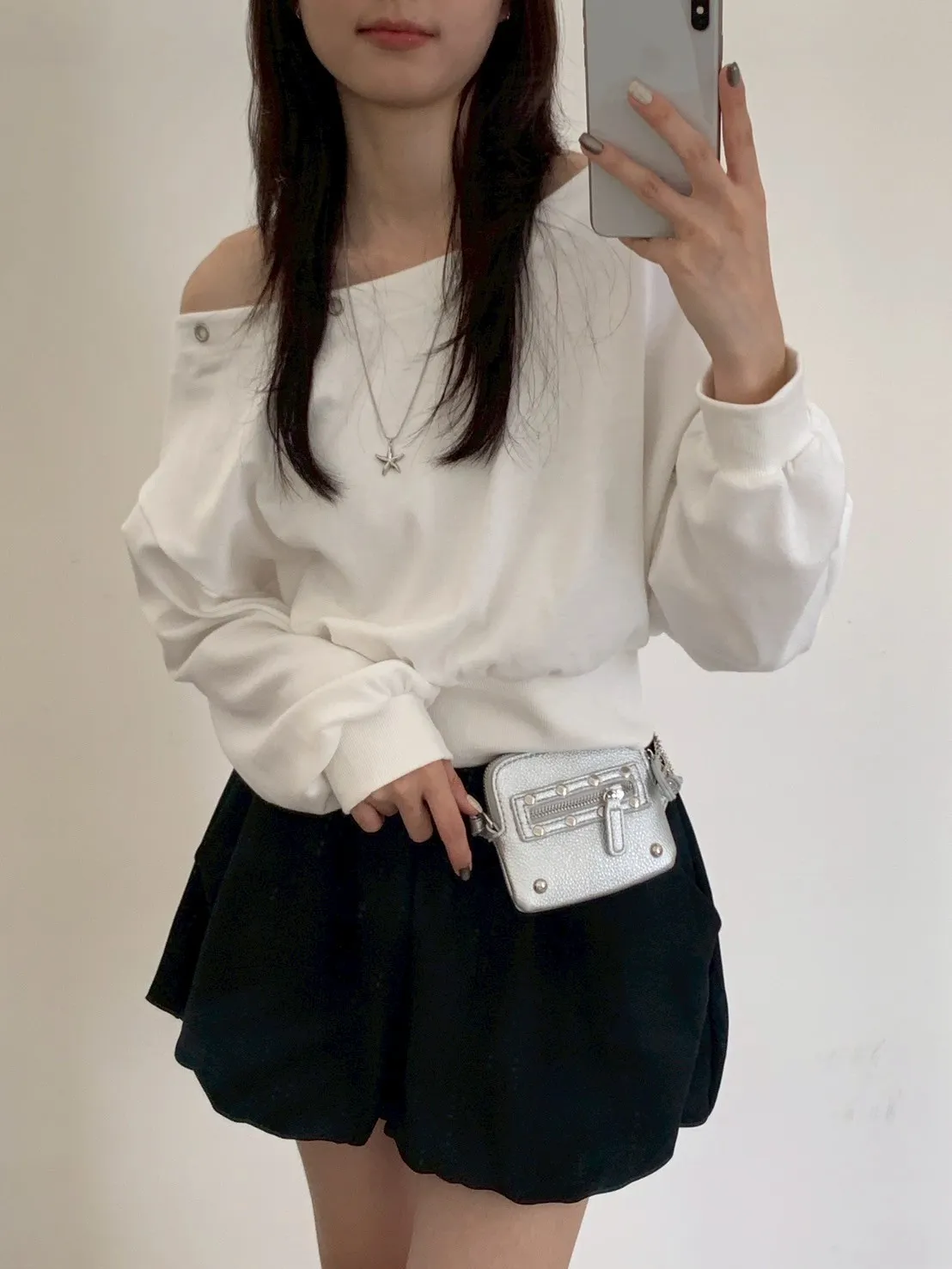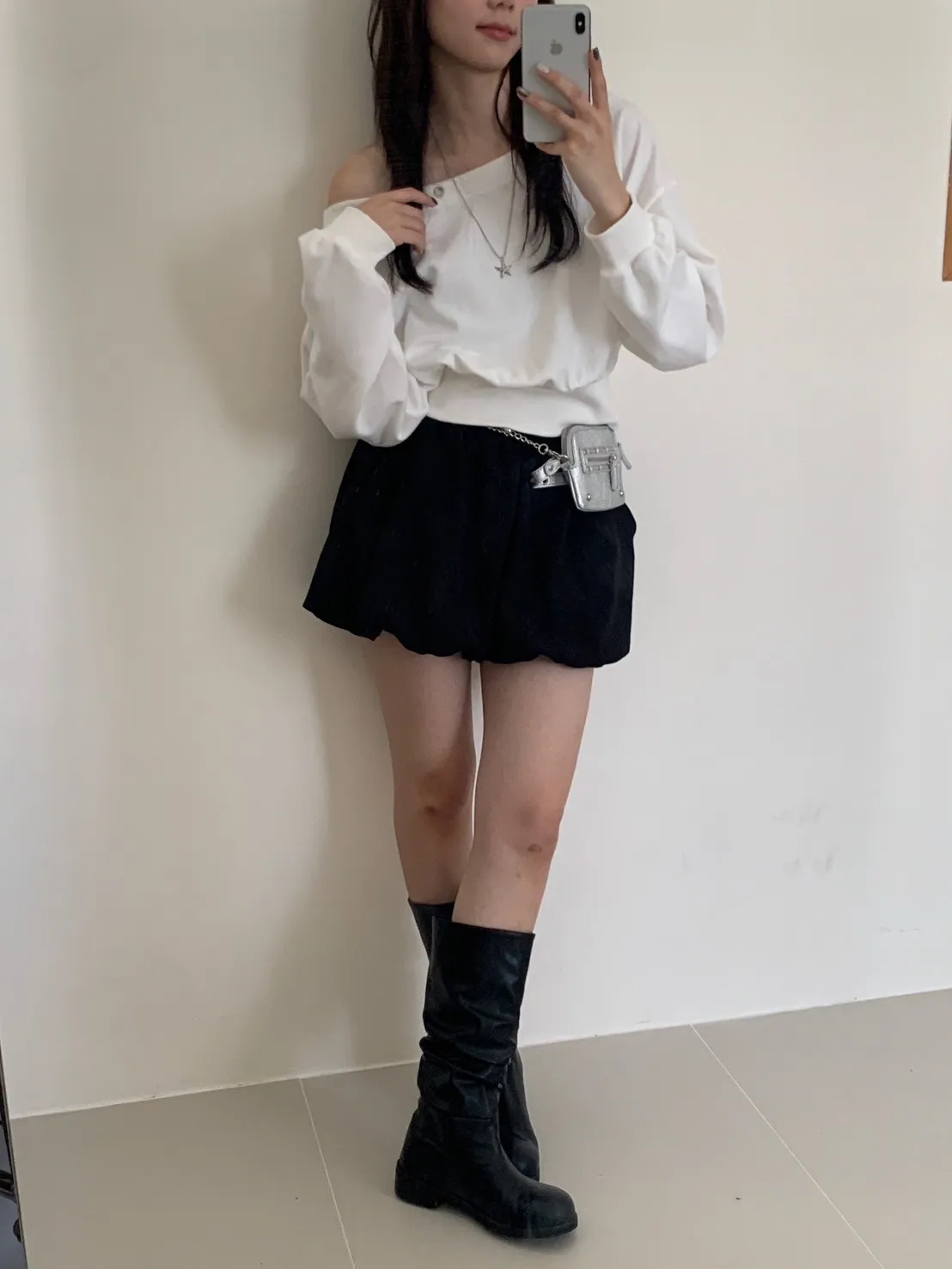 秋日顏值斜肩鉚釘短版棉T