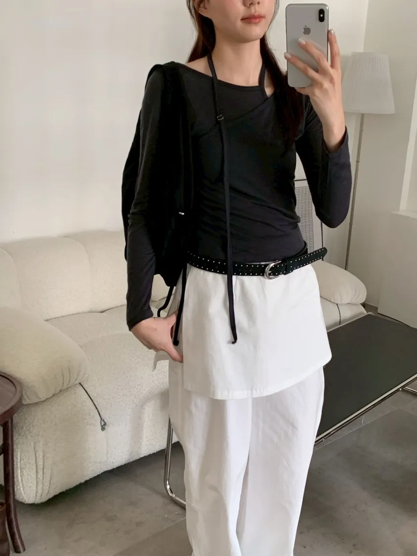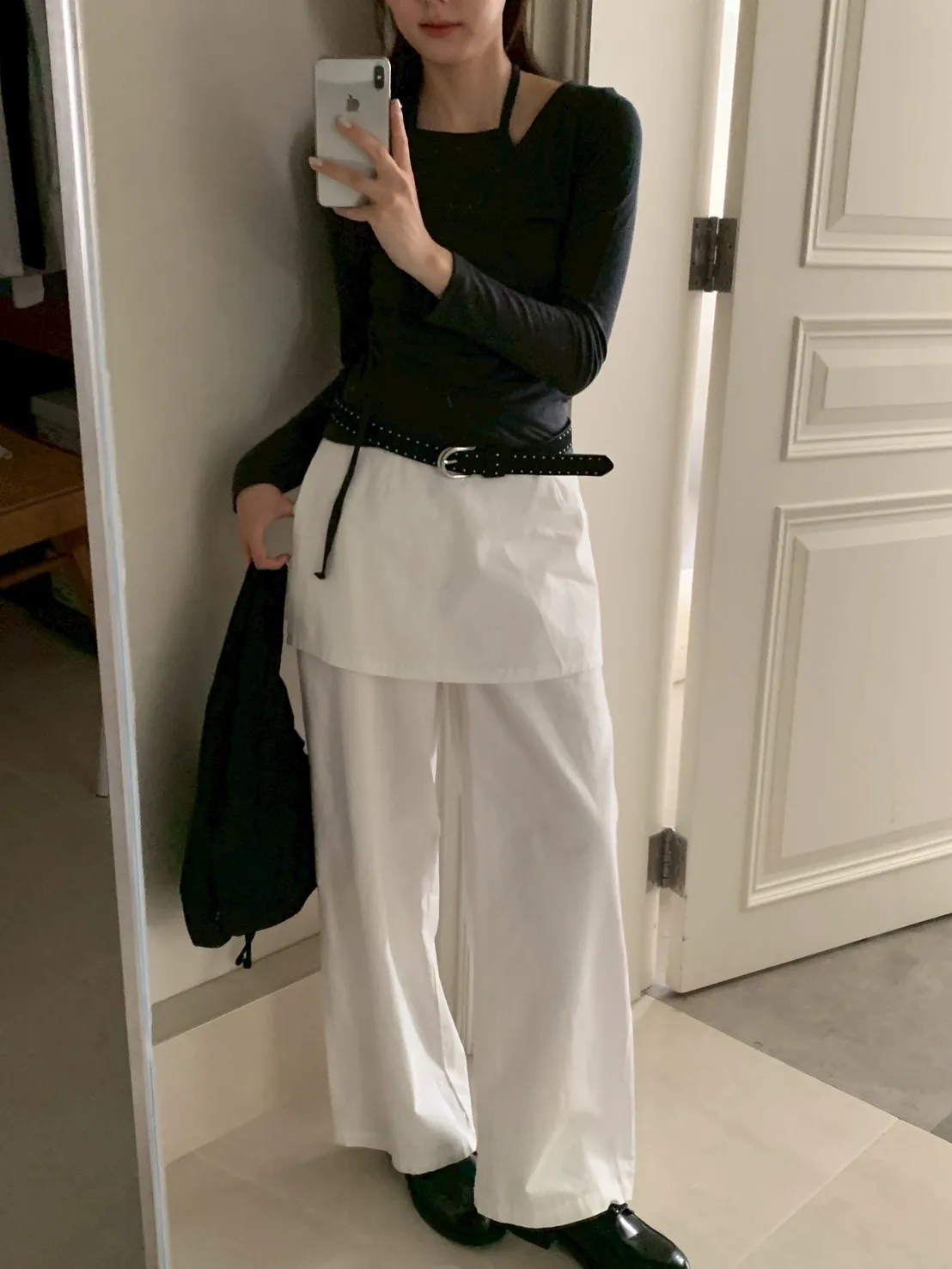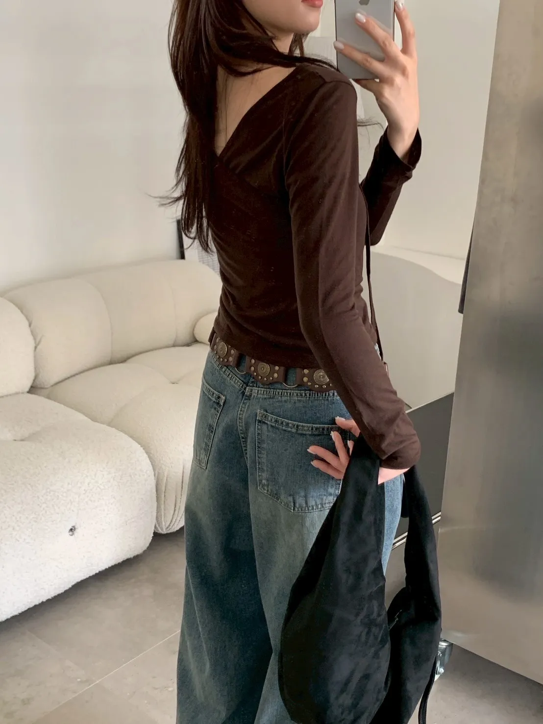 復古牛仔褲 附格紋絲巾掛包腰帶