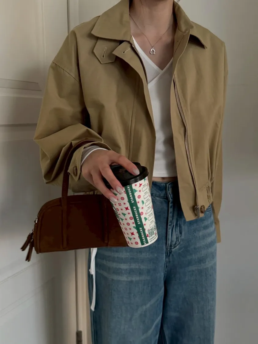 秋日溫柔蜜桃絨拉鍊小包 附背帶
