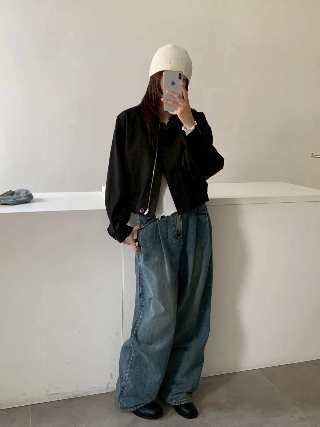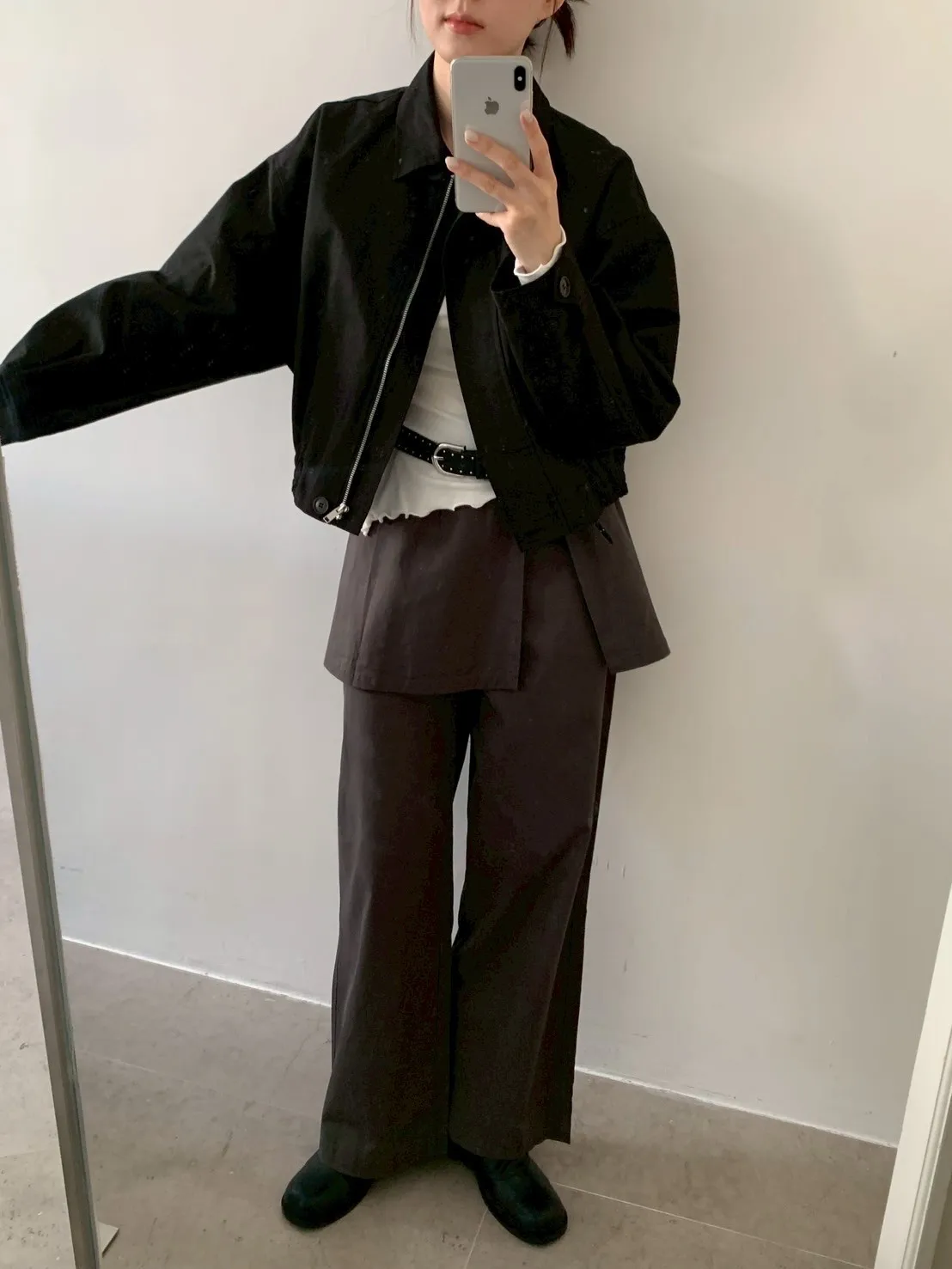 復古牛仔褲 附格紋絲巾掛包腰帶