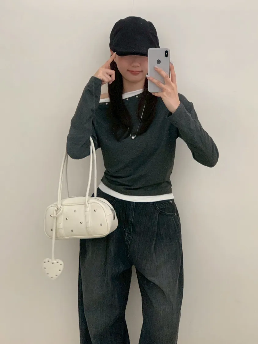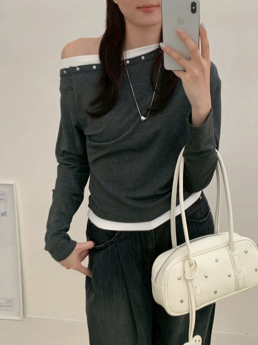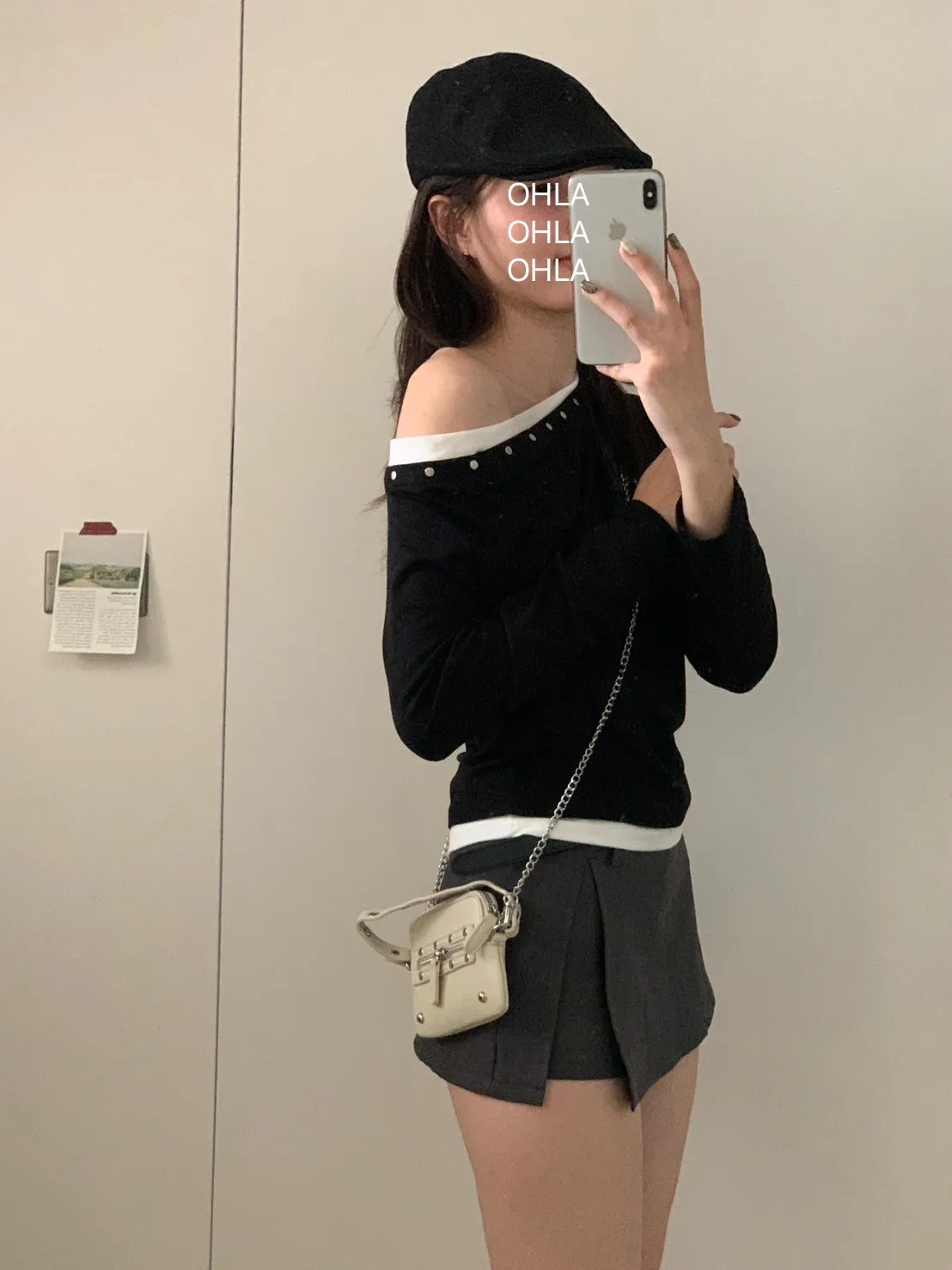 目光焦點鉚釘提把荔枝皮小包(附鏈條)