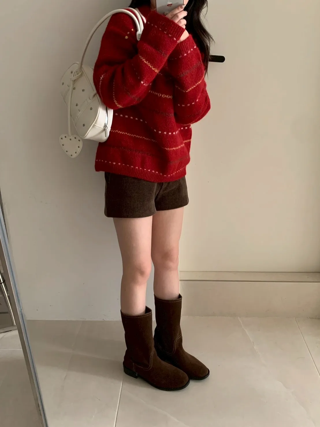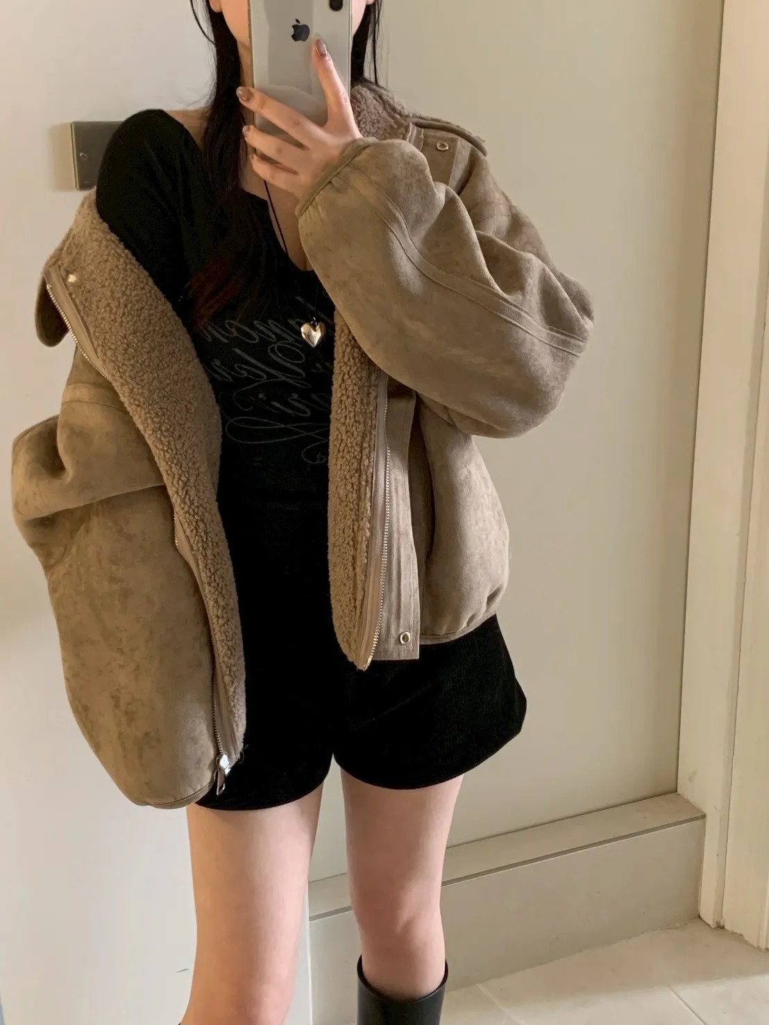 咖啡歐蕾假口袋燈芯絨短褲