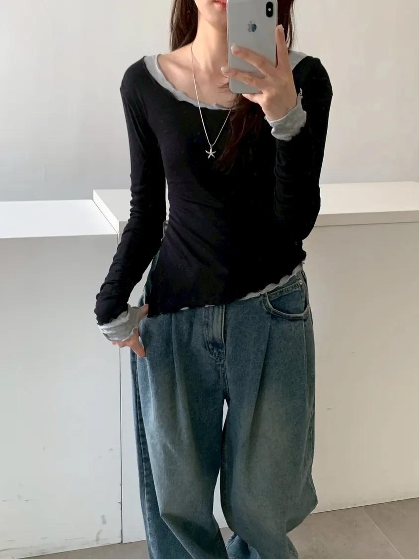 氛圍感拉滿繞脖背心+斜肩上衣(SET)