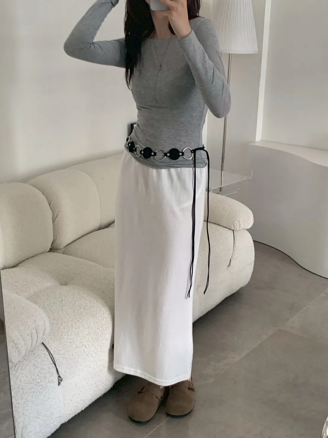 凸顯蠻腰麂皮圓環腰帶