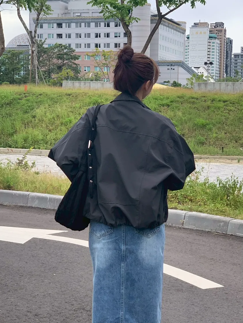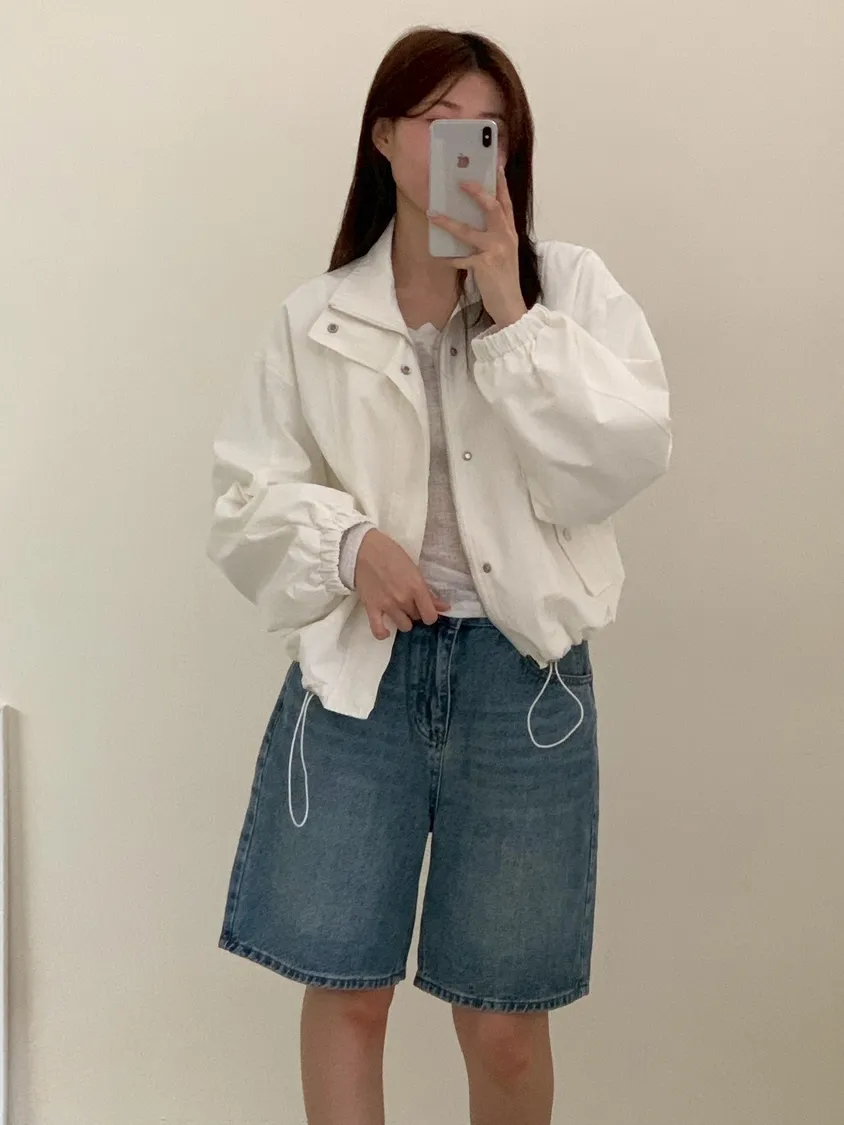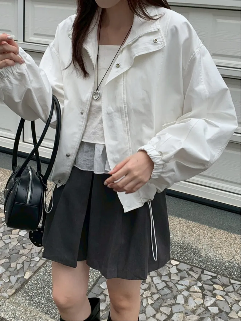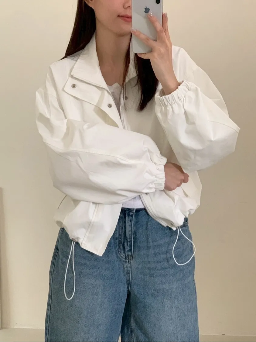 清爽滿分立領澎袖尼龍外套
