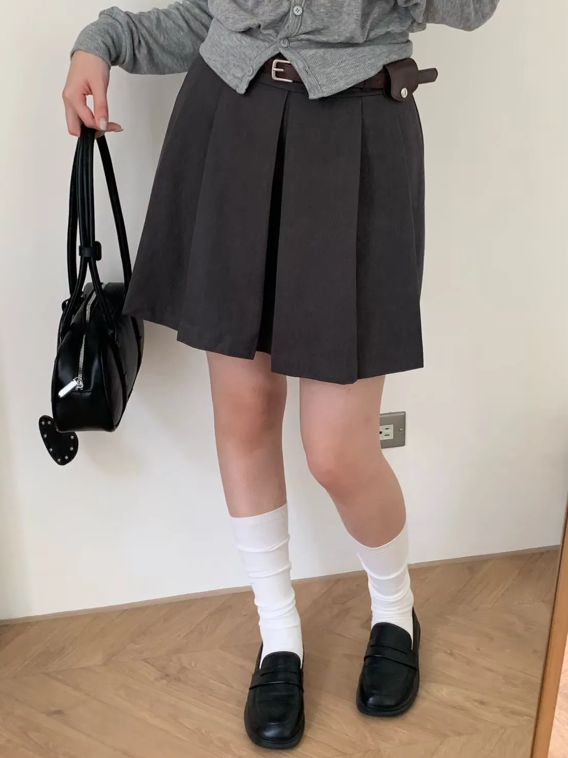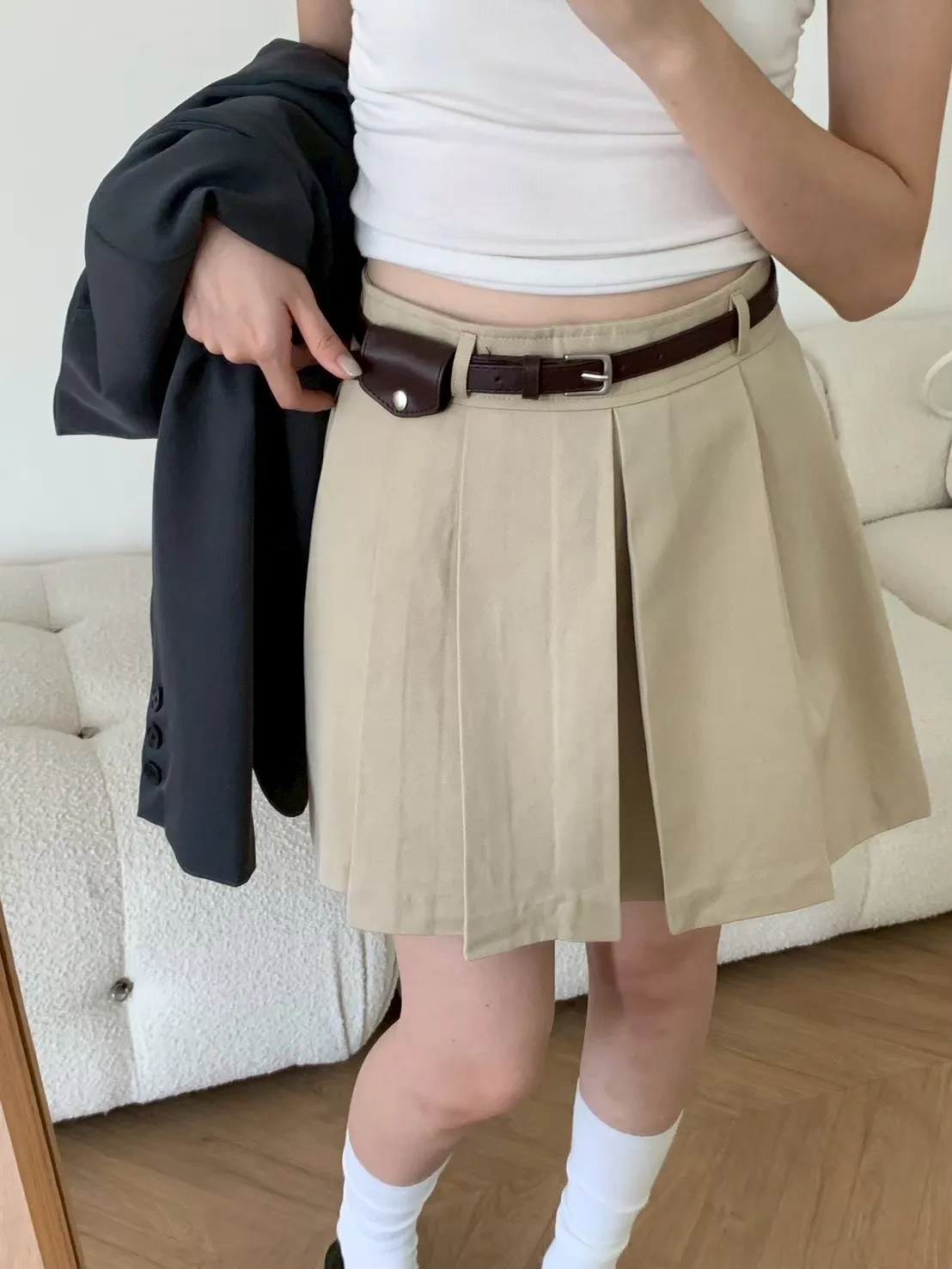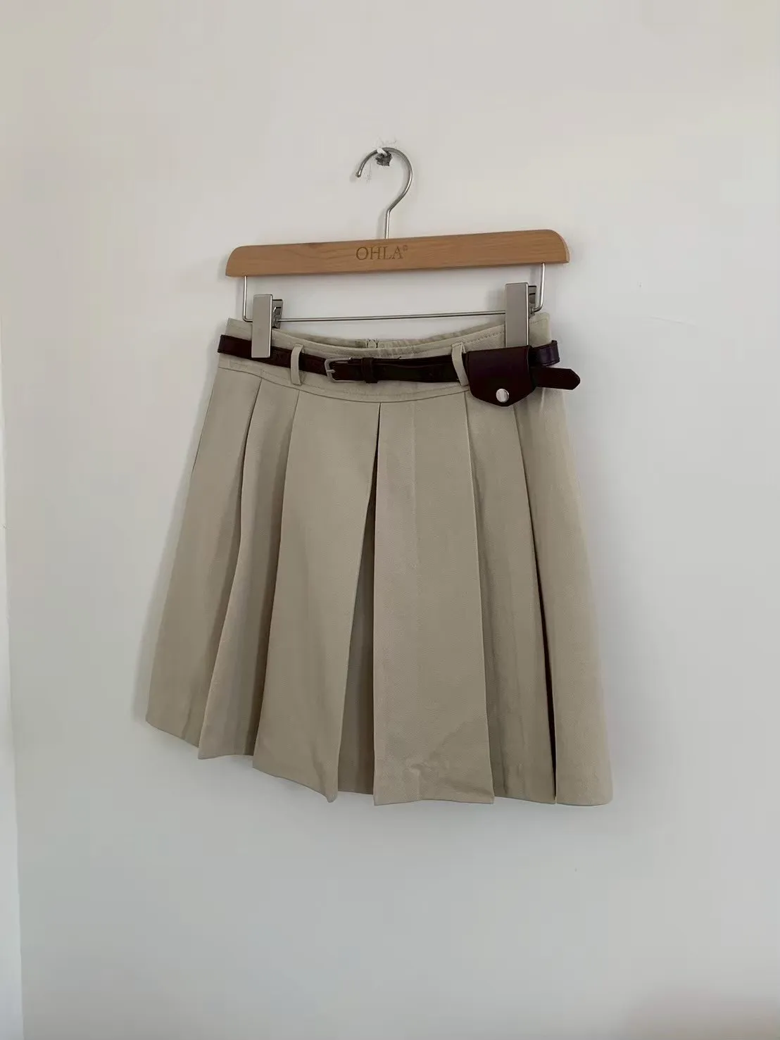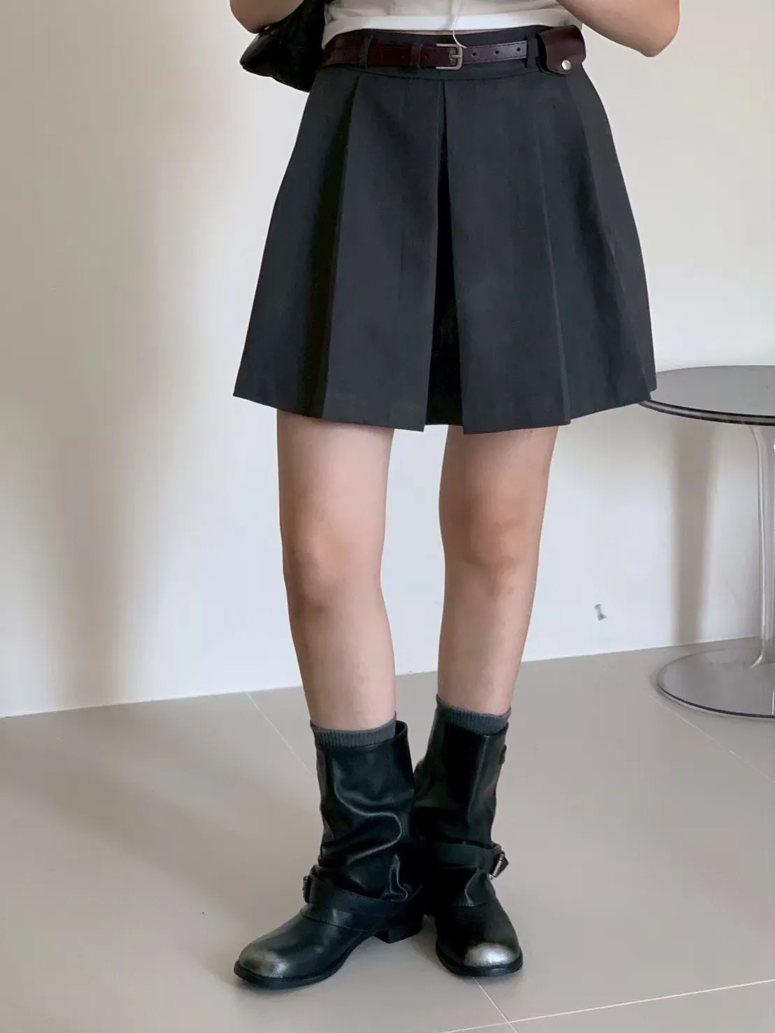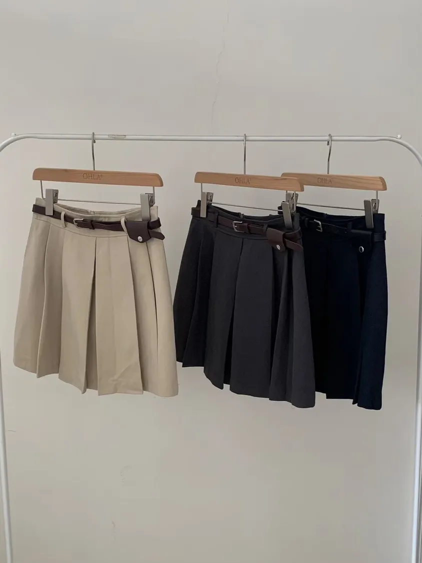 巴黎邂逅前百褶短褲裙 附裝飾腰帶