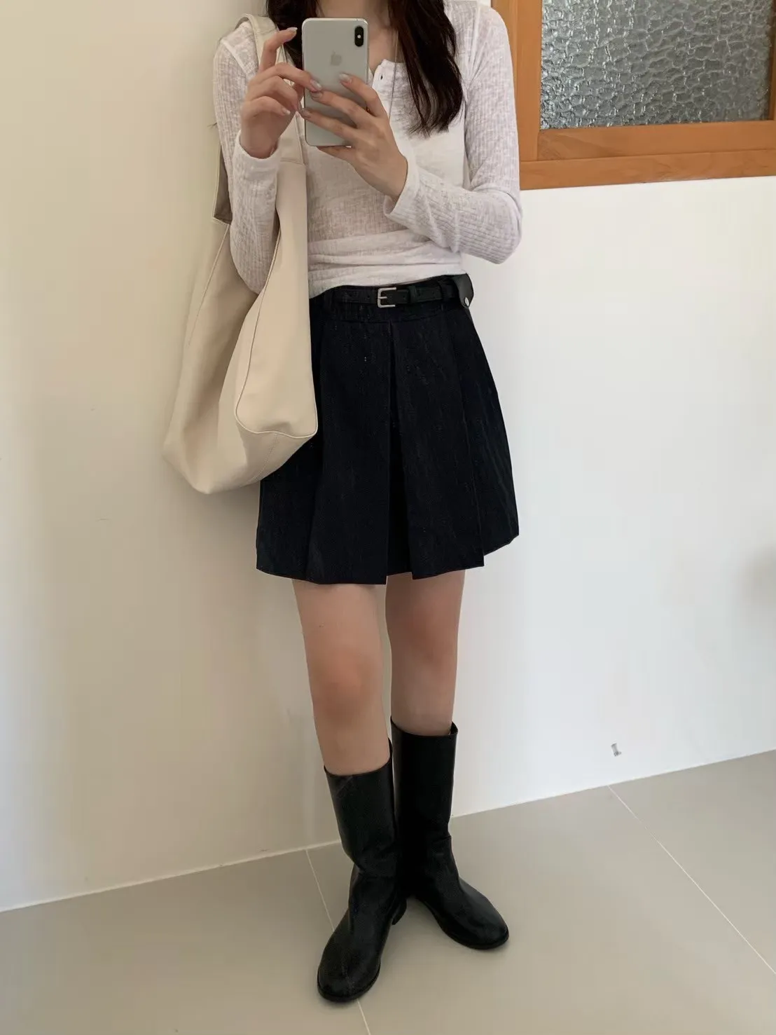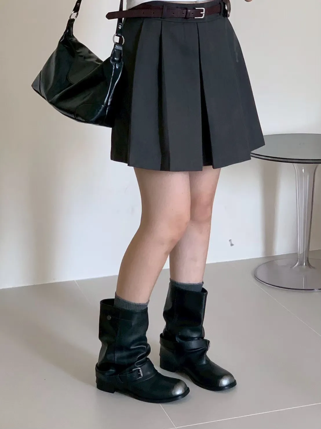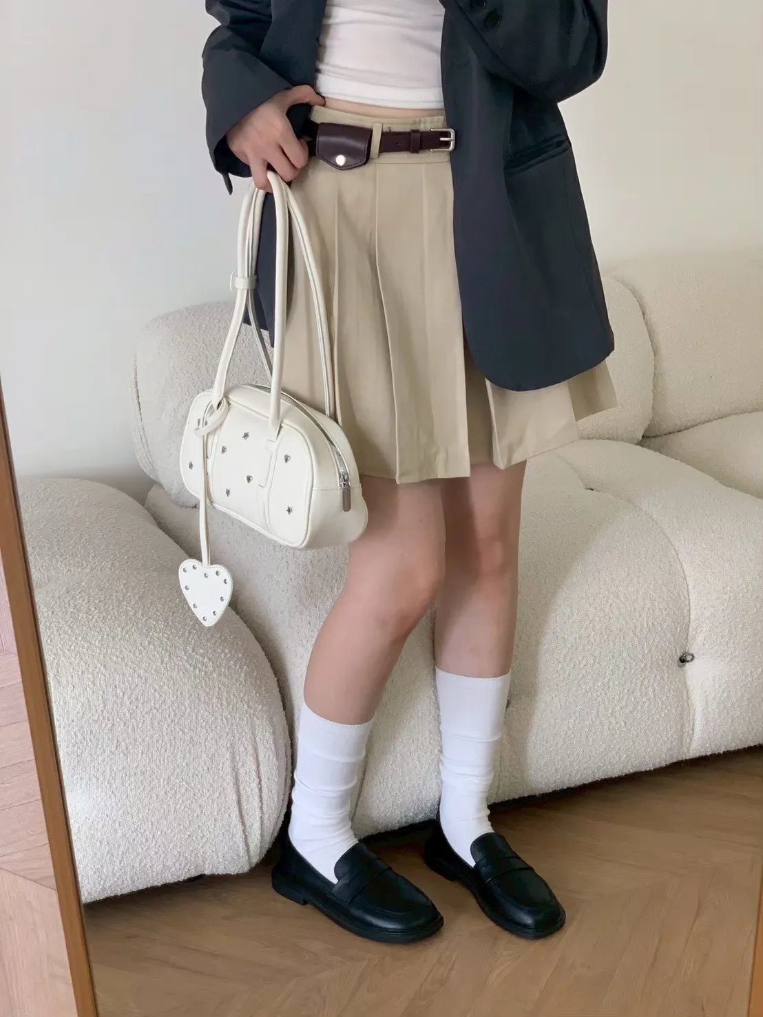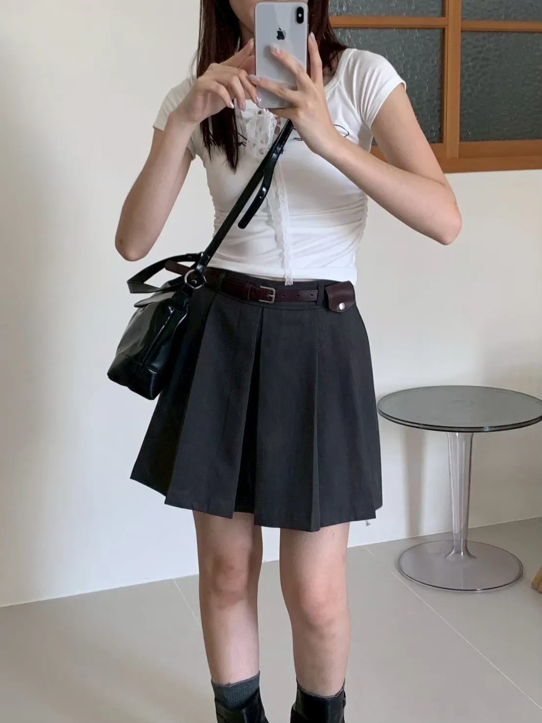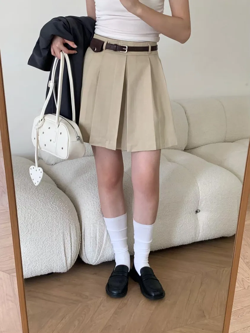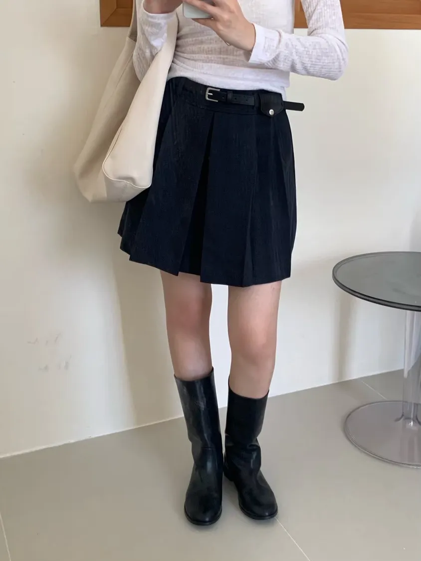 巴黎邂逅前百褶短褲裙 附裝飾腰帶