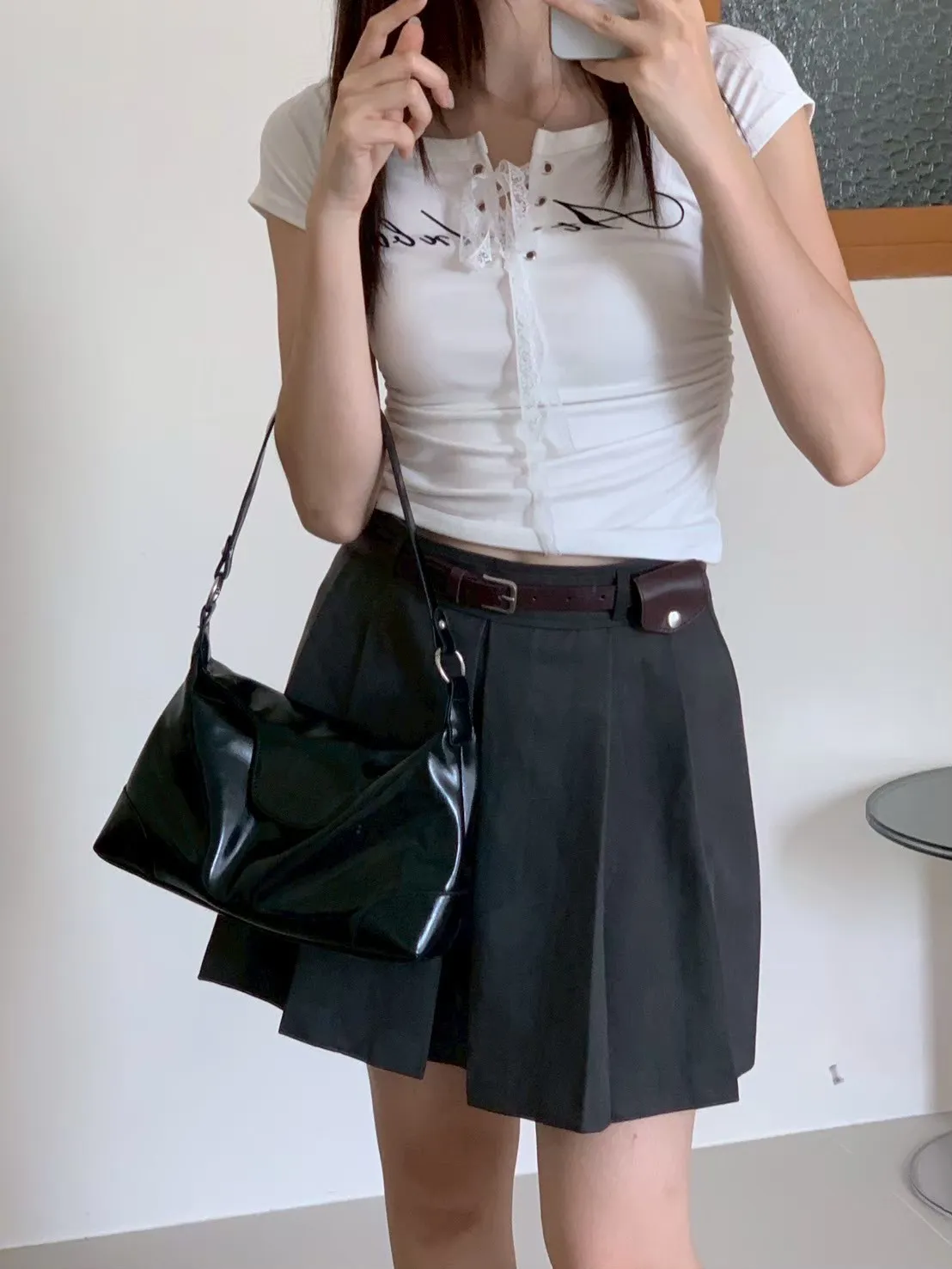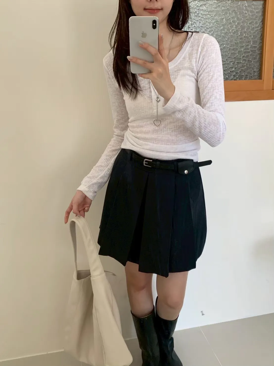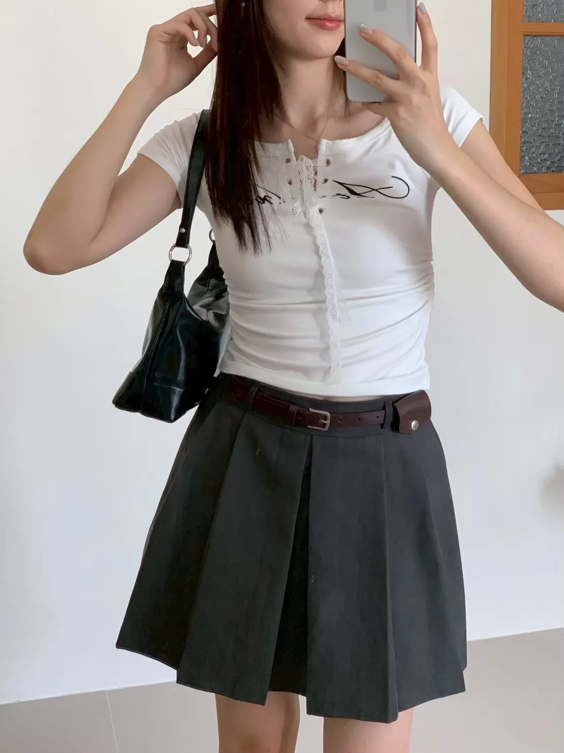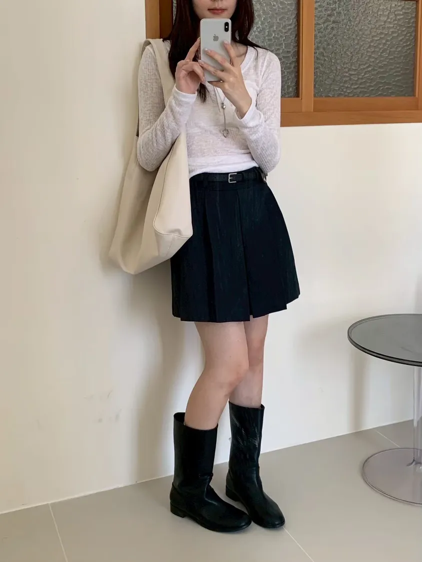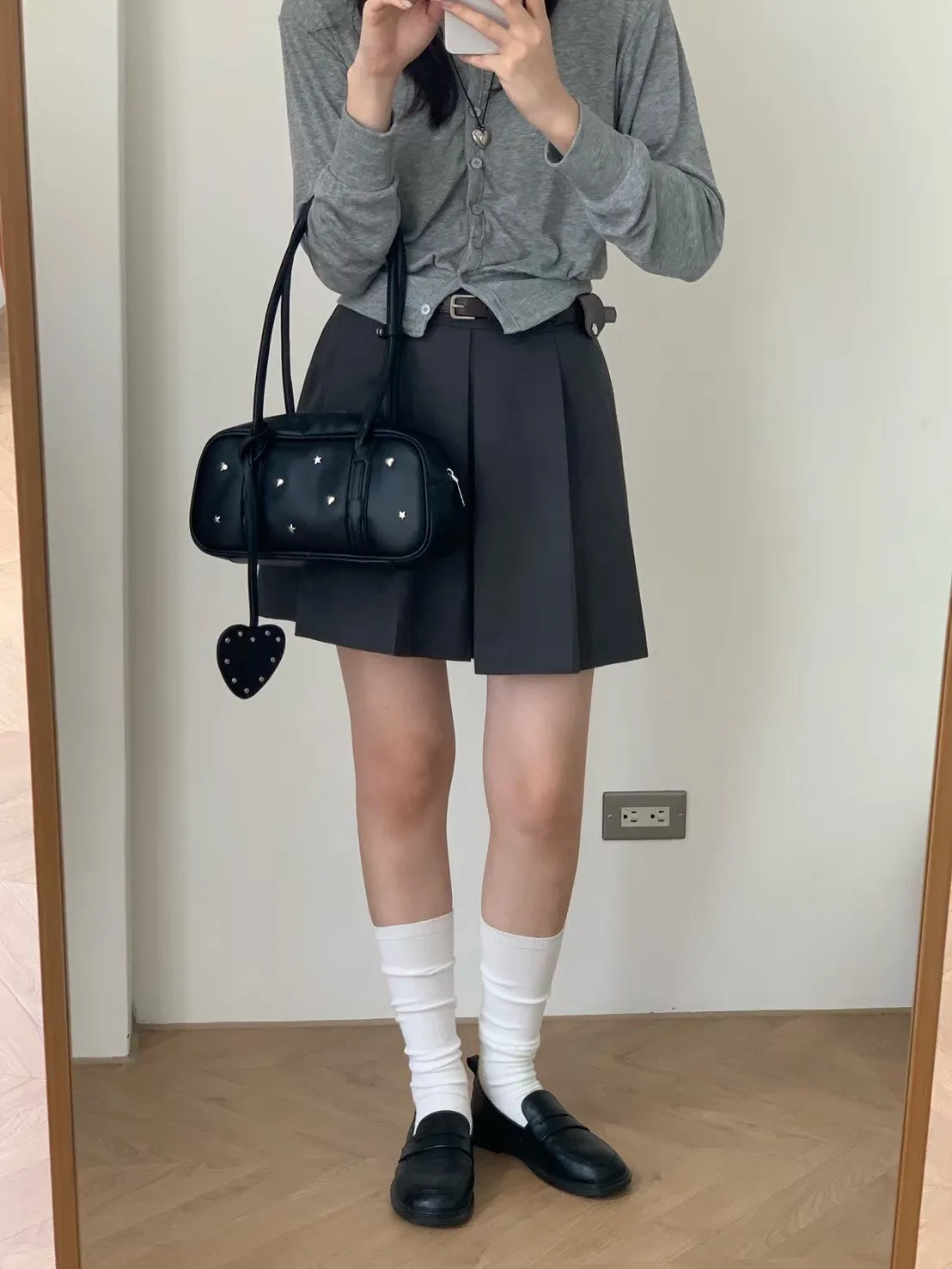 巴黎邂逅前百褶短褲裙 附裝飾腰帶