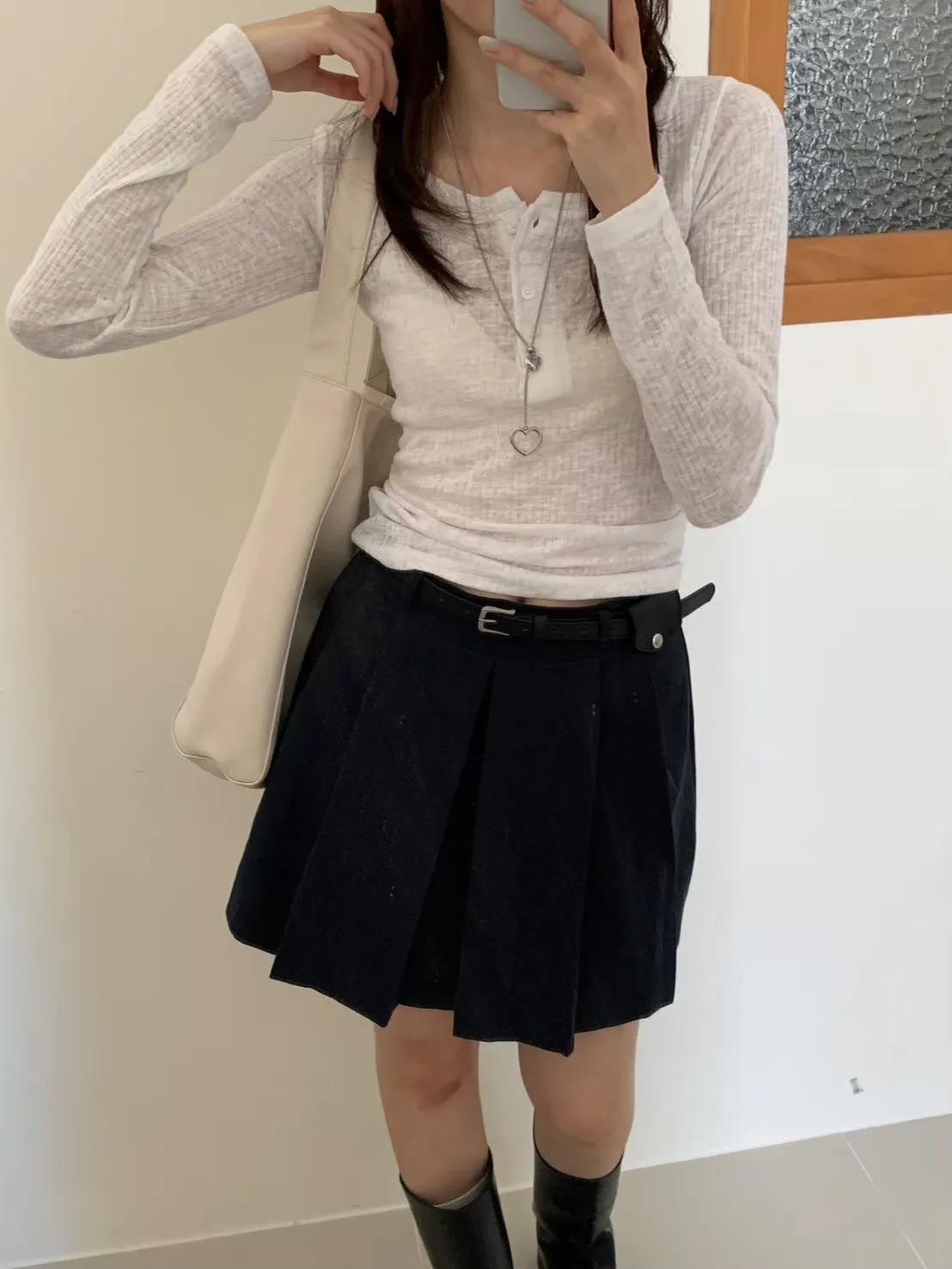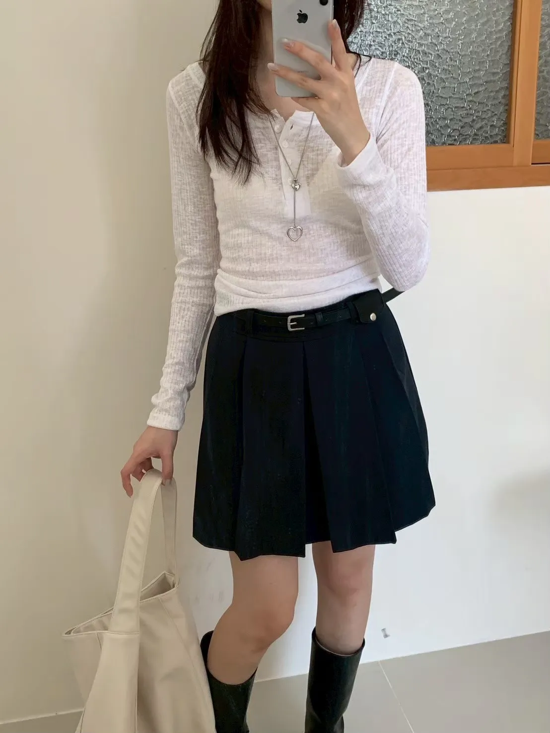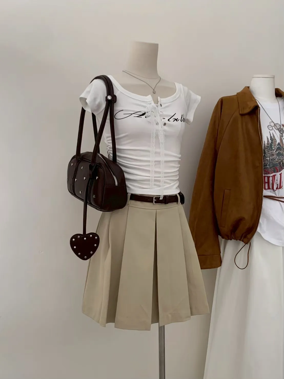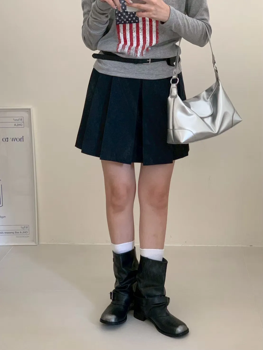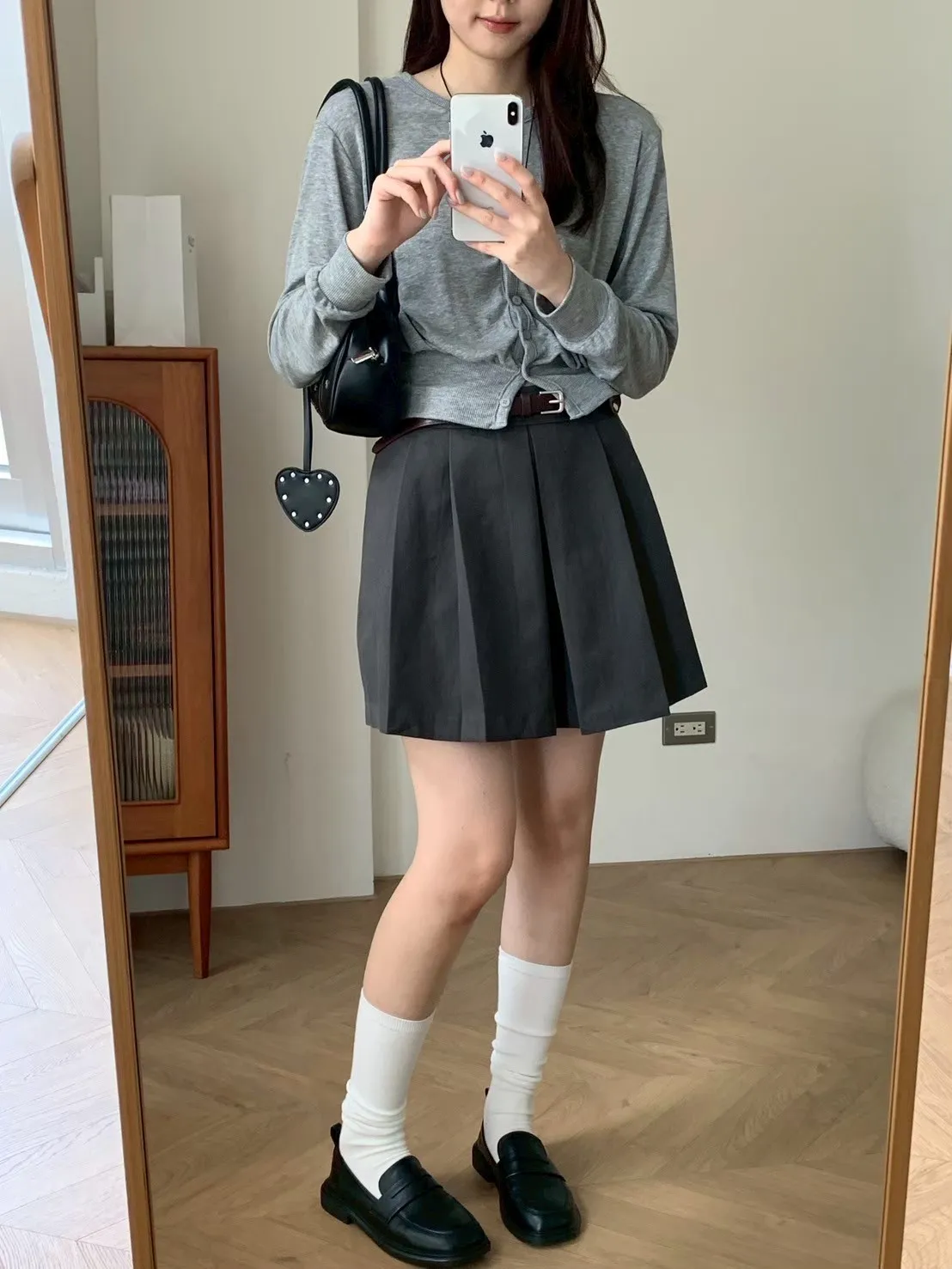 巴黎邂逅前百褶短褲裙 附裝飾腰帶