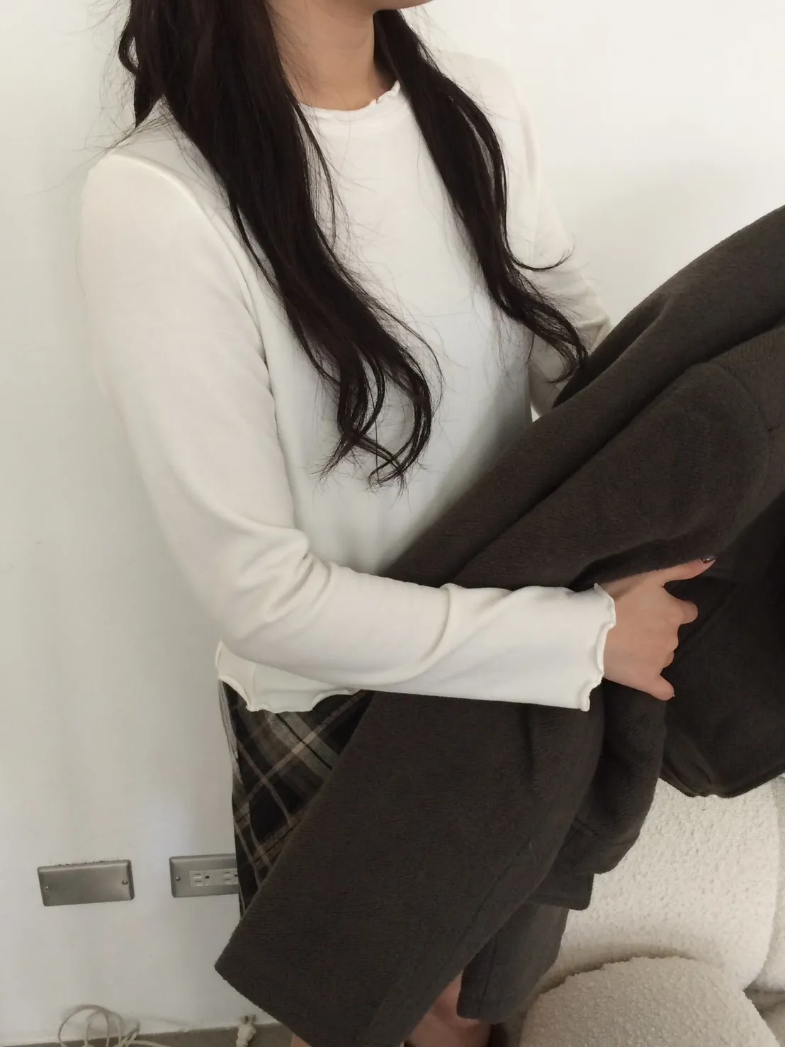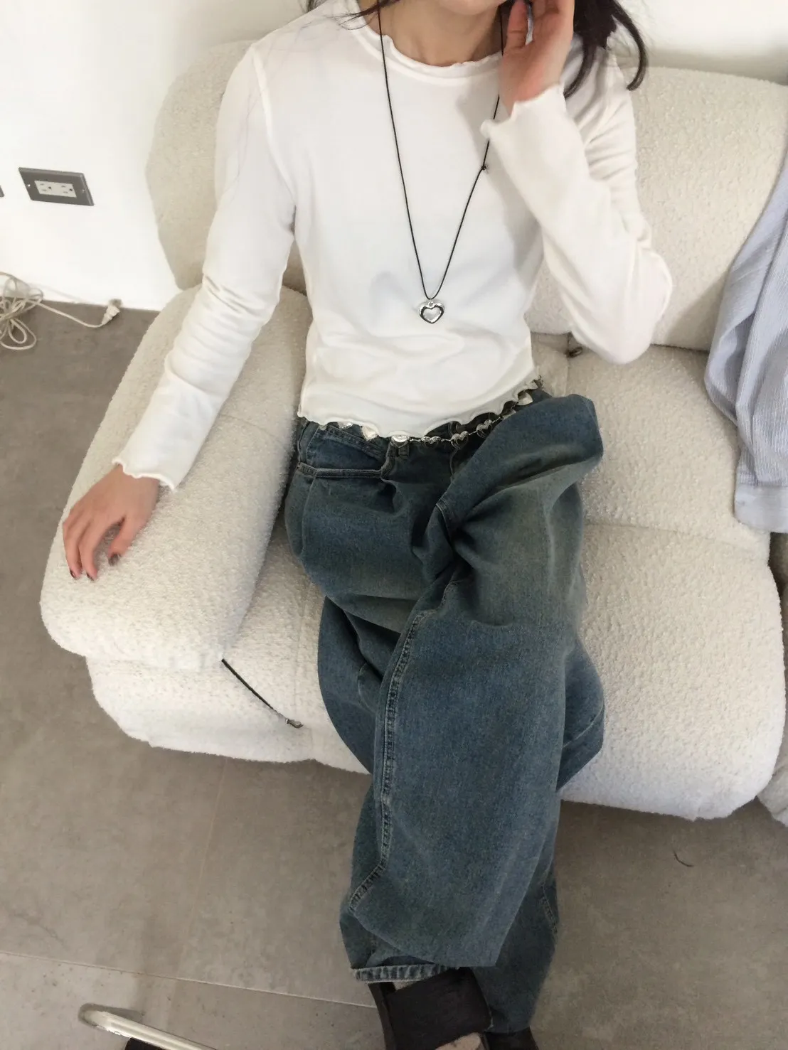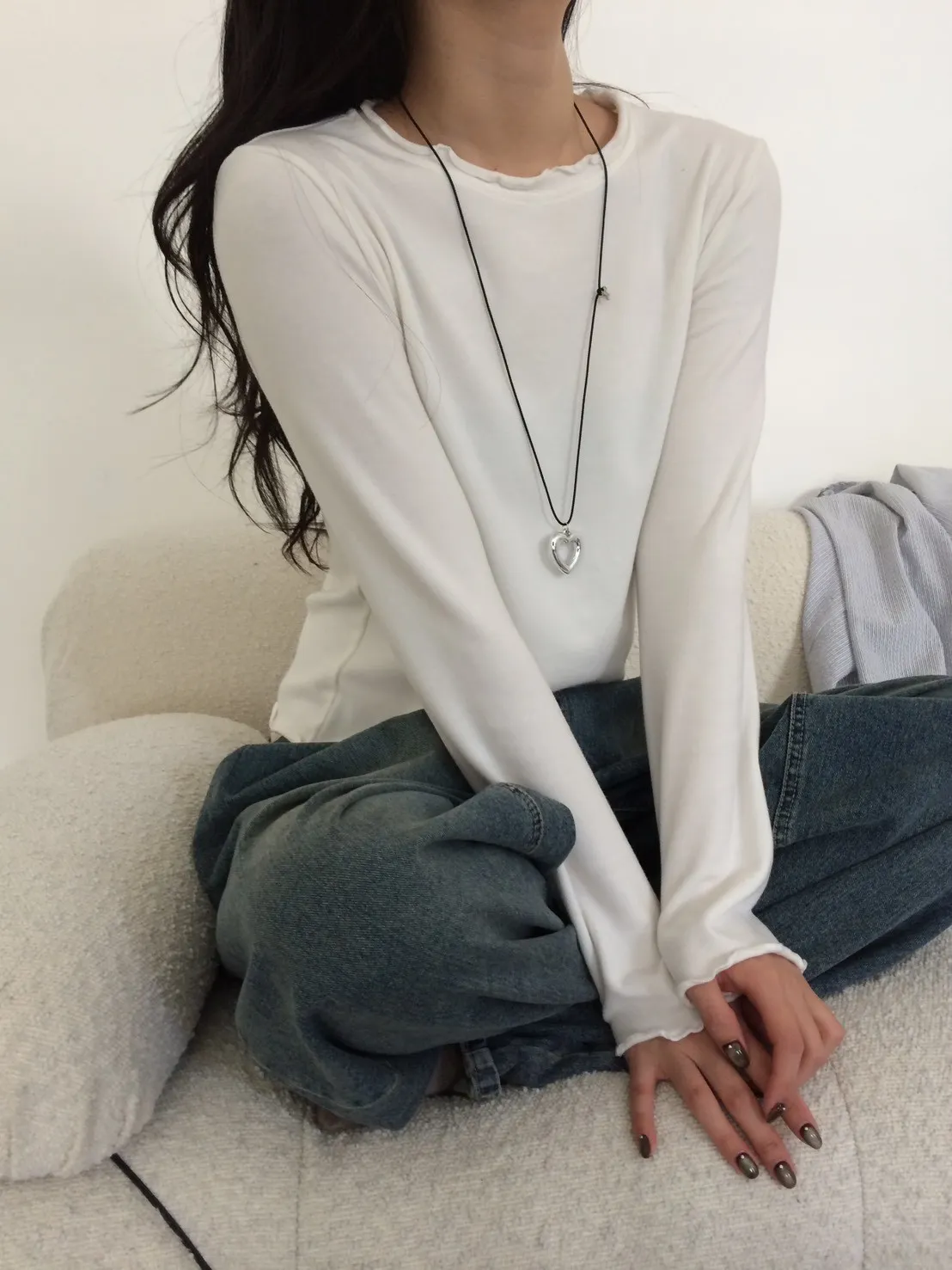 羊咩咩毛絨捲邊磨毛素T