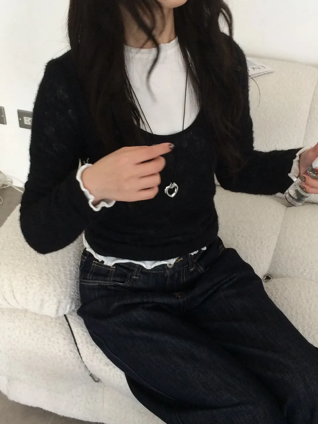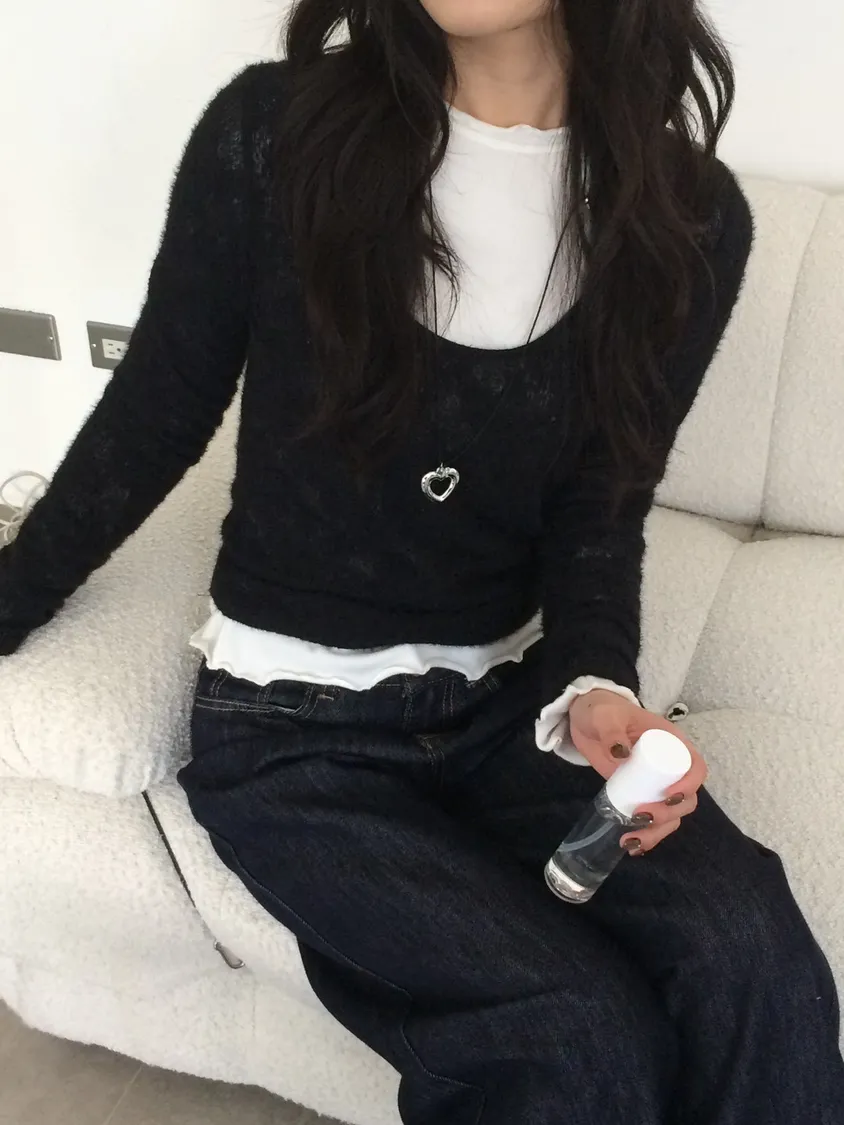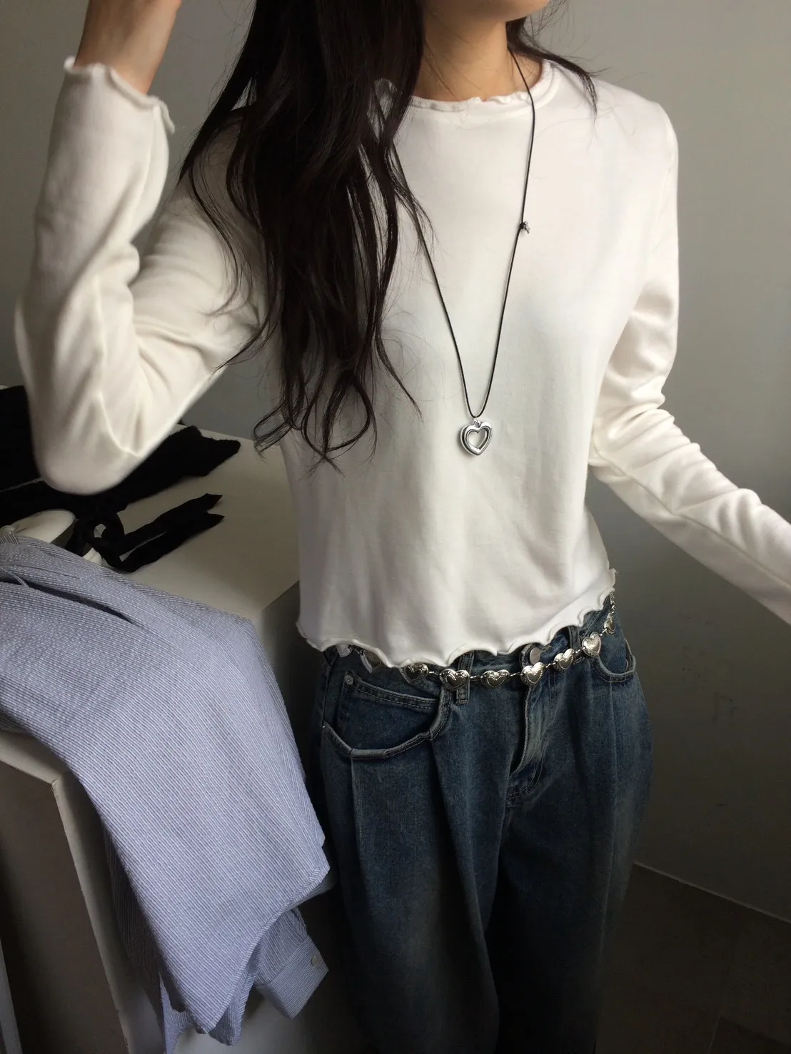 羊咩咩毛絨捲邊磨毛素T