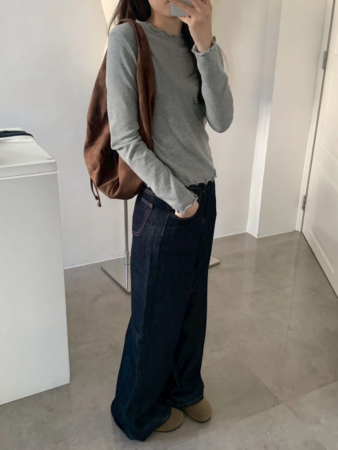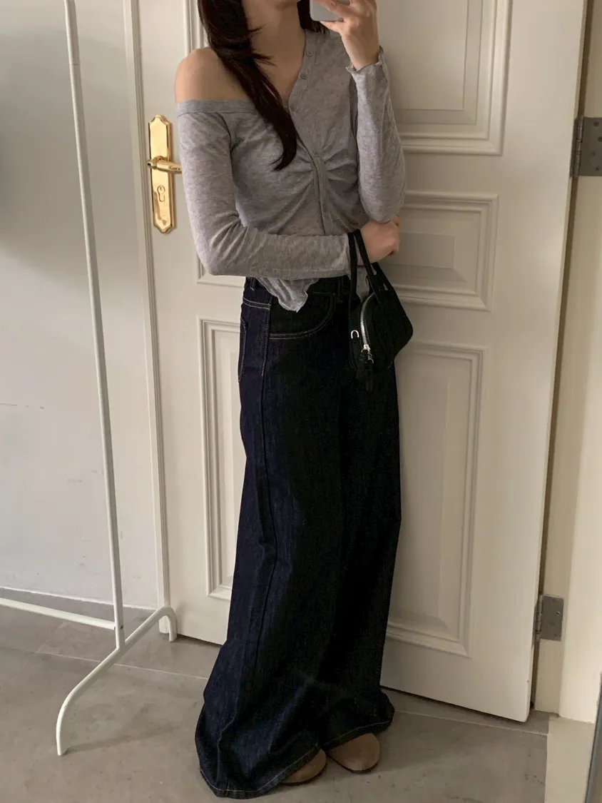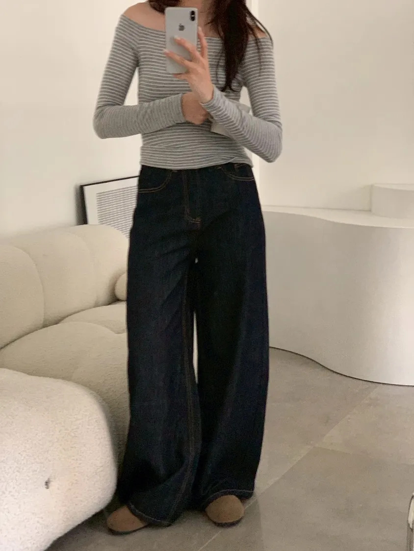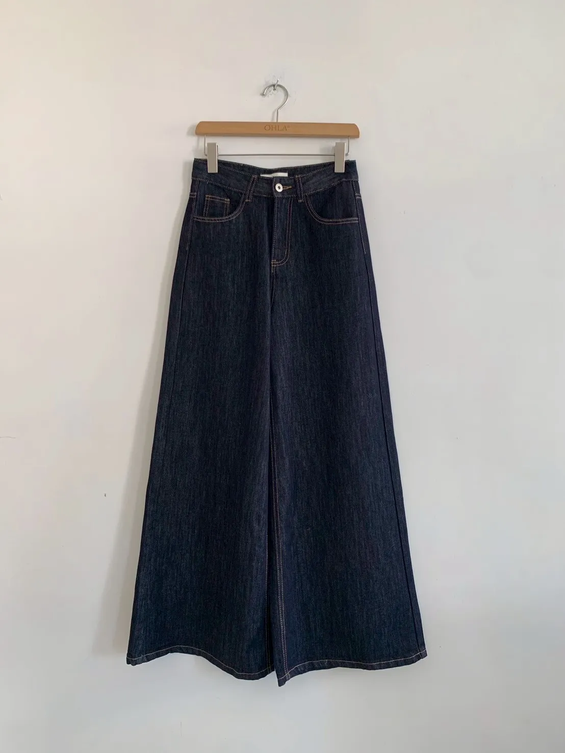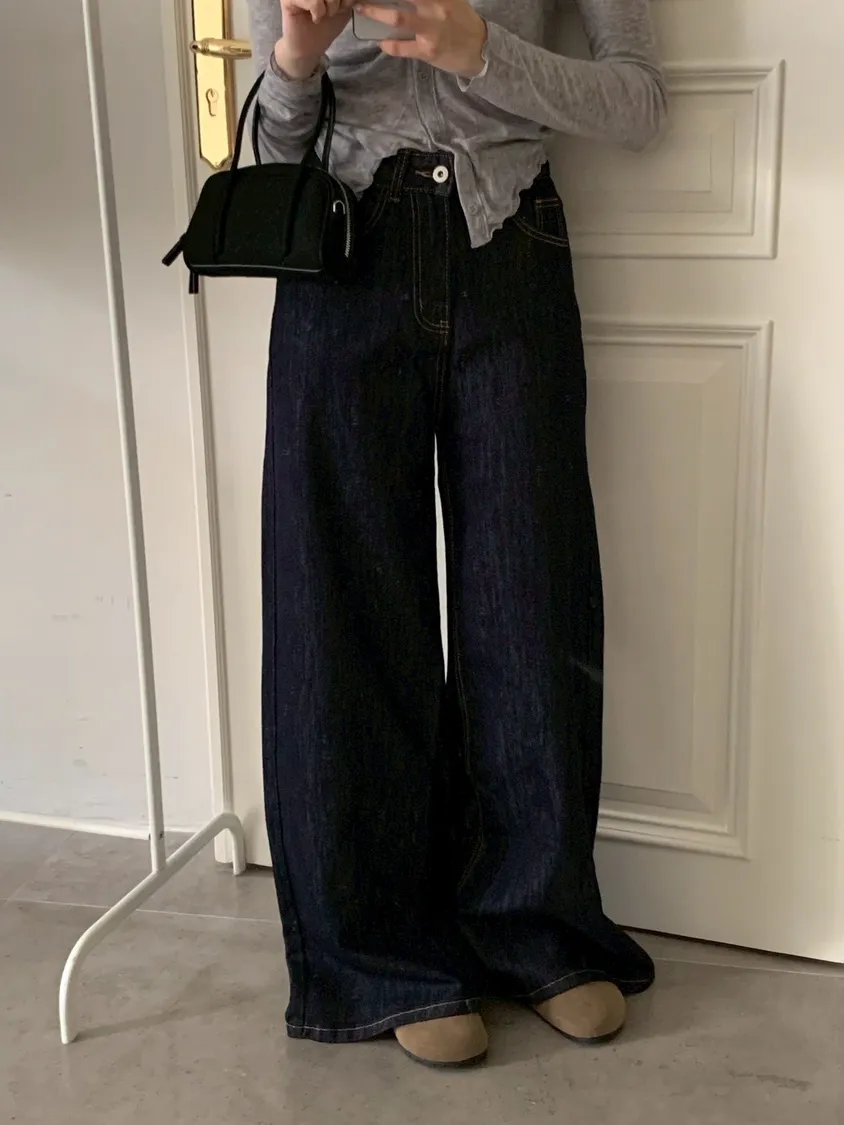原色單寧寬褲