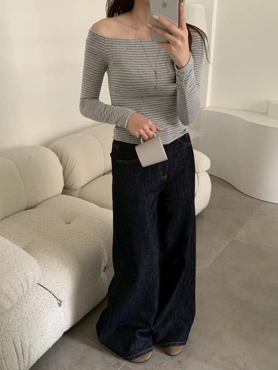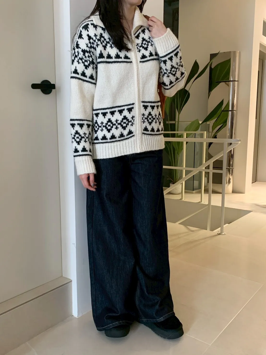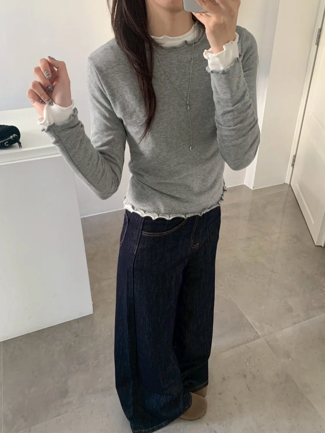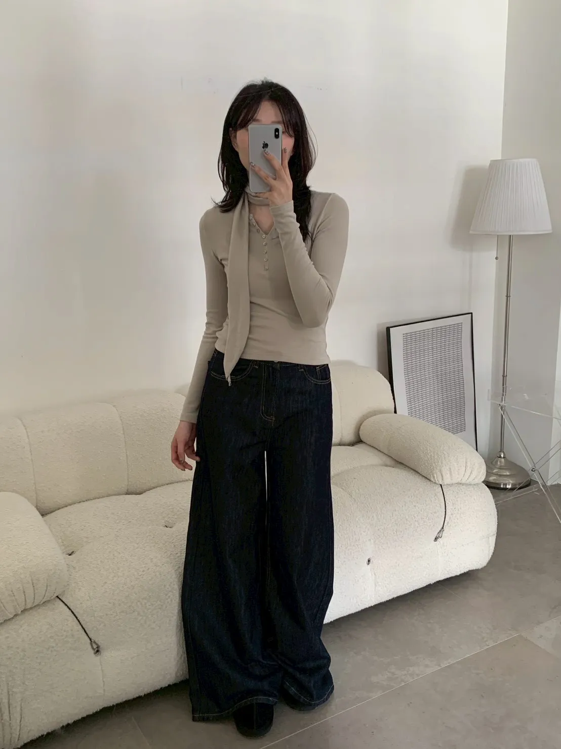 原色單寧寬褲