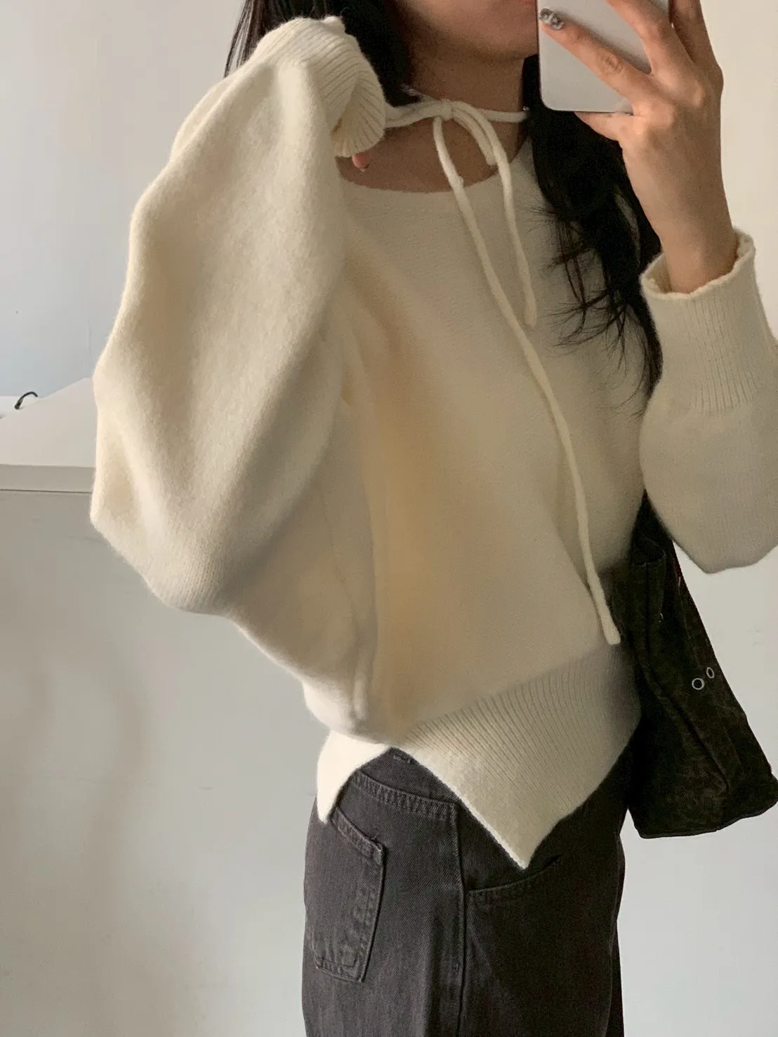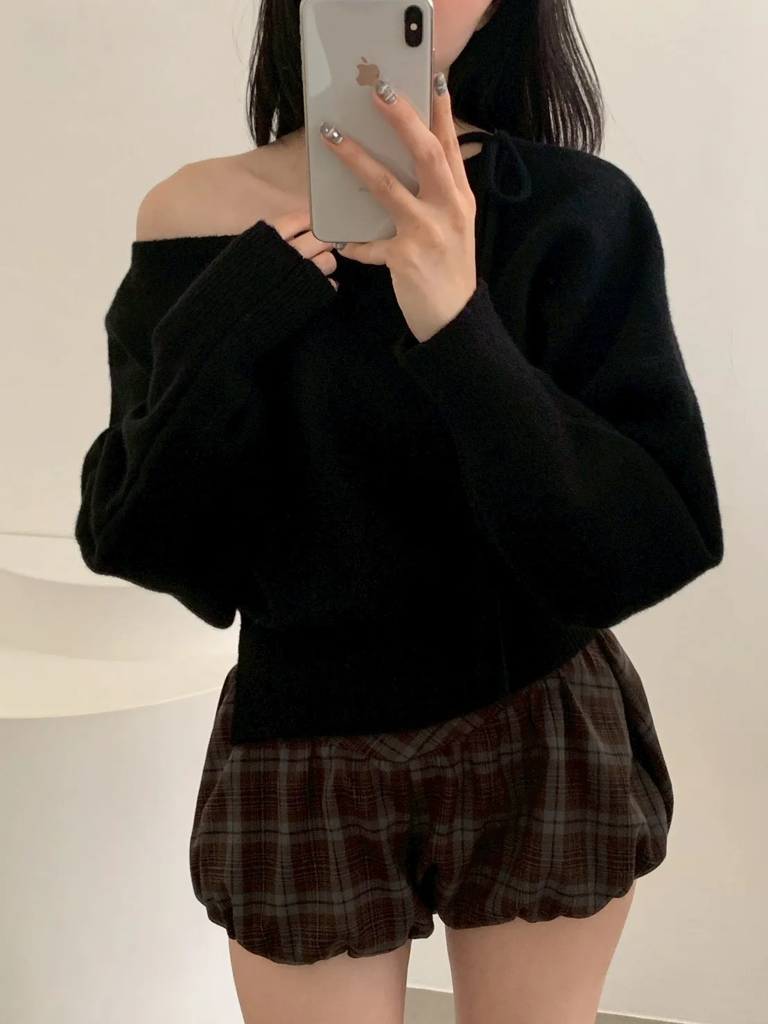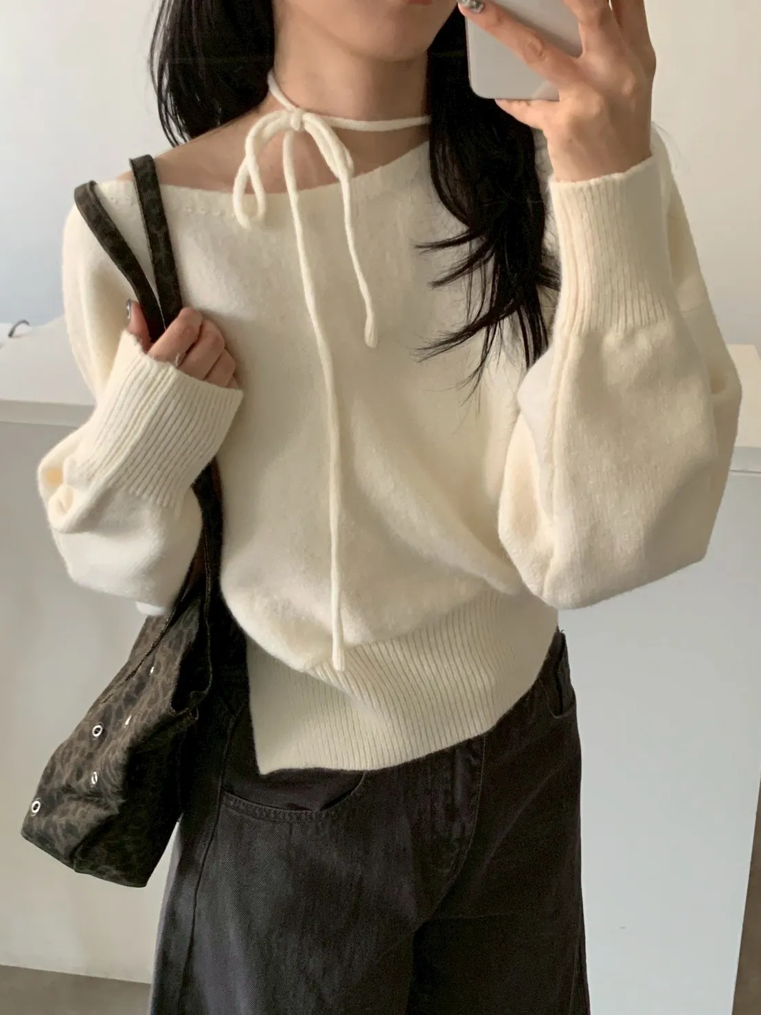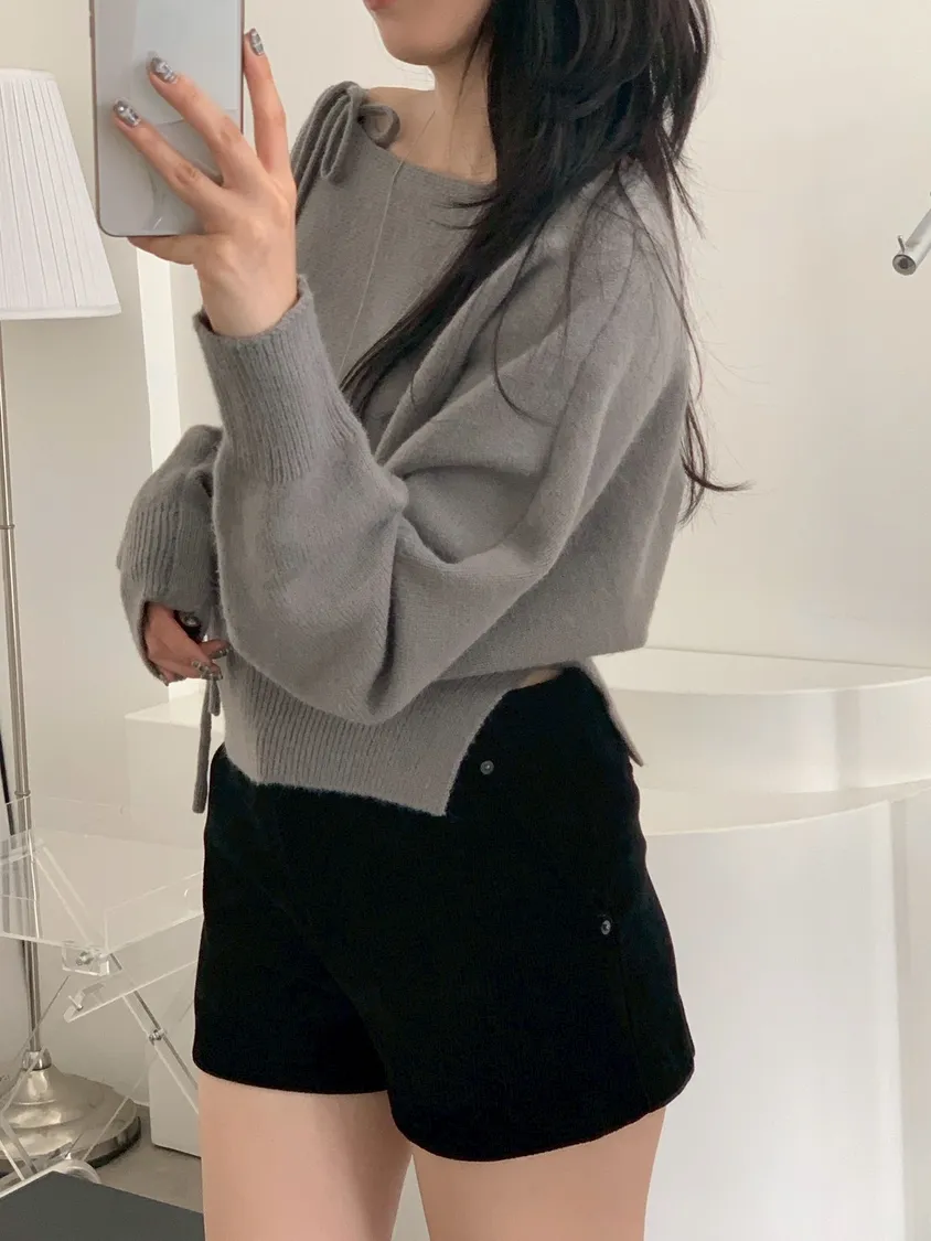 領綁帶單岔短版針織