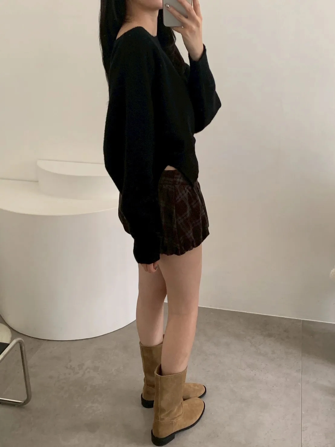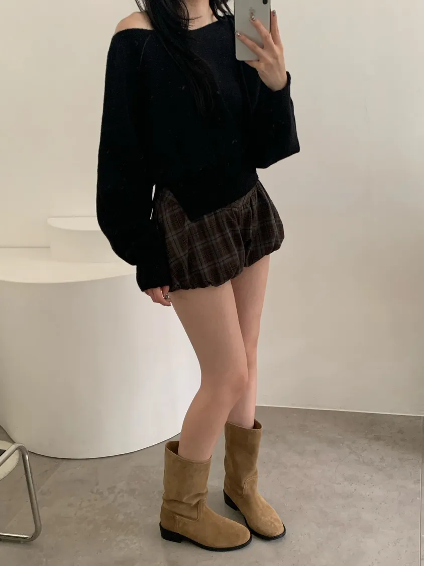 冬日配色麂皮中筒靴