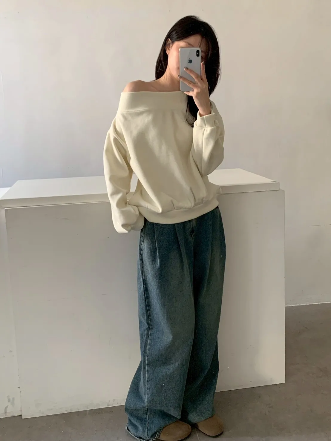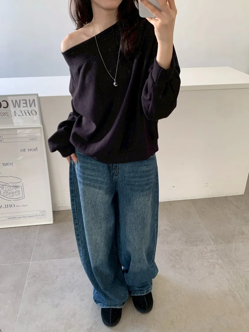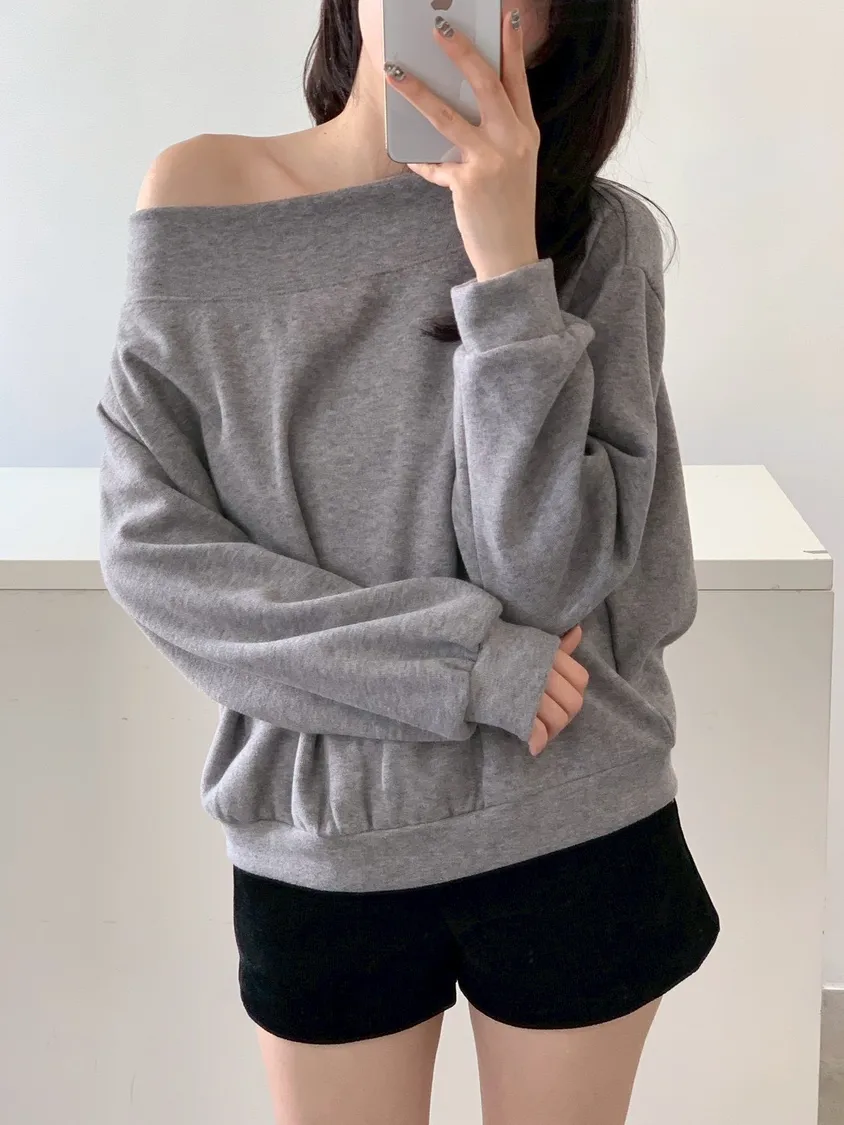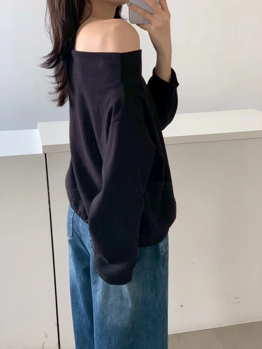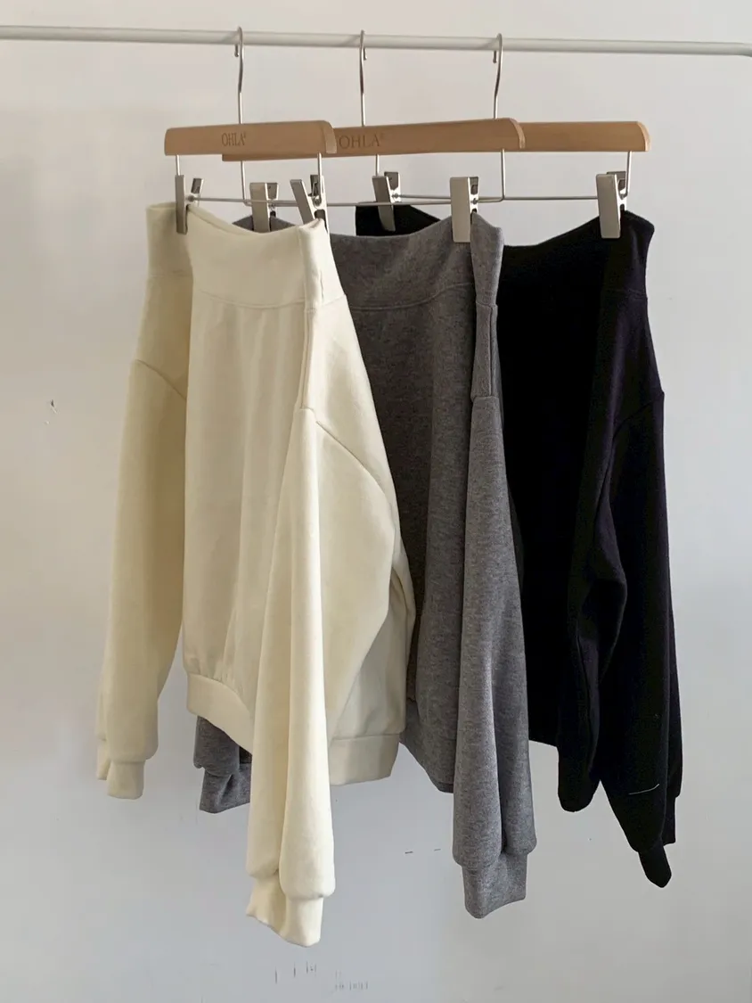 寬紋一字領外磨毛上衣