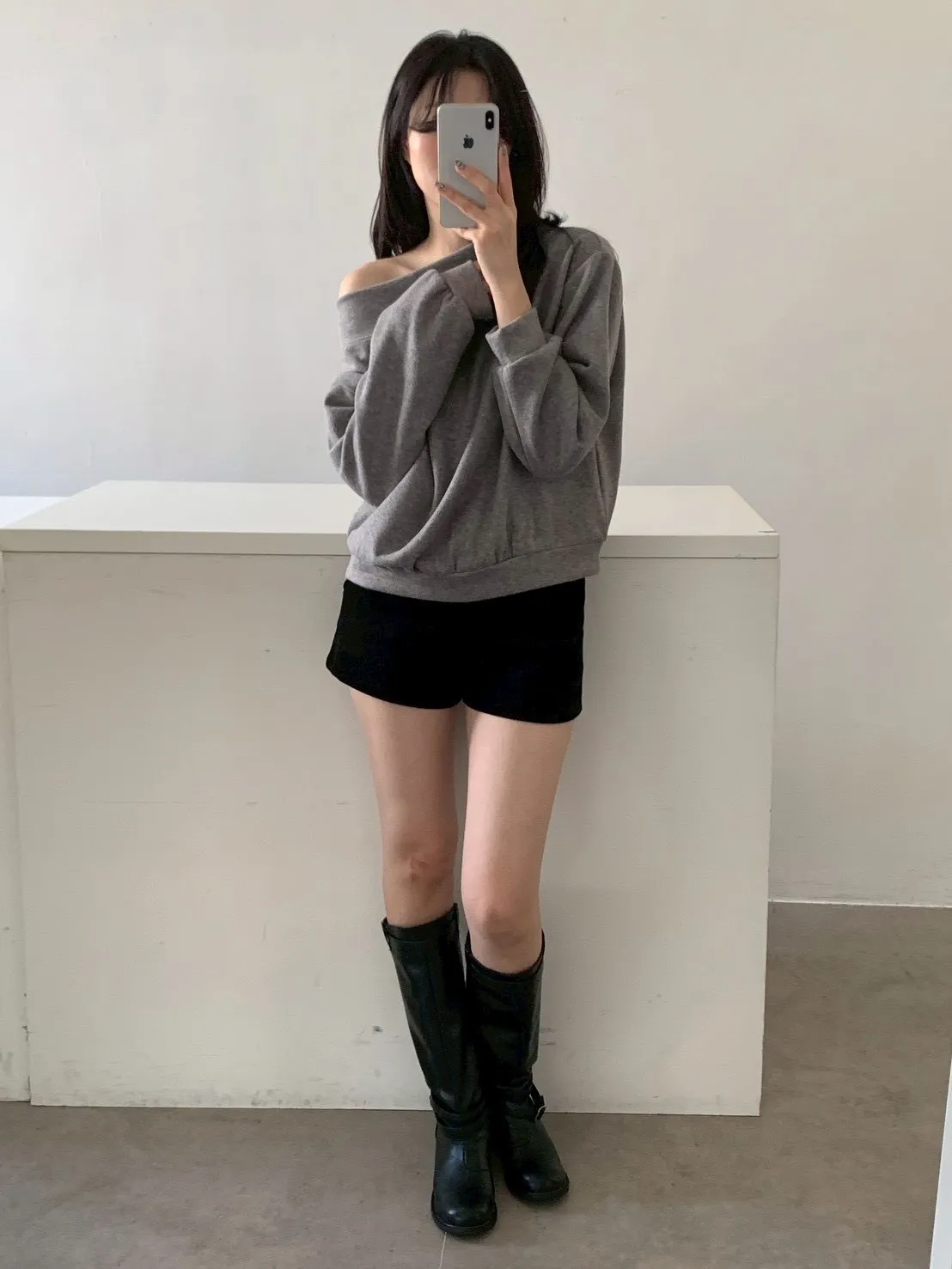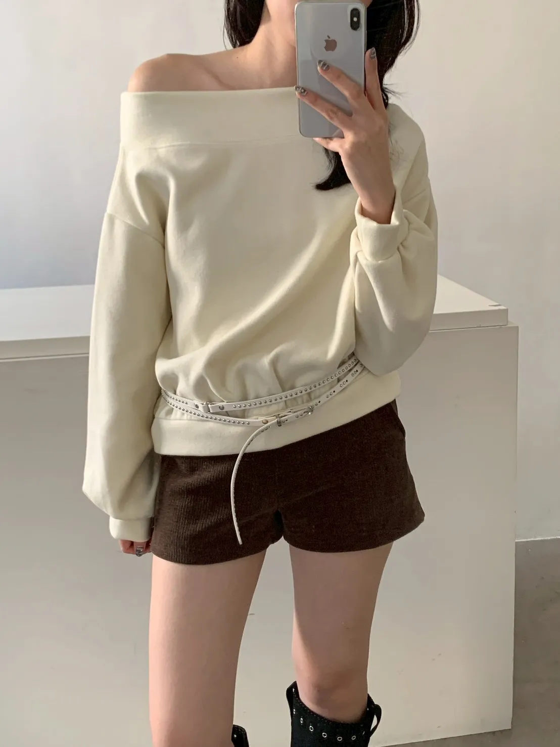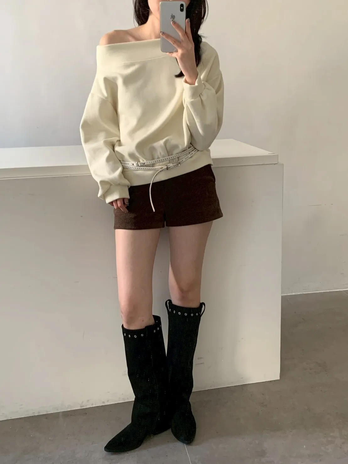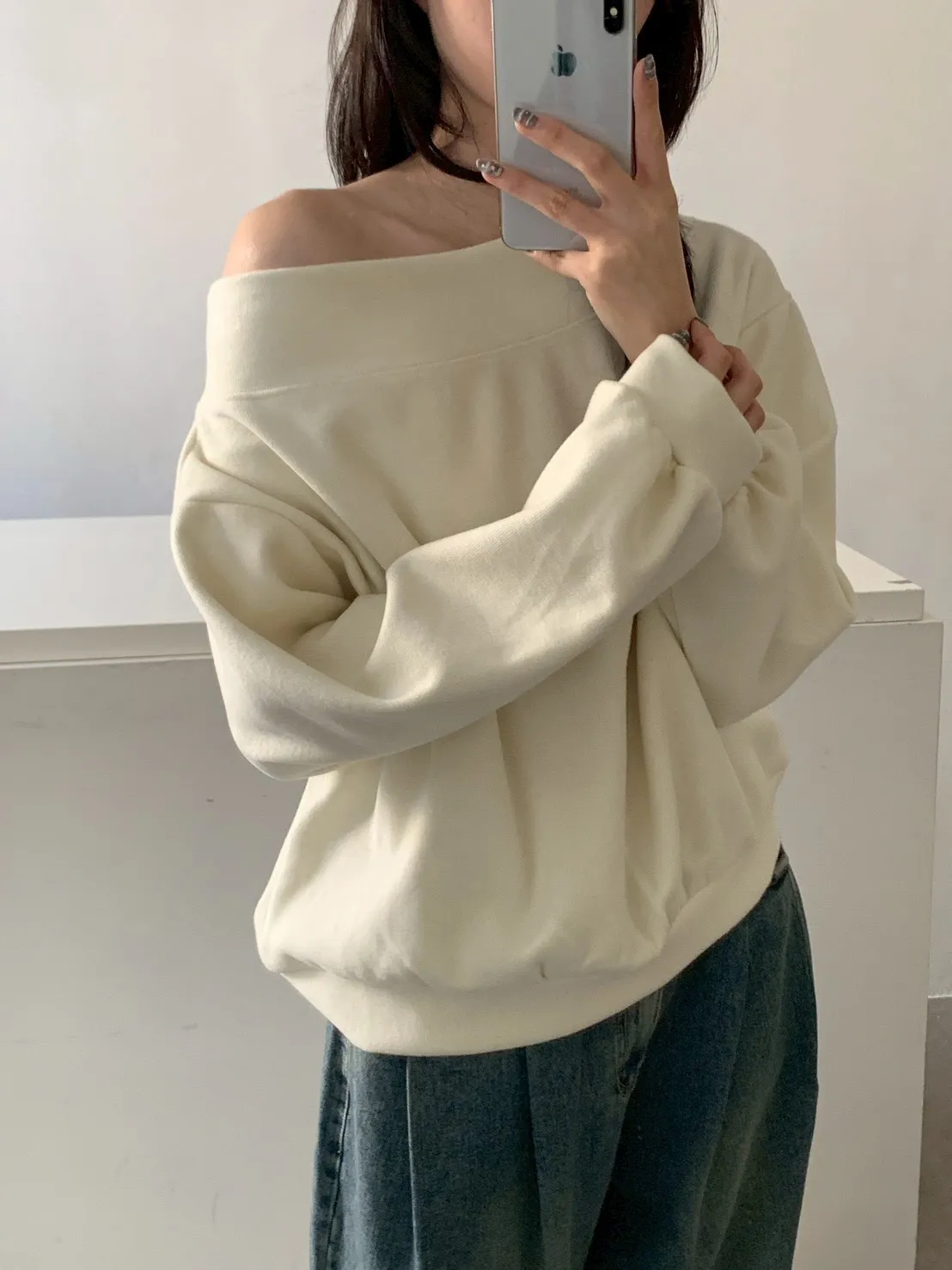寬紋一字領外磨毛上衣