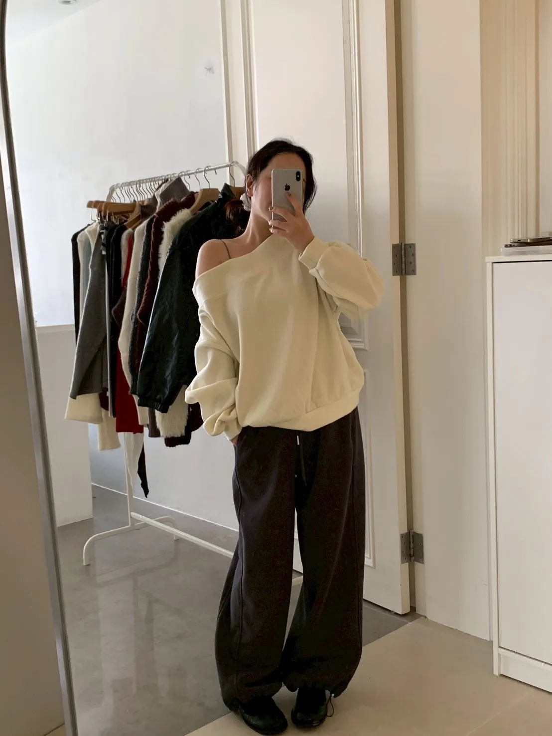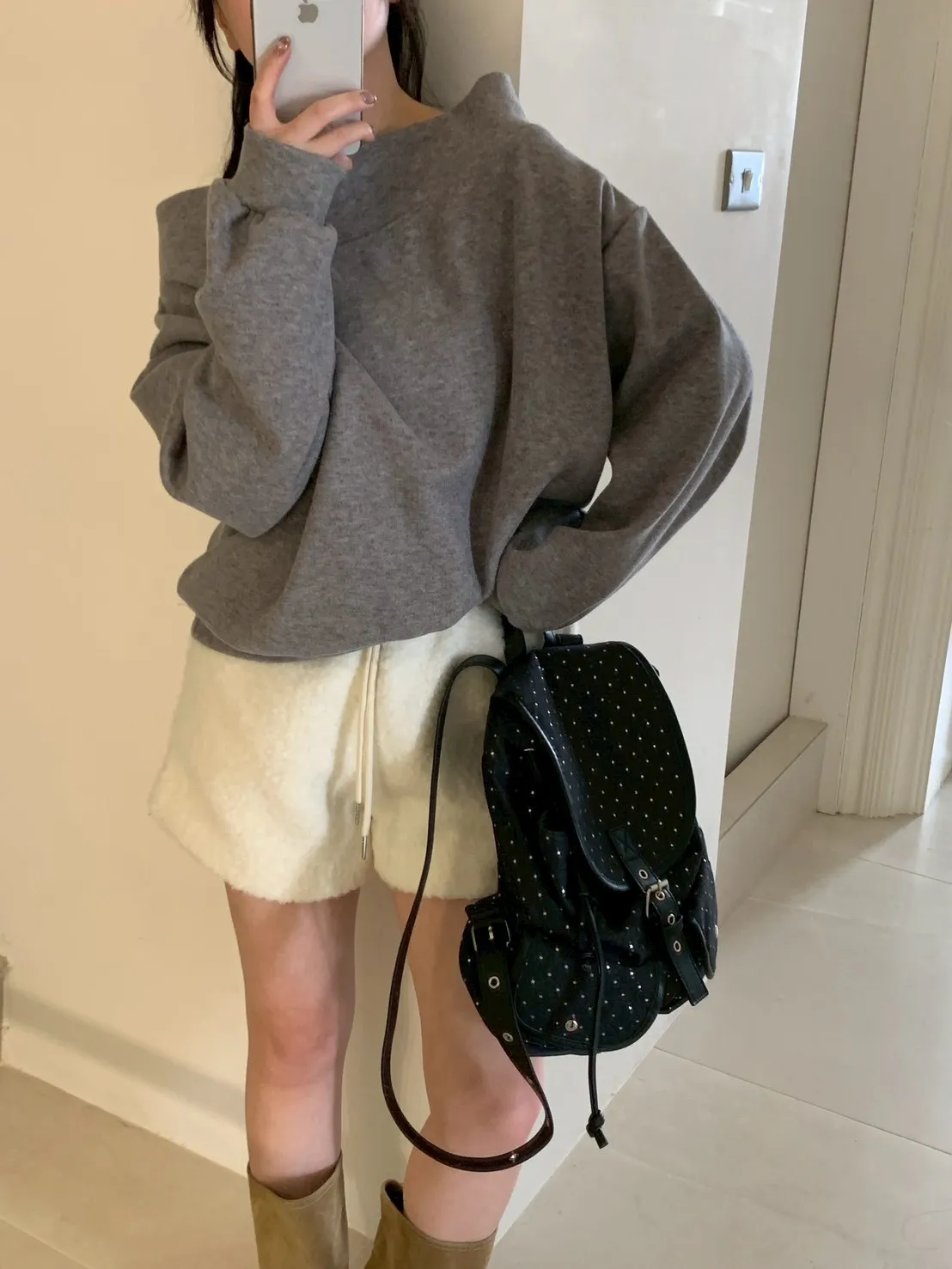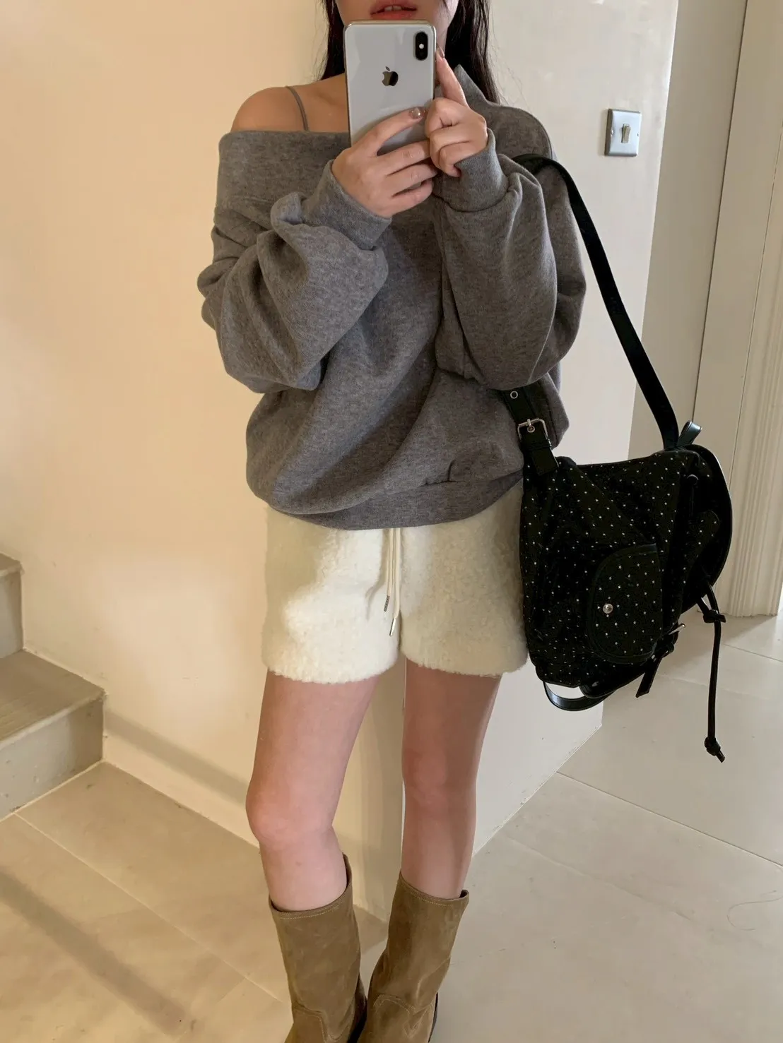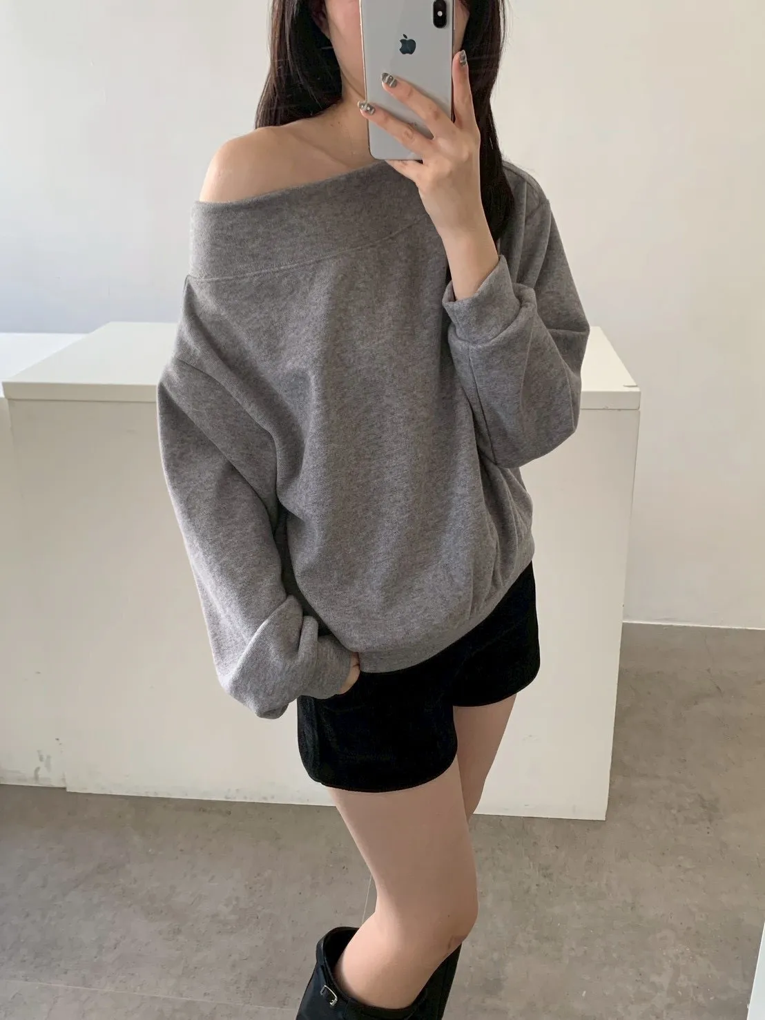 寬紋一字領外磨毛上衣