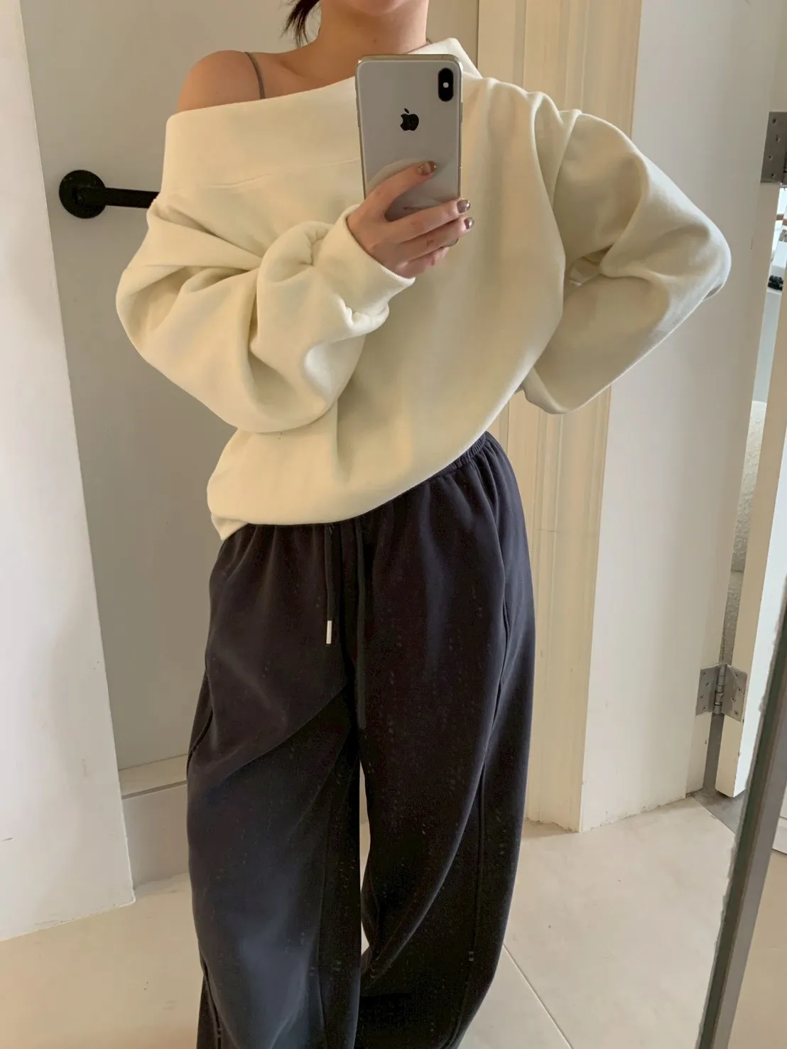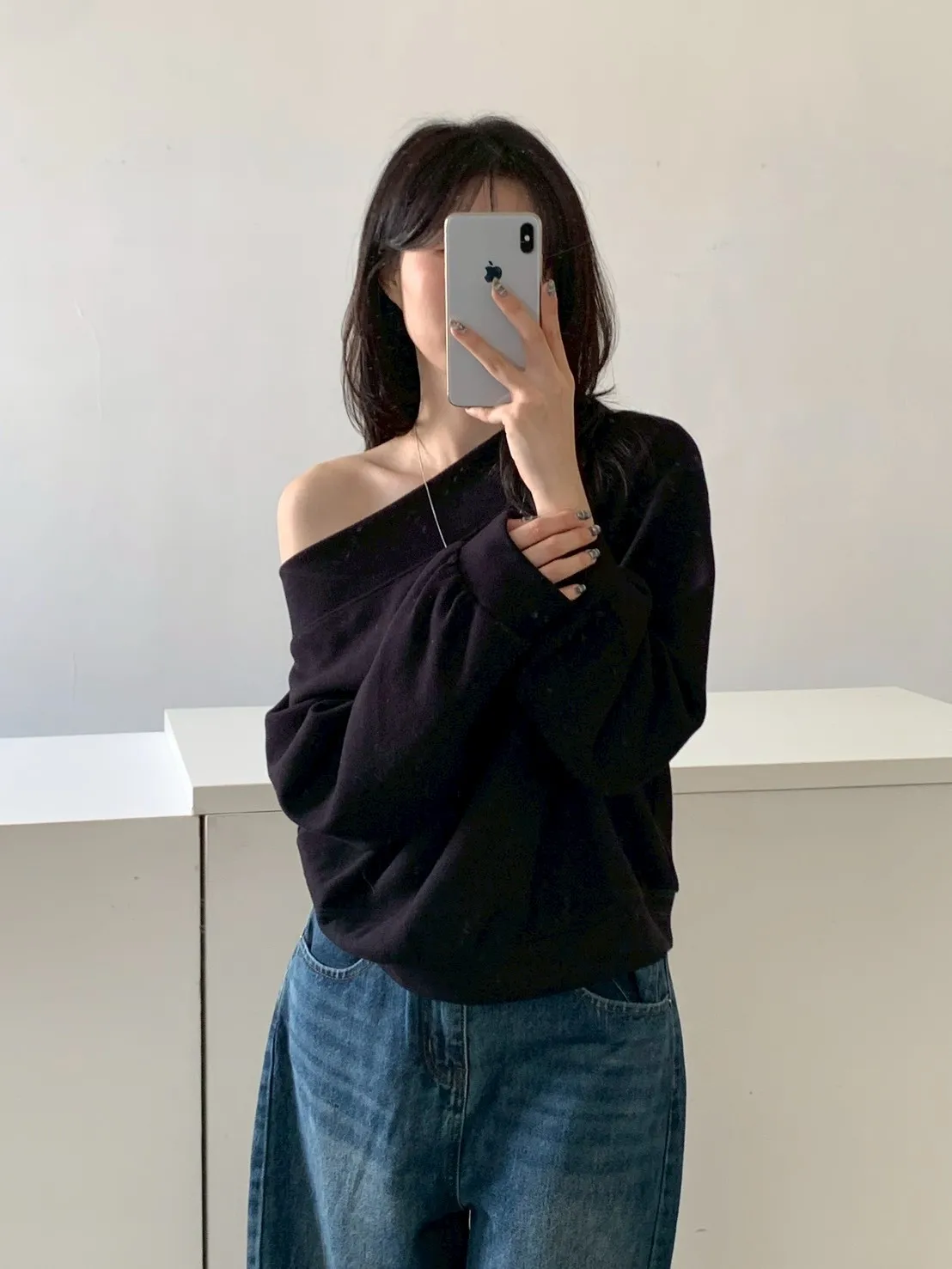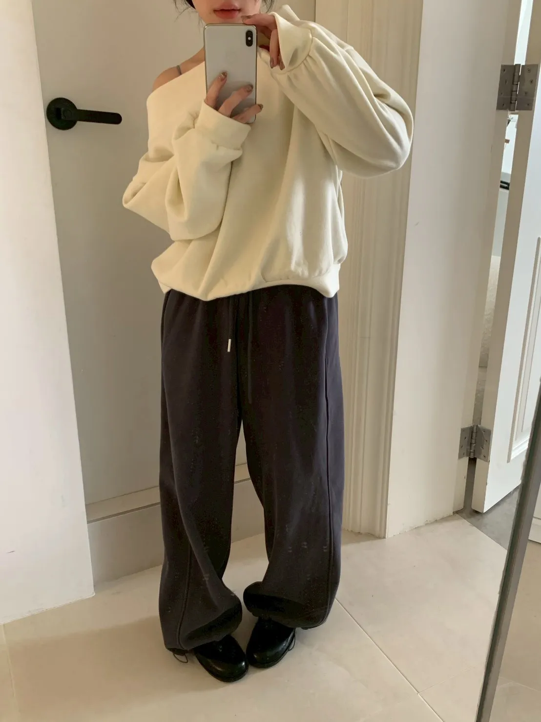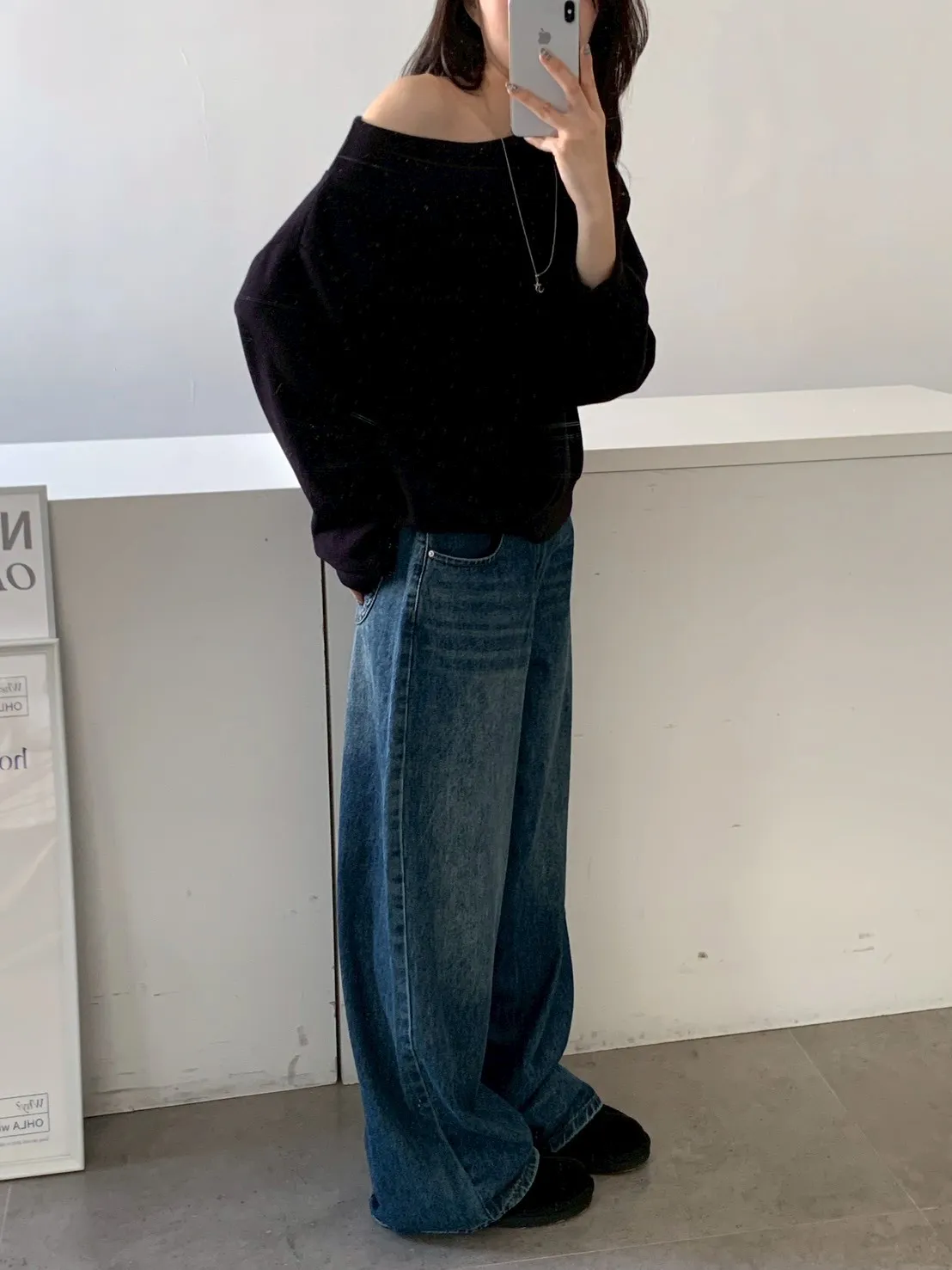 寬紋一字領外磨毛上衣