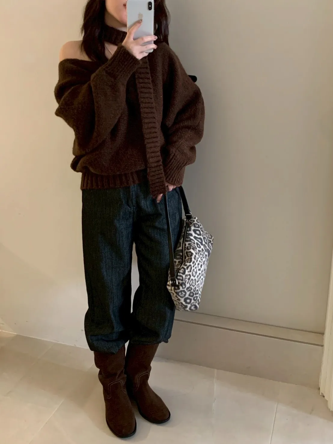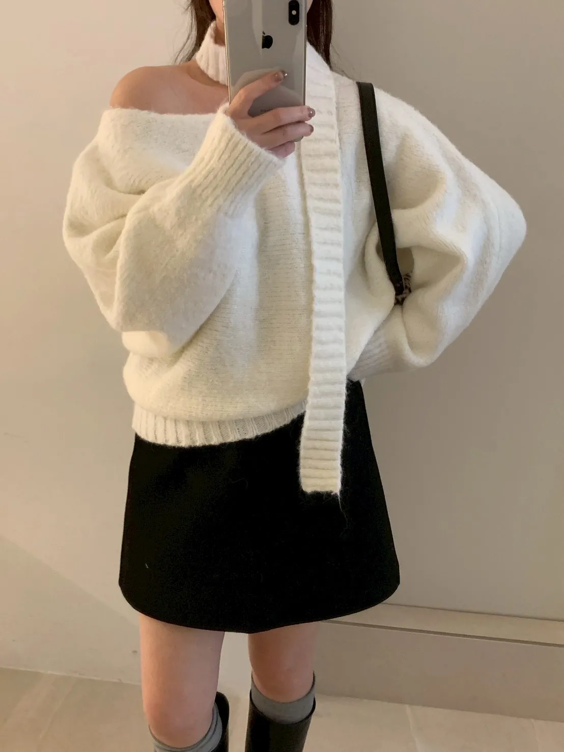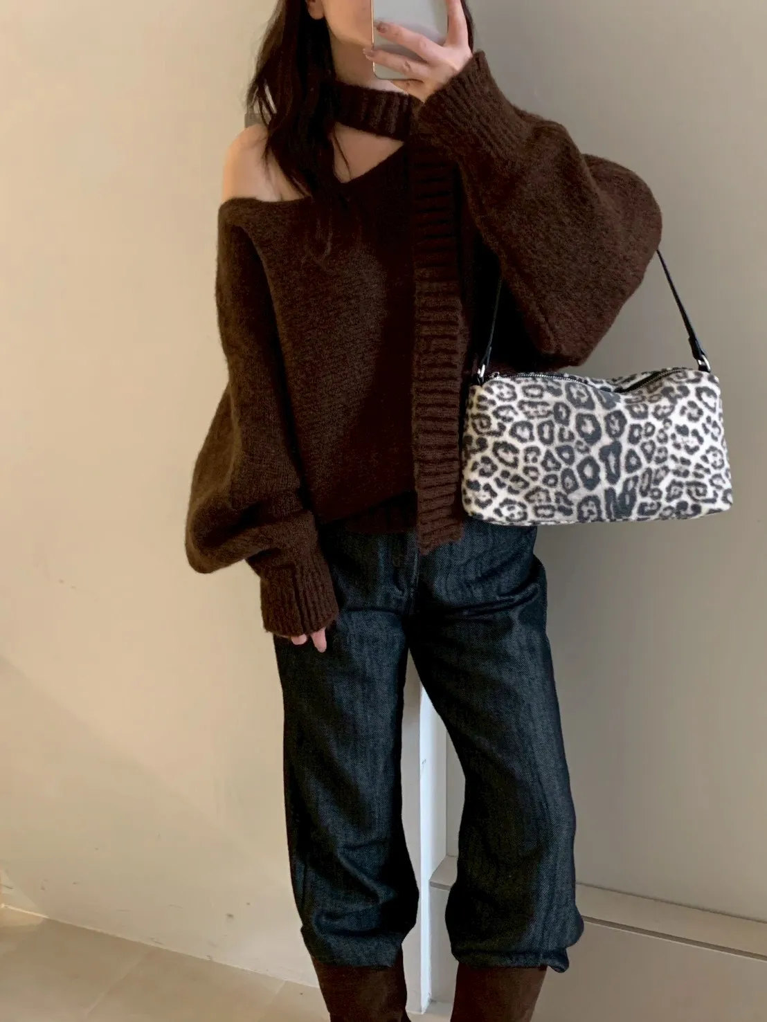 寬帶繞脖斜肩針織衫