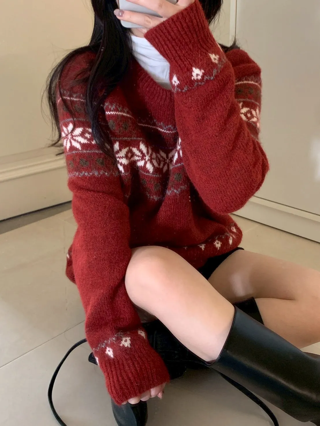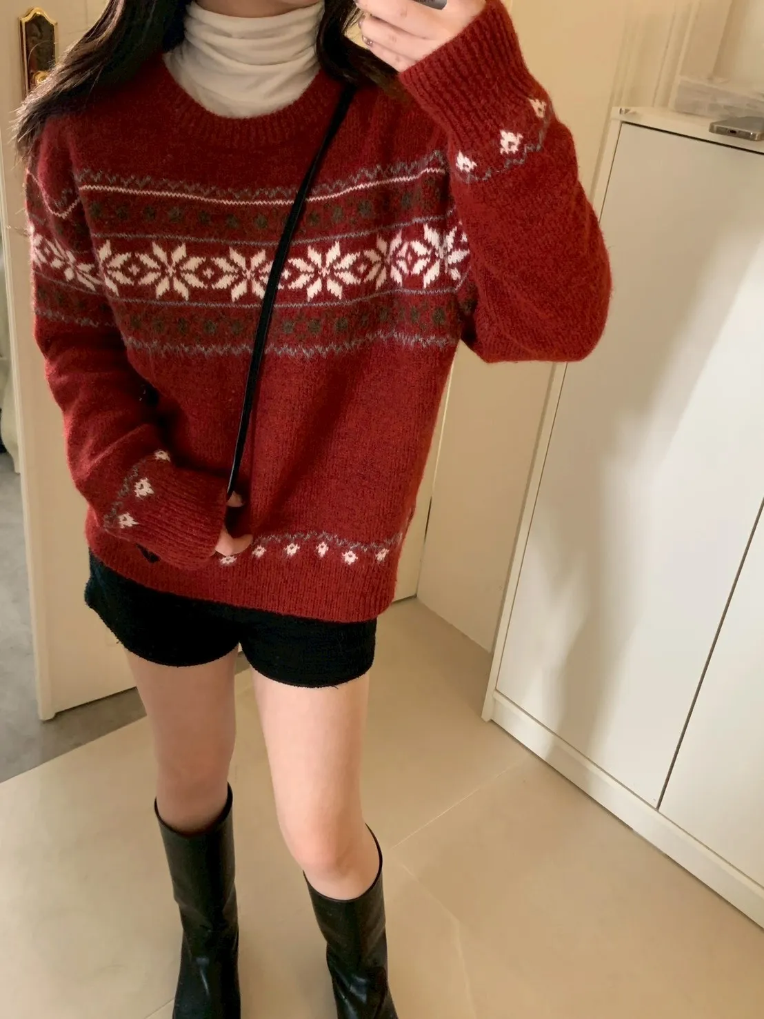 冬日配色麂皮中筒靴