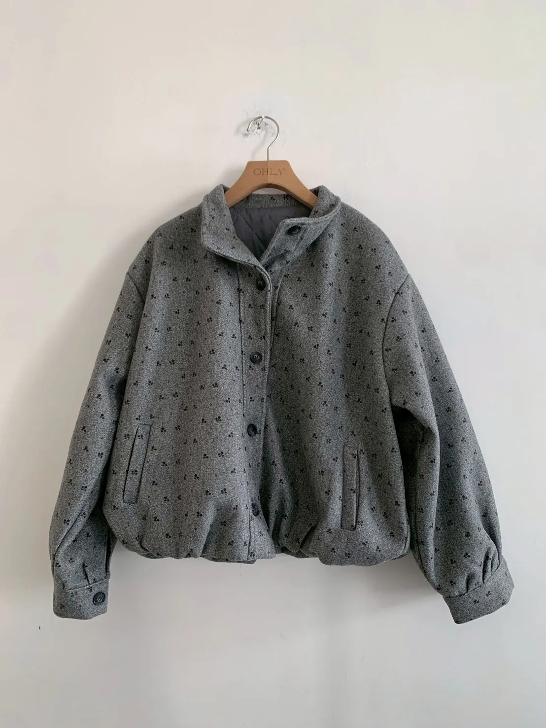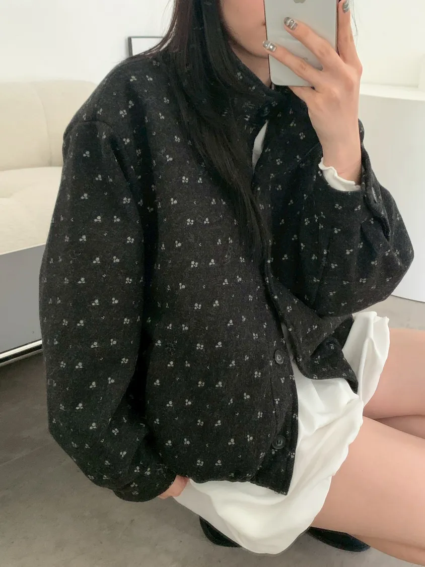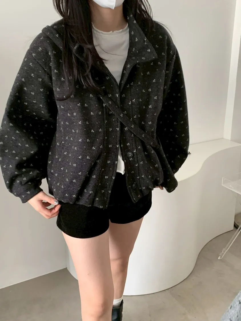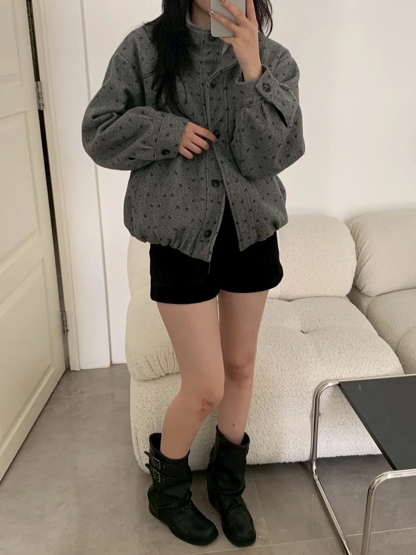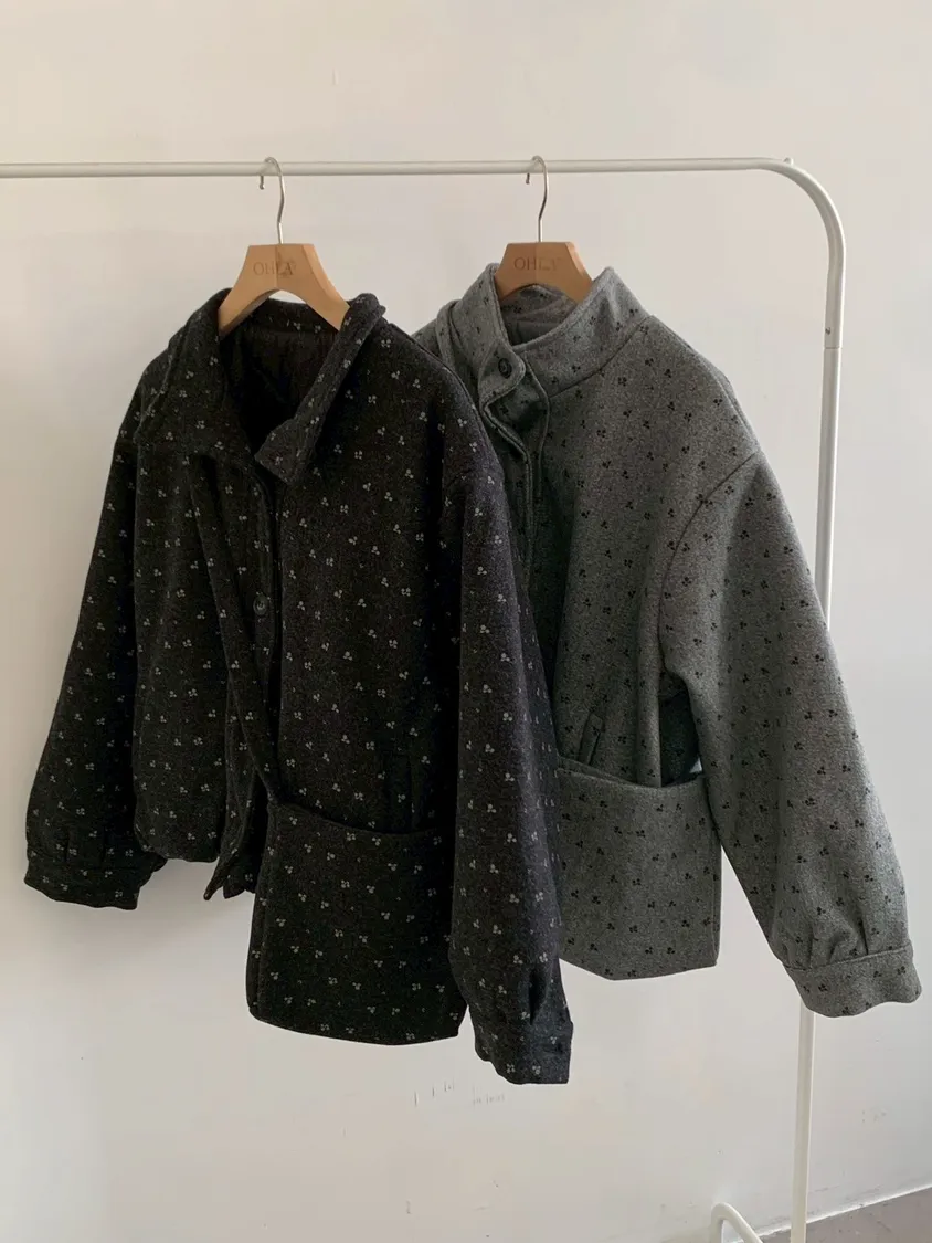 附小包小花呢料鋪棉外套