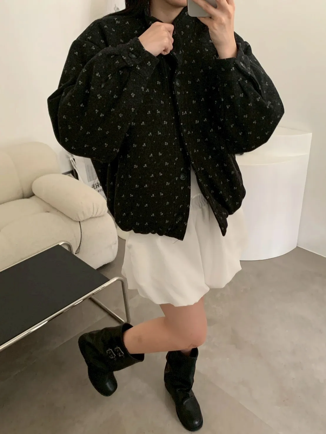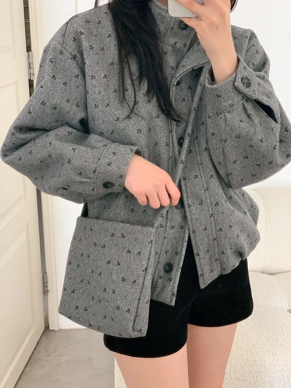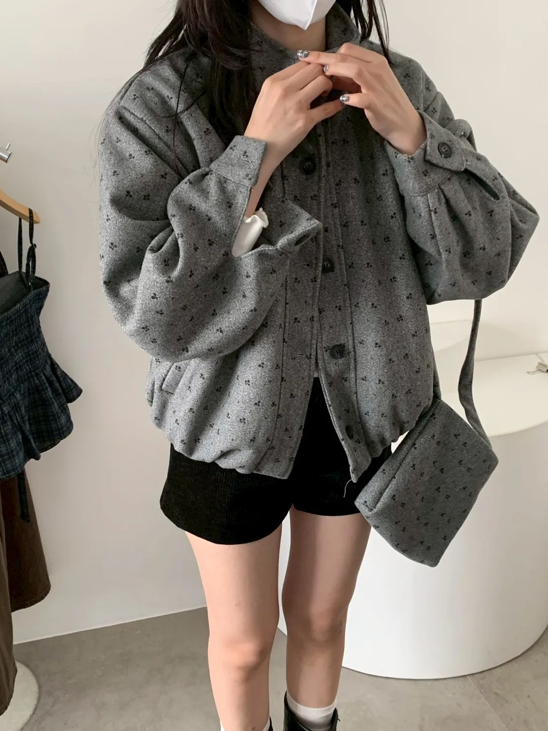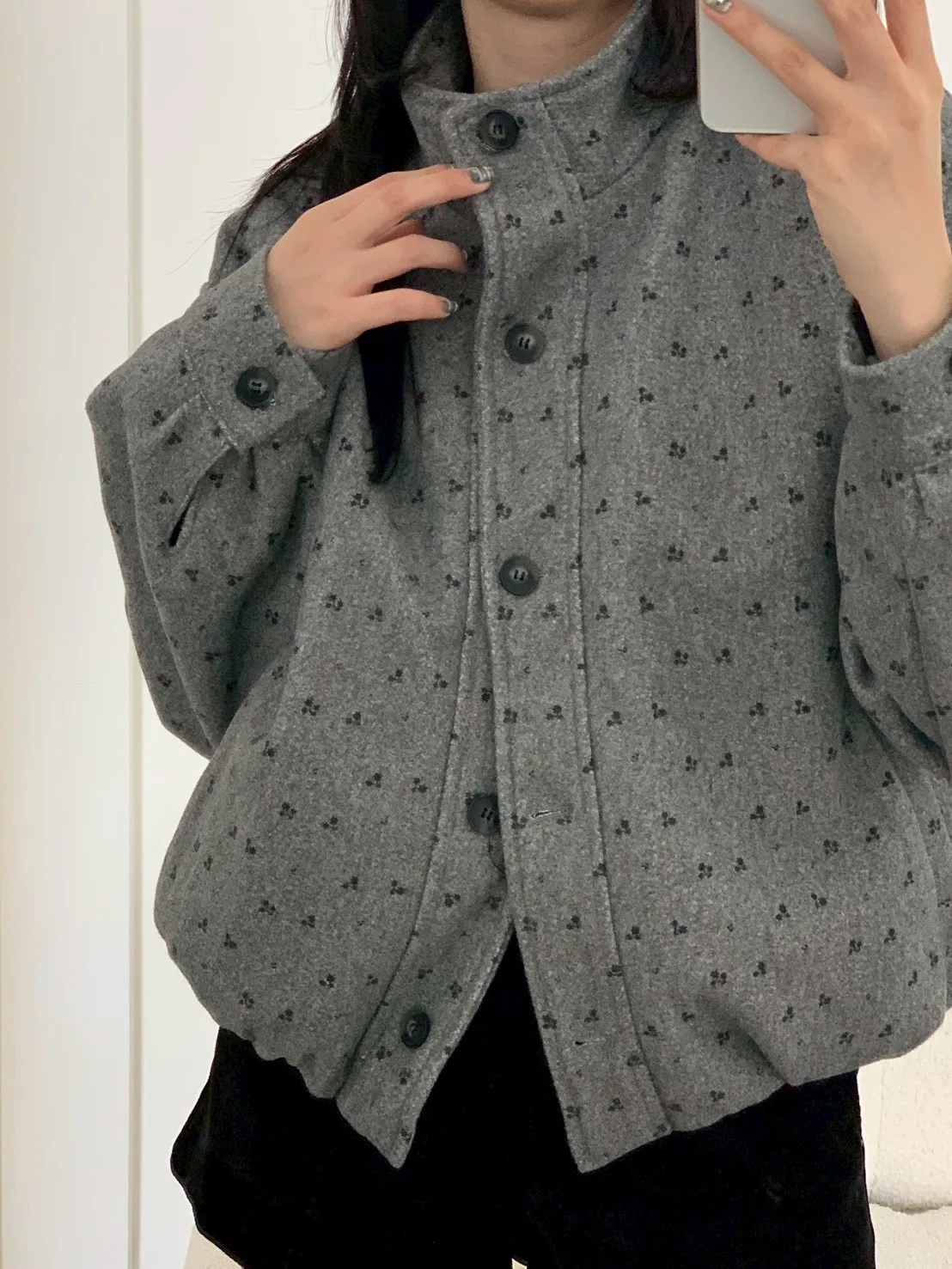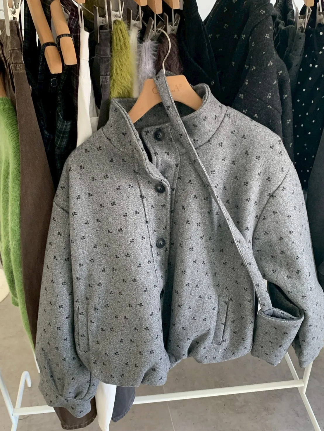 附小包小花呢料鋪棉外套