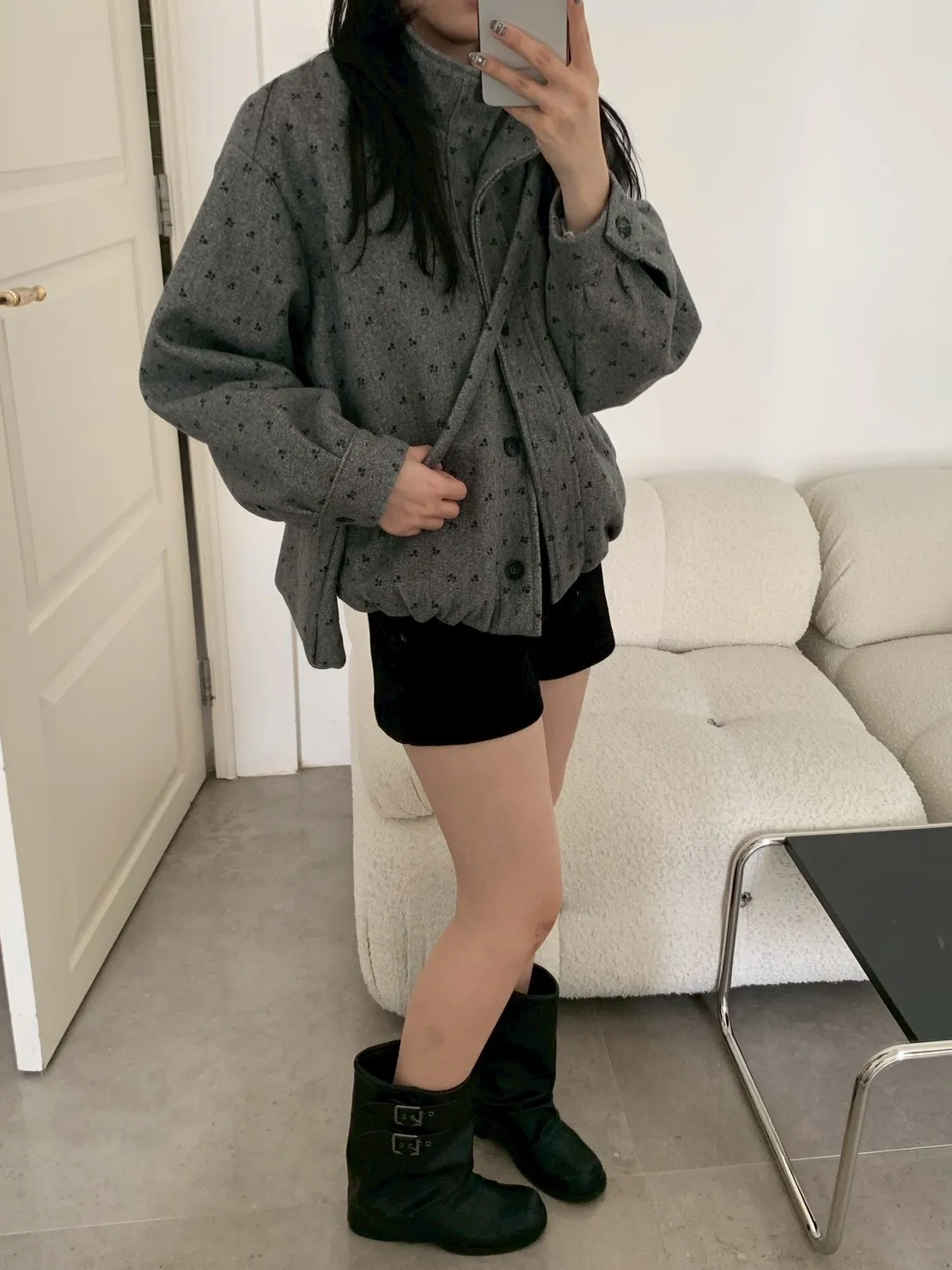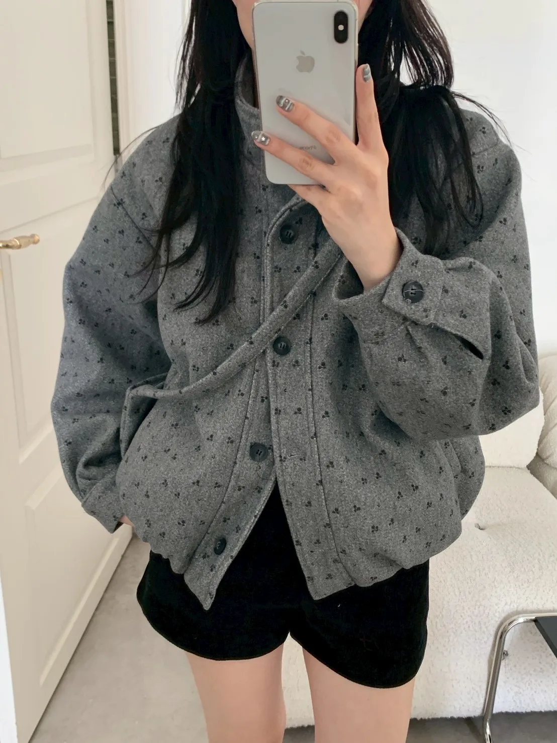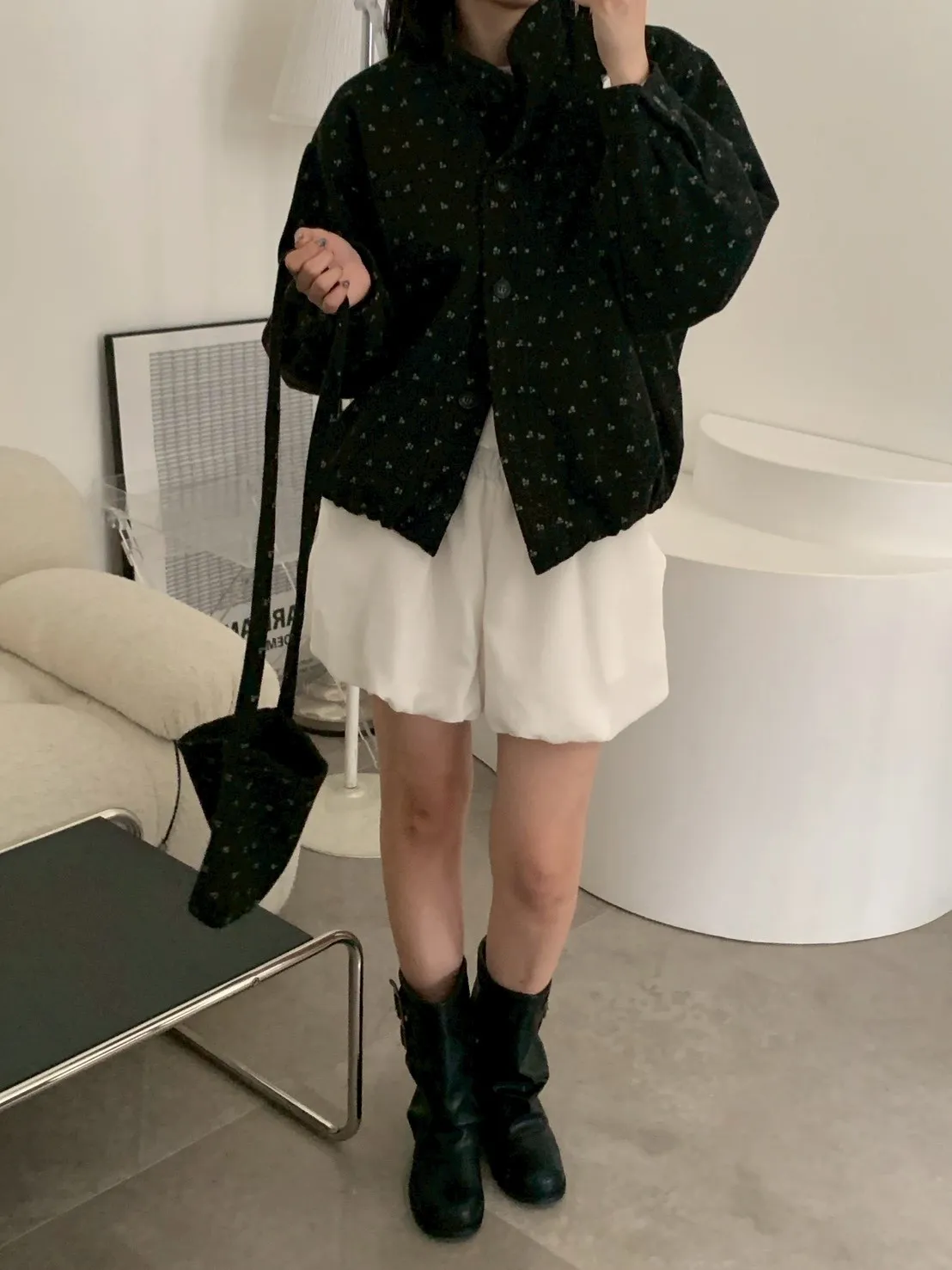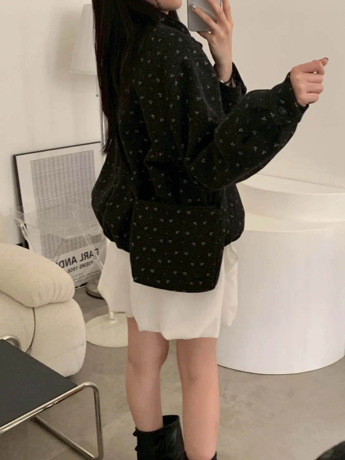 附小包小花呢料鋪棉外套