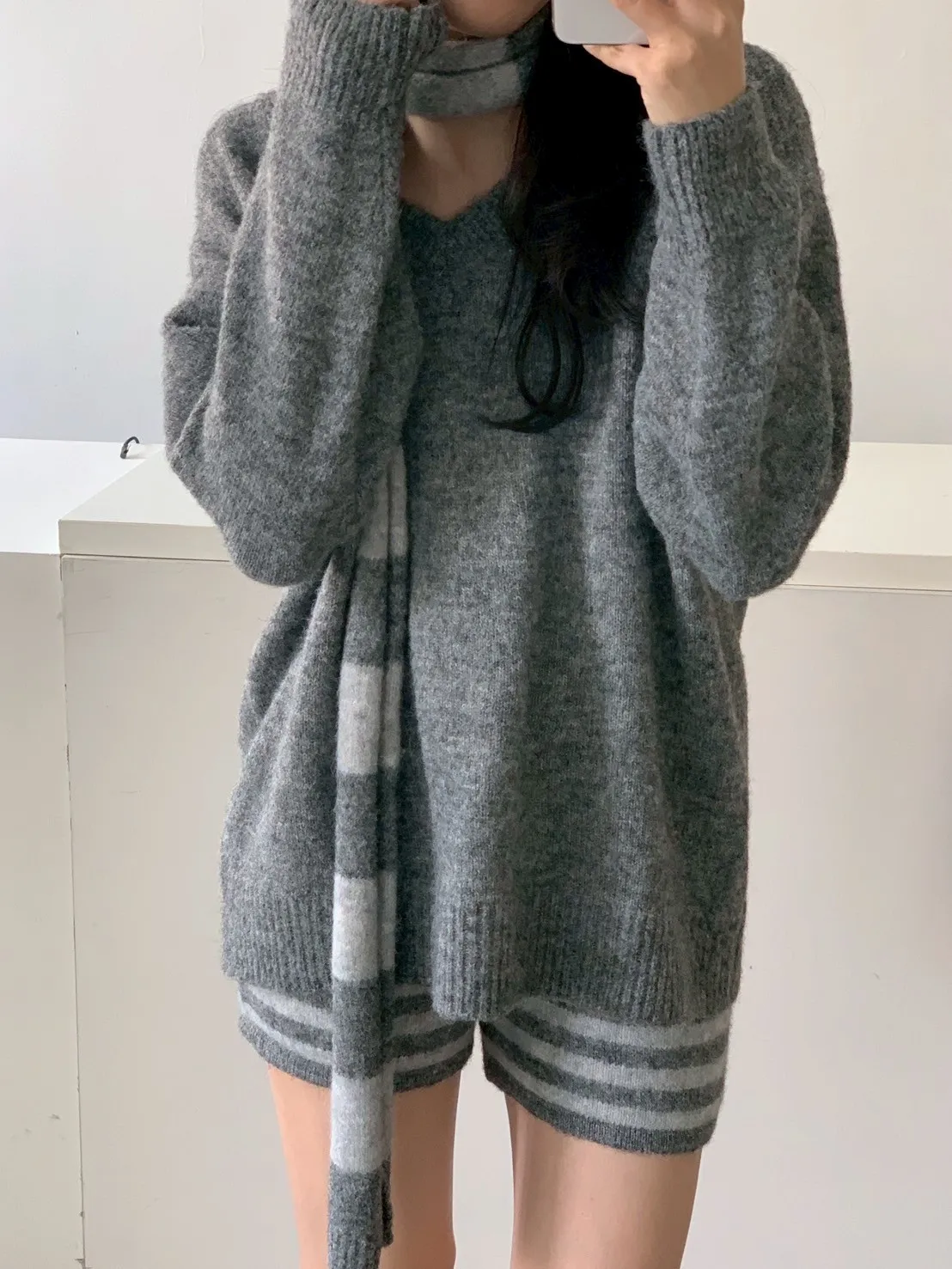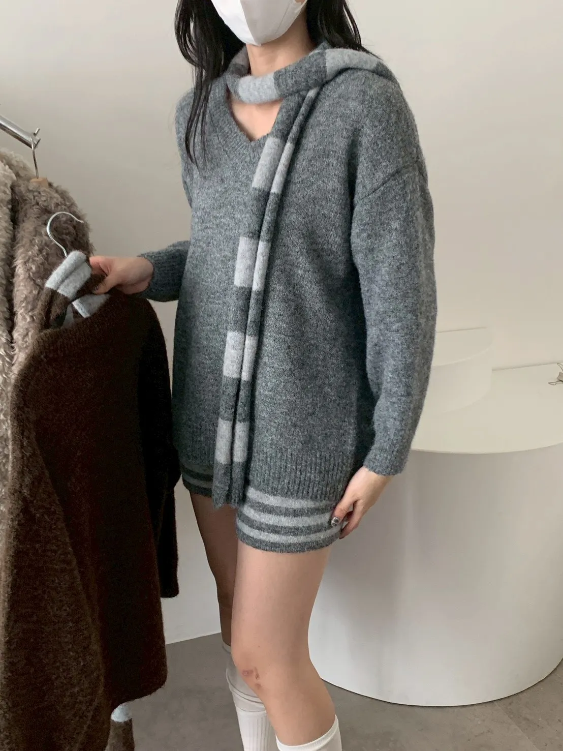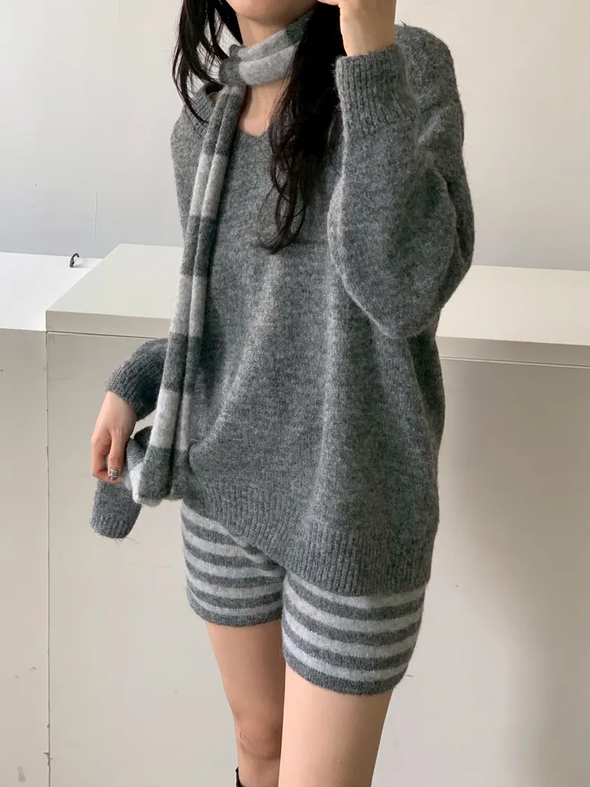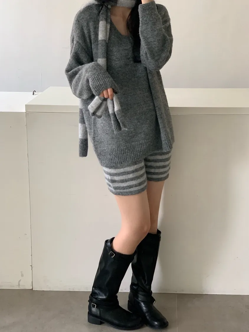 3SET針織+條短褲+圍巾