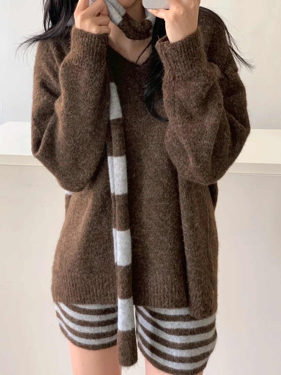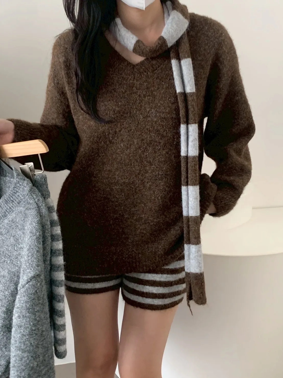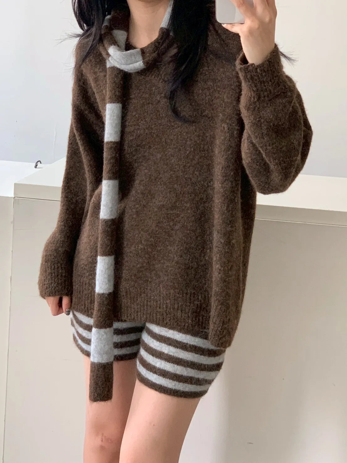 3SET針織+條短褲+圍巾