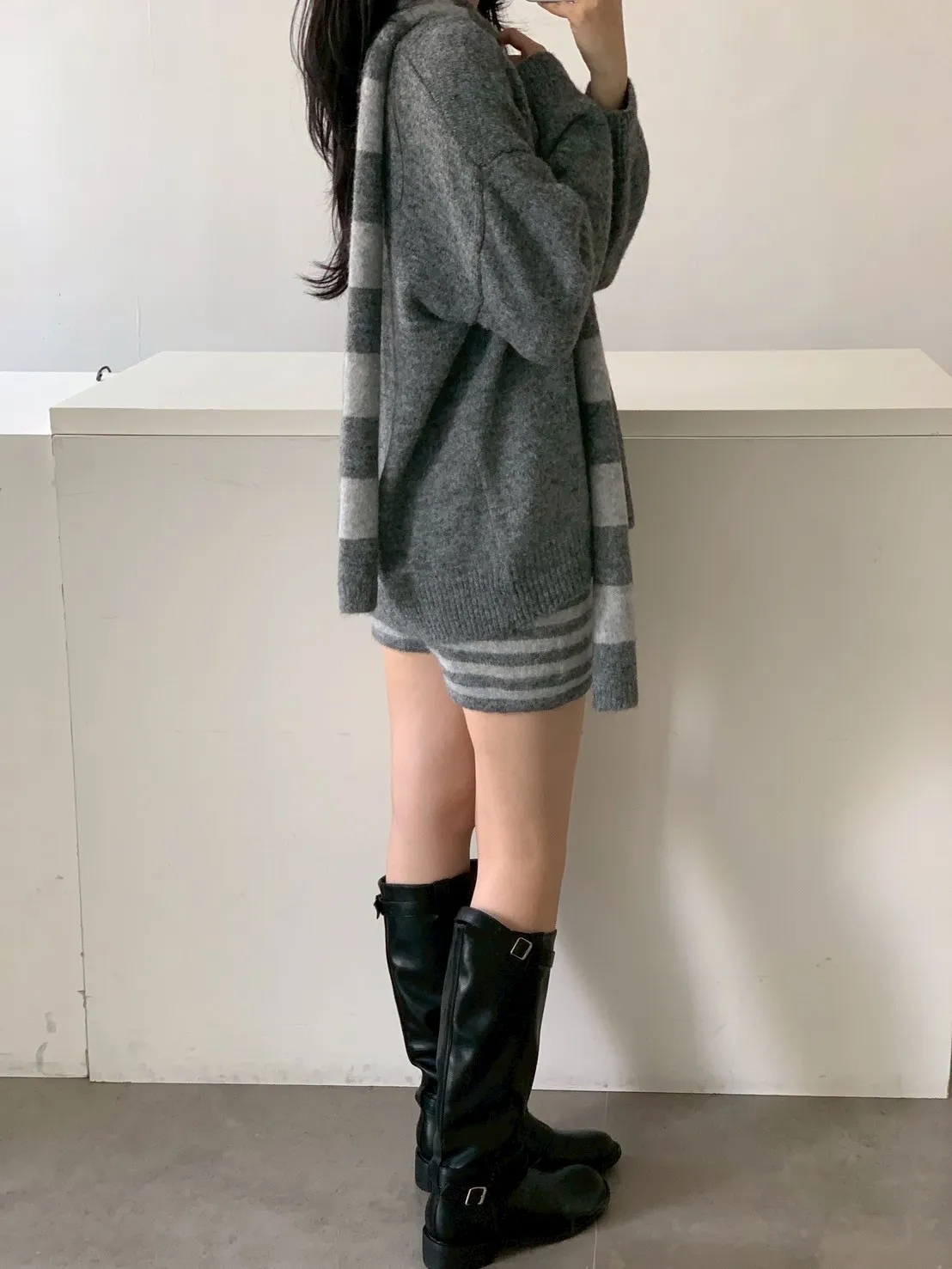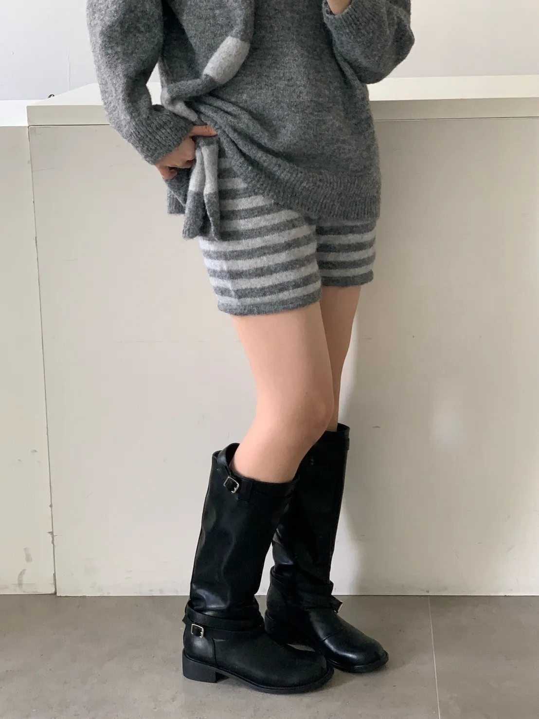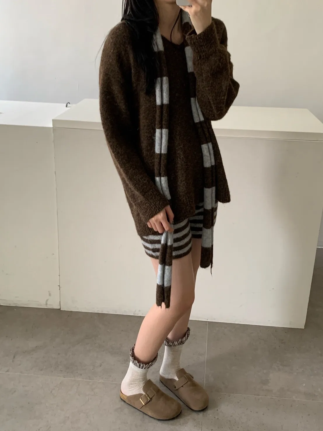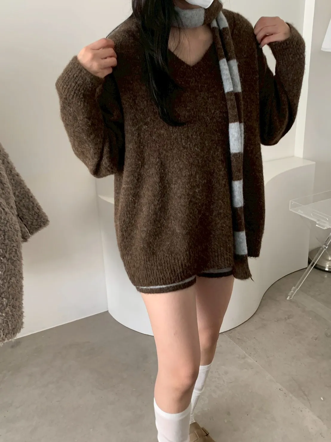 3SET針織+條短褲+圍巾